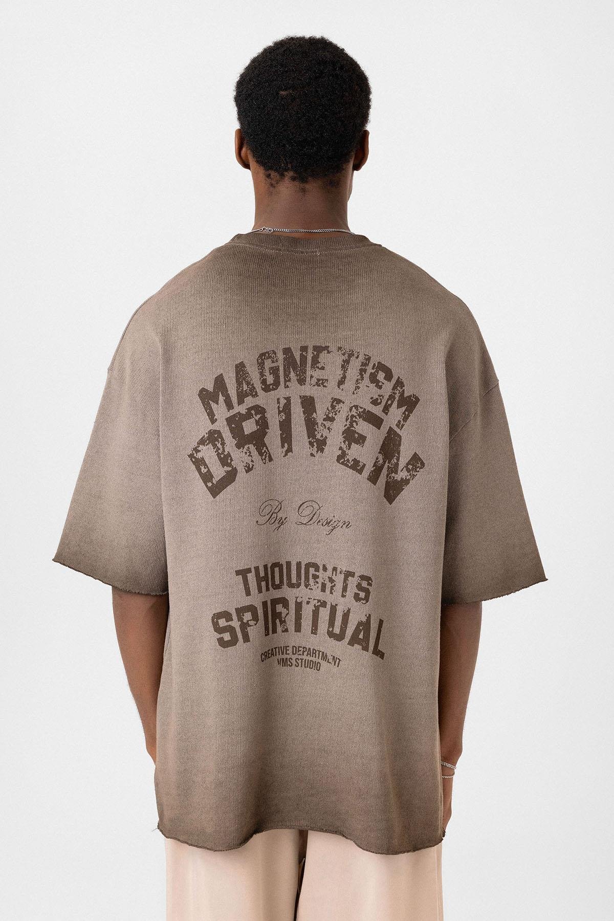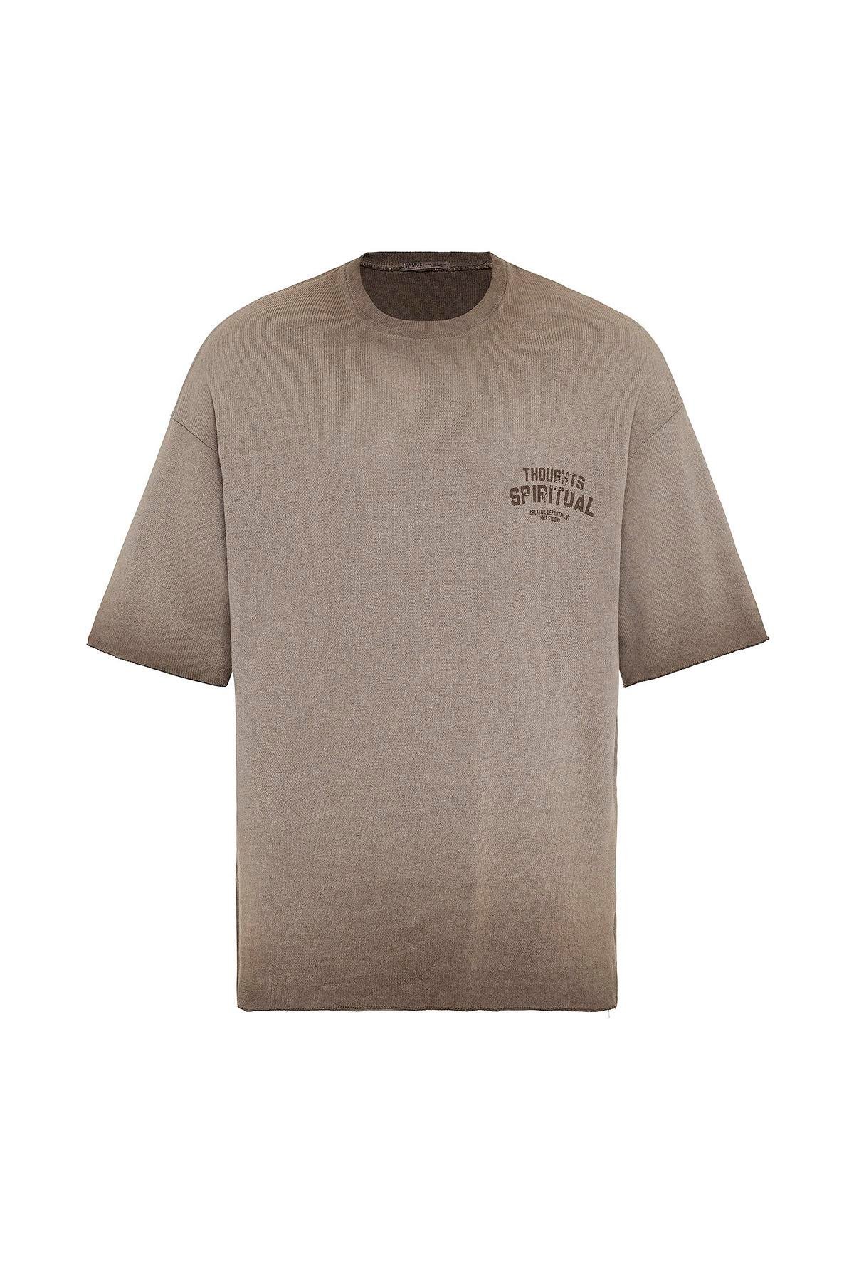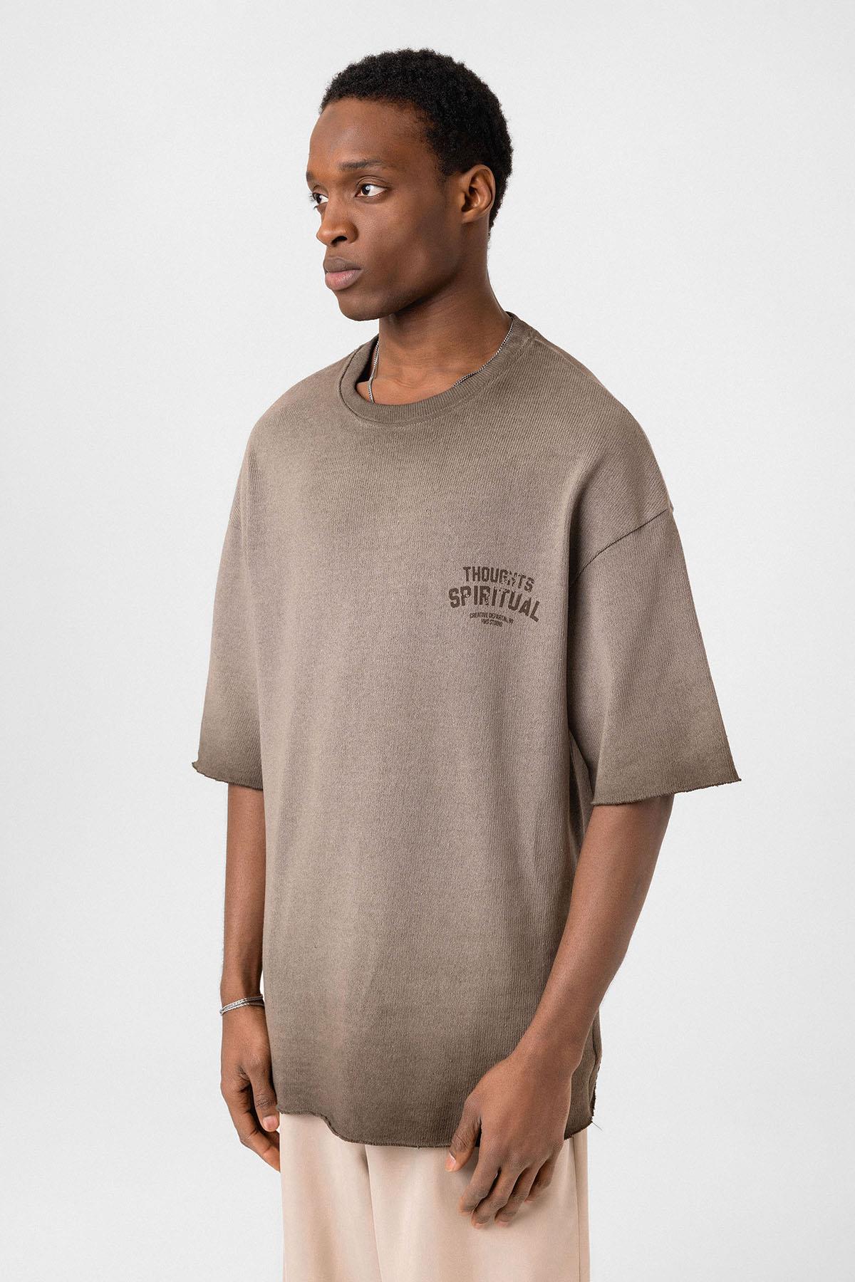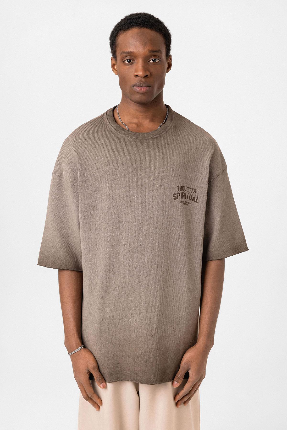 Yıkamalı Oversize Triko Tişört Kahve (V70-58)