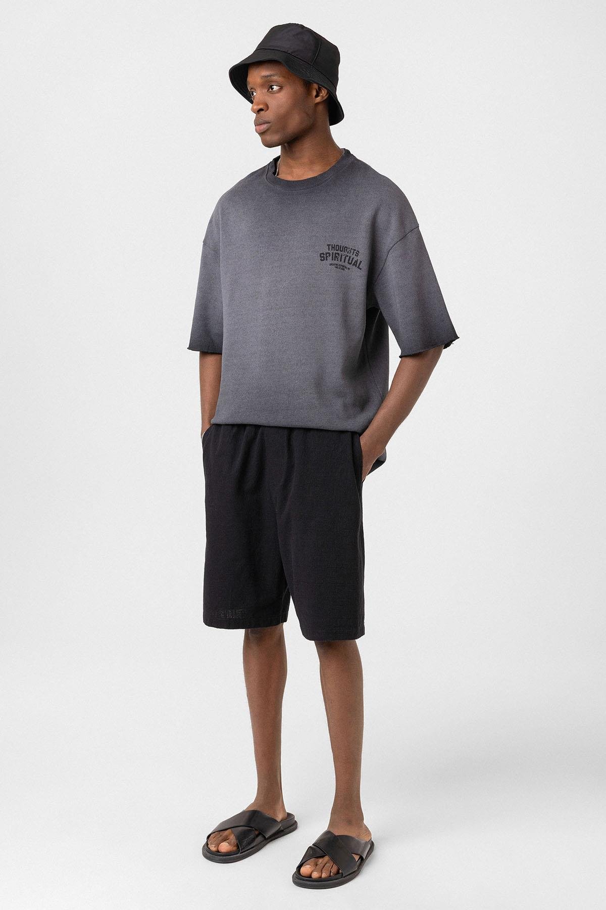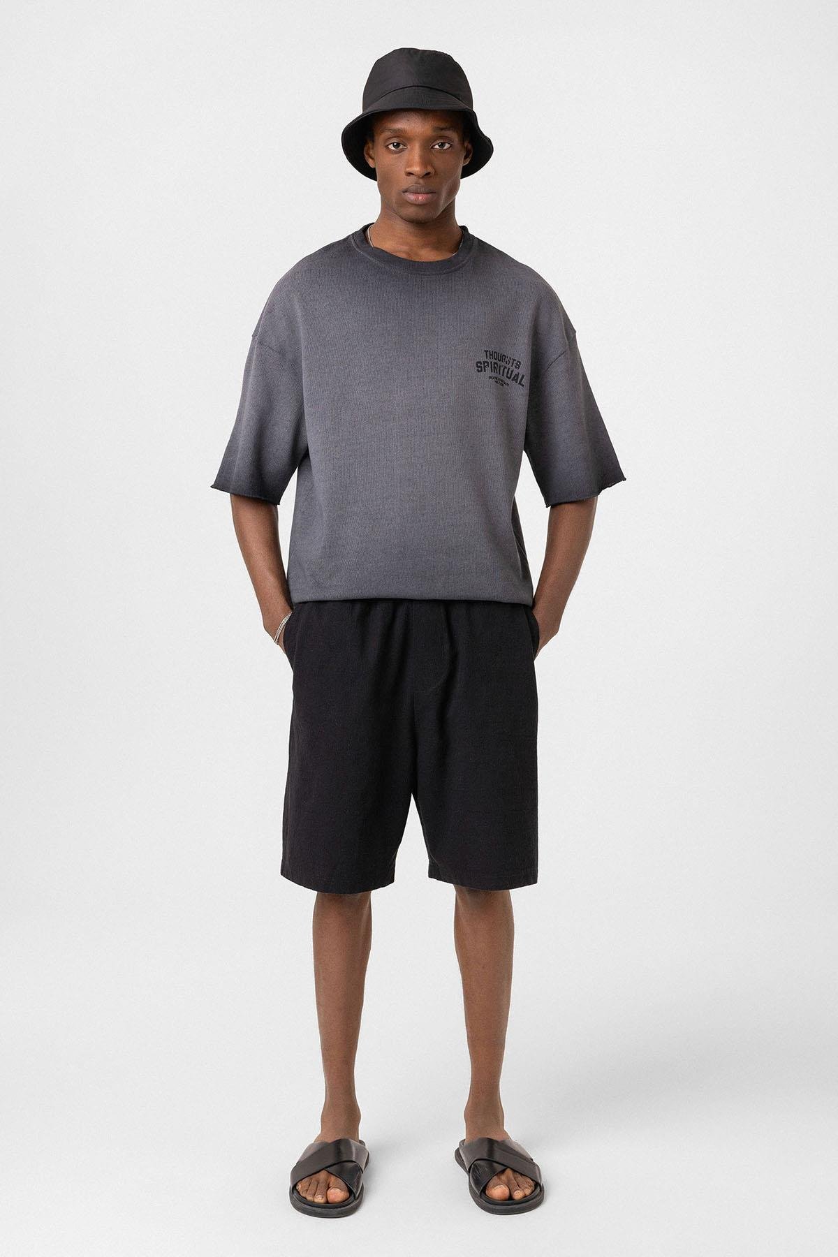Yıkamalı Oversize Triko Tişört Siyah (V70-58)