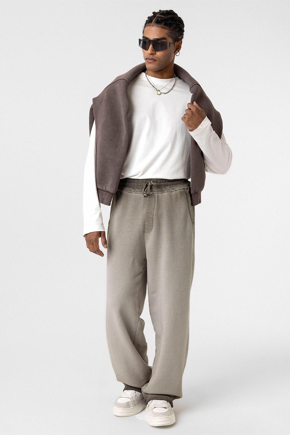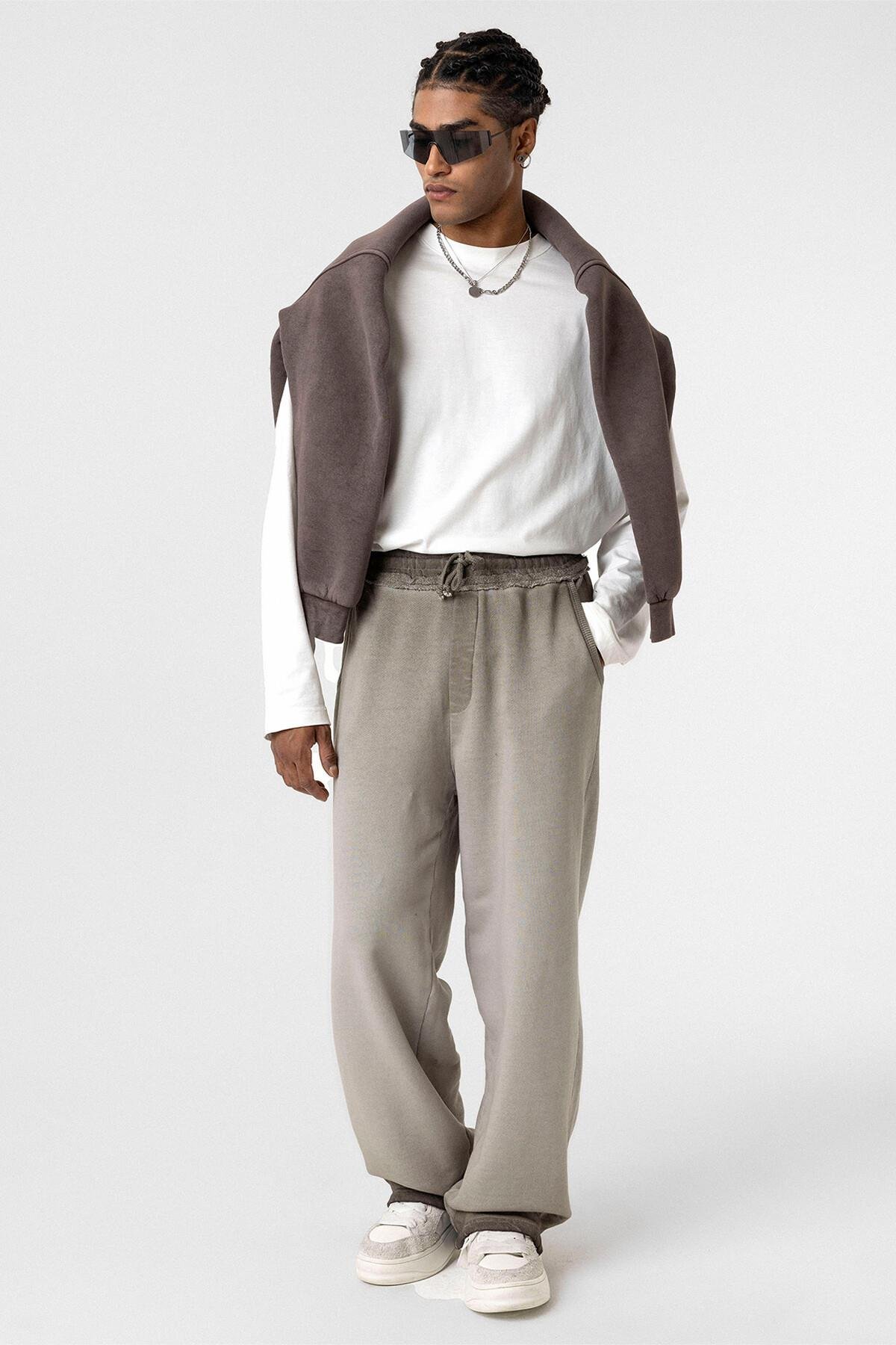 Yıkamalı Renk Geçişli Oversize Eşofman Altı Vizon (V20-09)