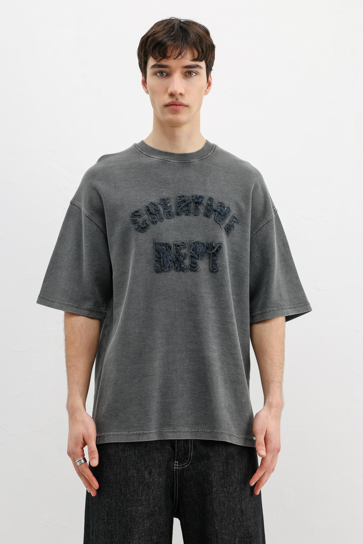 Yıkamalı Yazı Baskılı Oversize Tişört Siyah (V70-147)