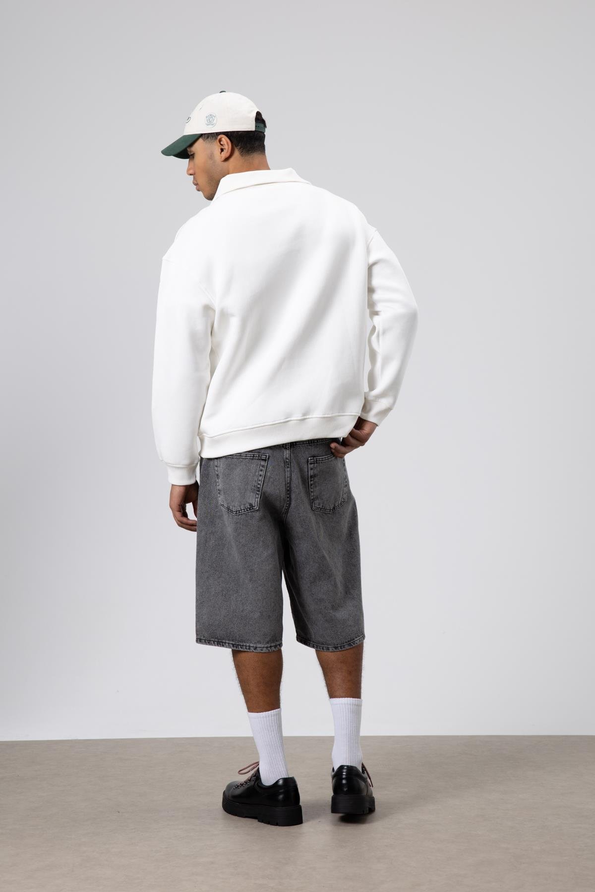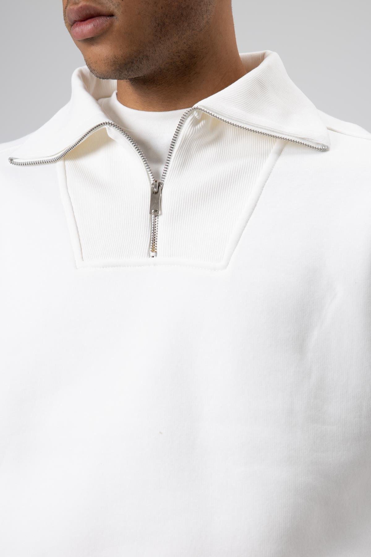 Basic Fermuarlı Dik Yaka Sweatshirt Ekru (V70-81)