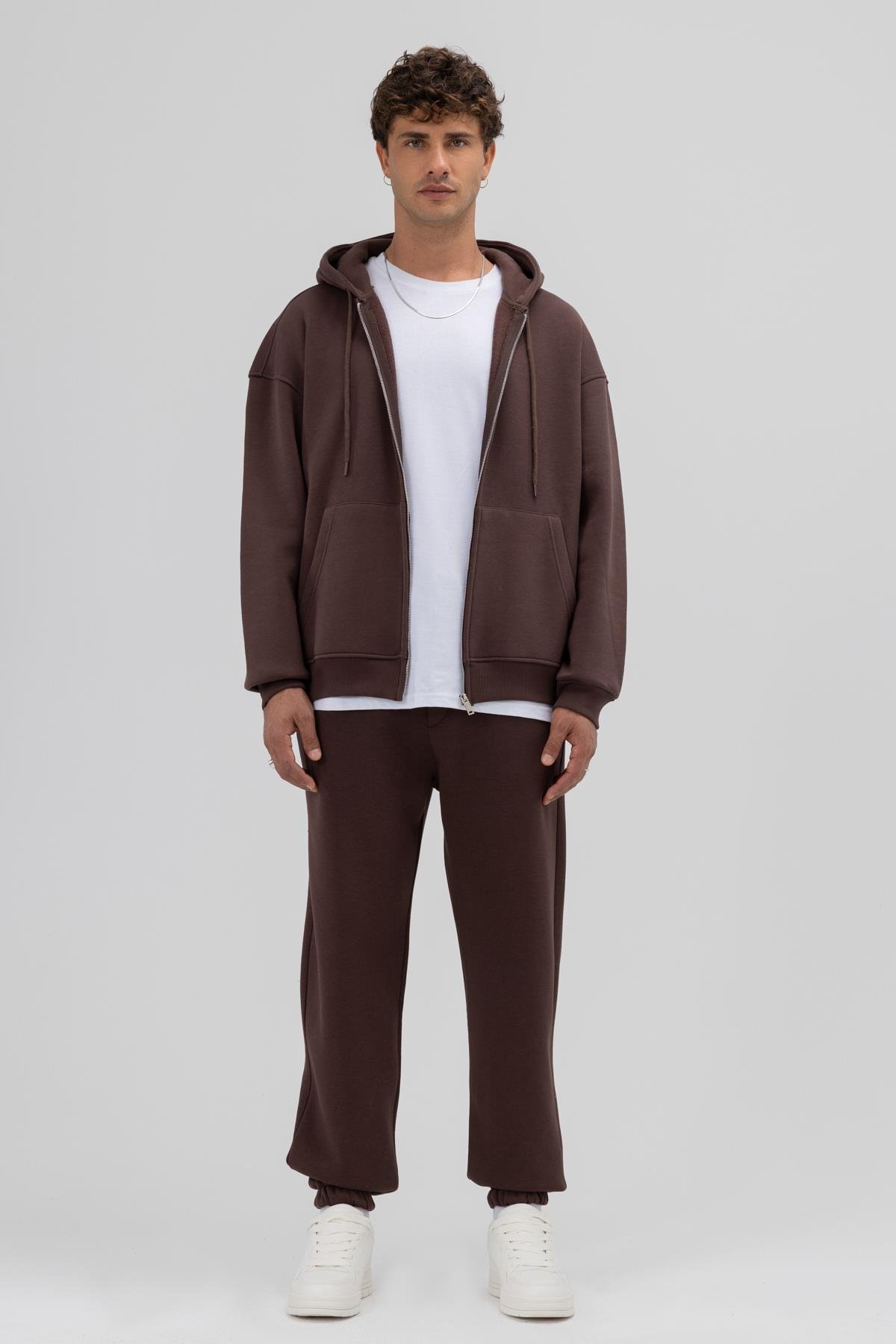 Basic Paça Lastikli Eşofman Alt Kahve (V80-29)
