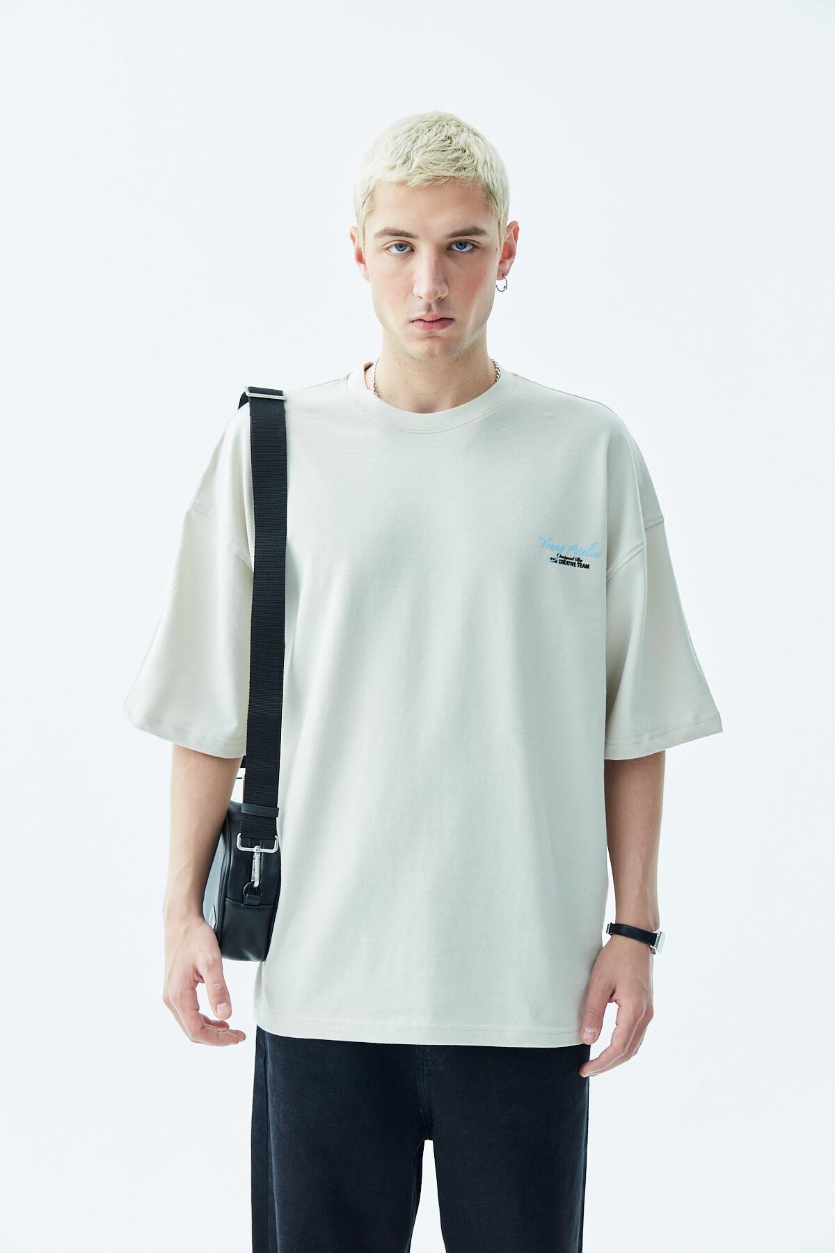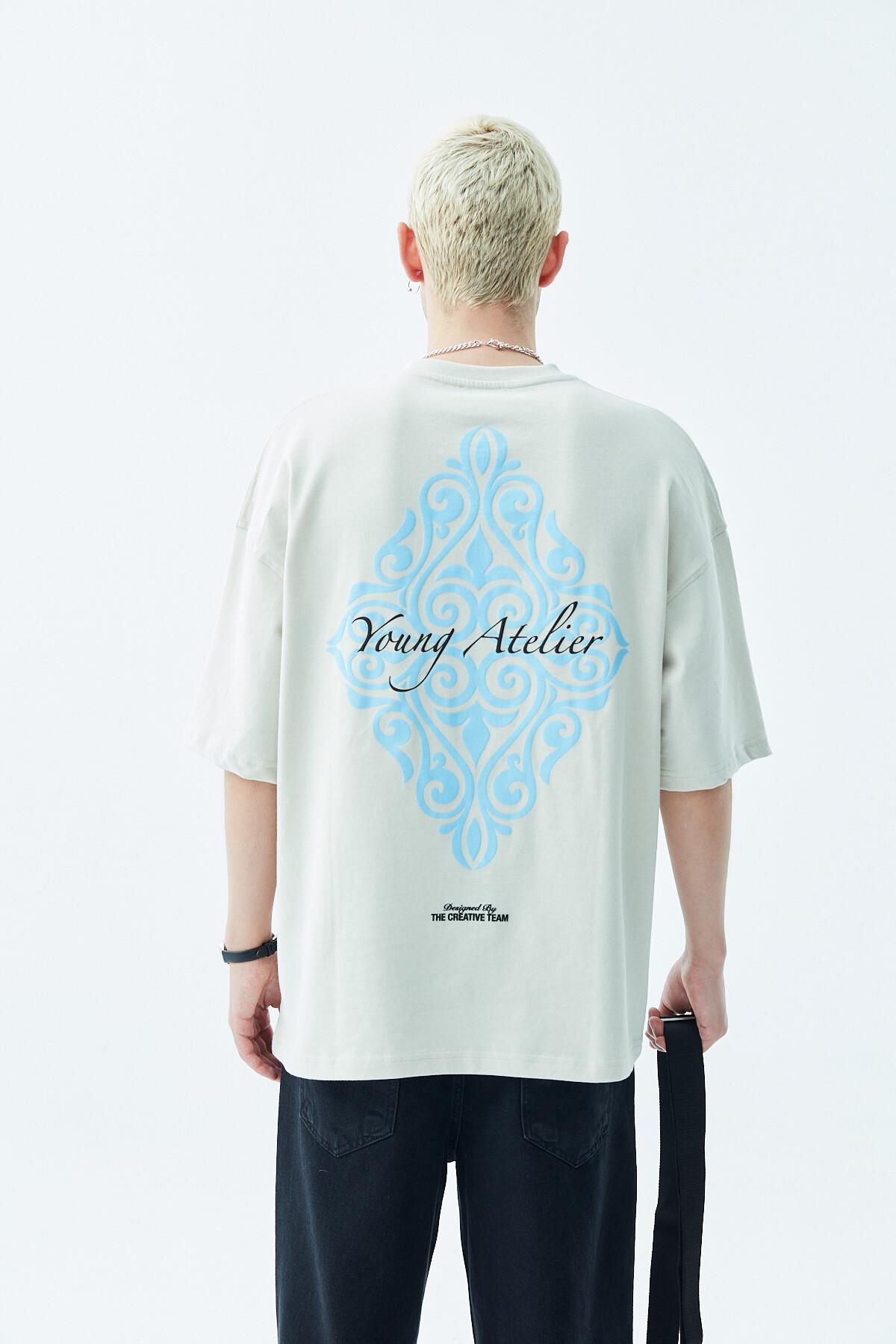 Baskılı Oversize Tişört-Açık Gri Gri (40-731)
