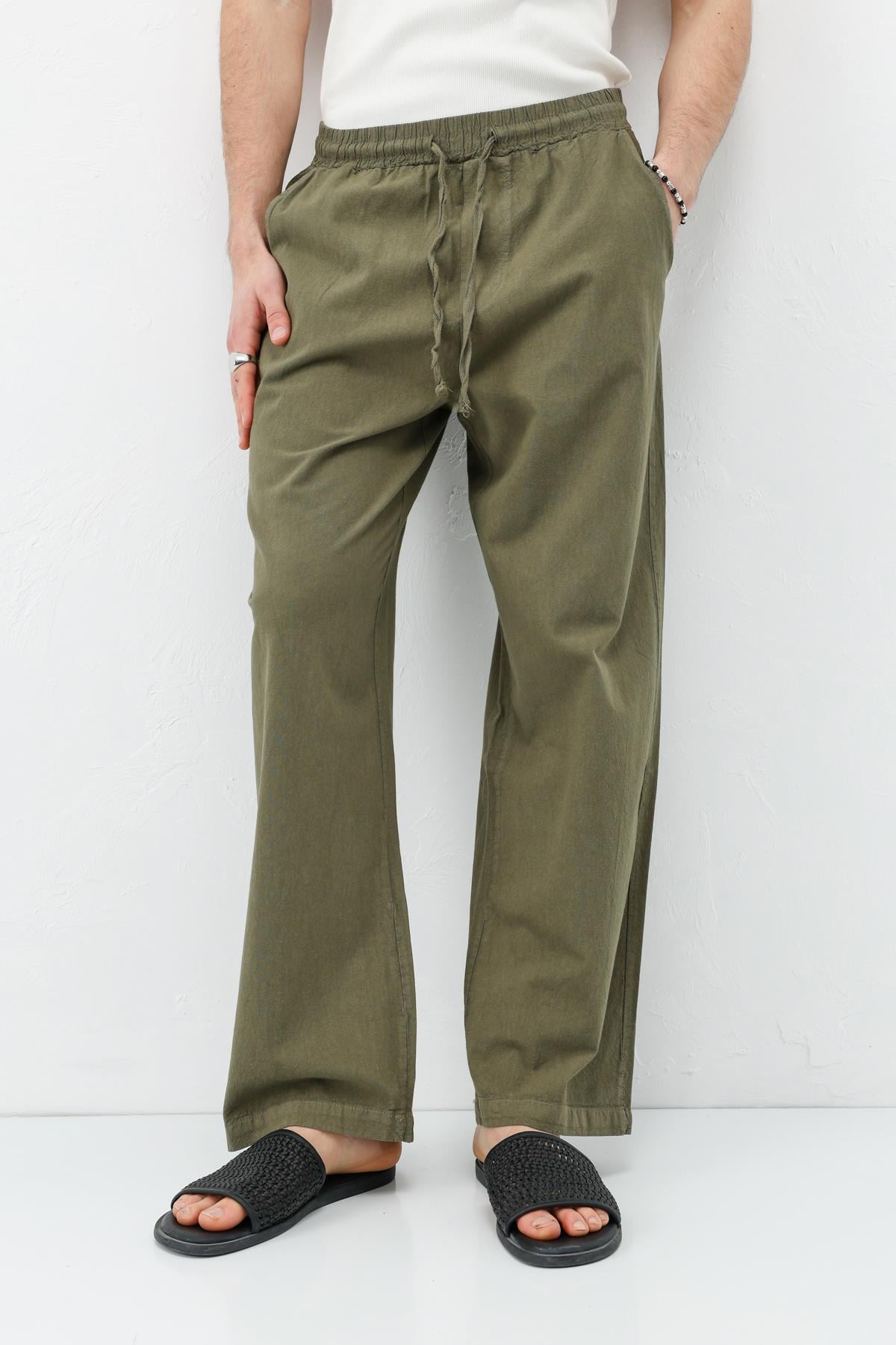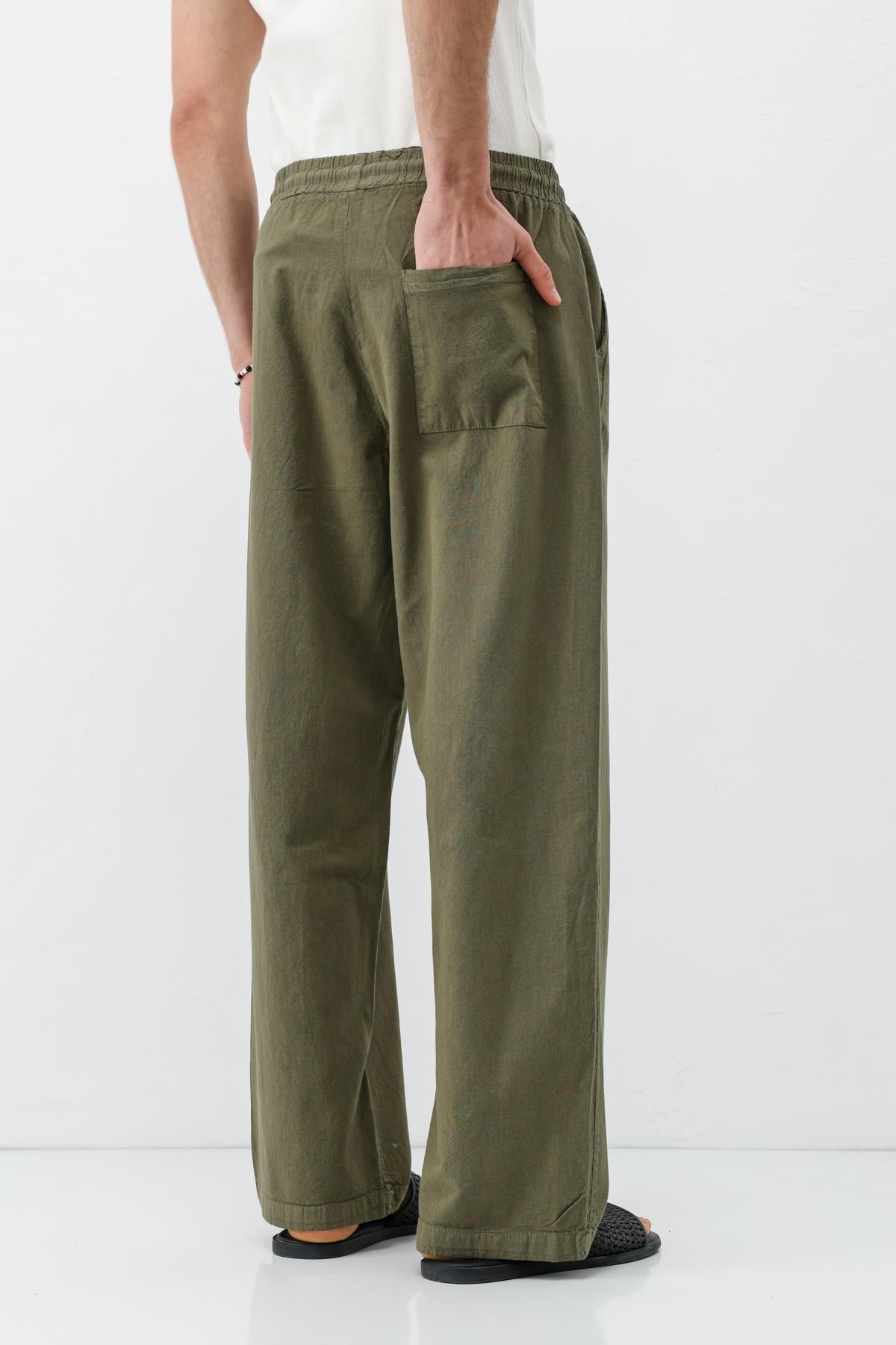 Bel Lastikli Baggy Fit Keten Pantolon Haki (V80-22)