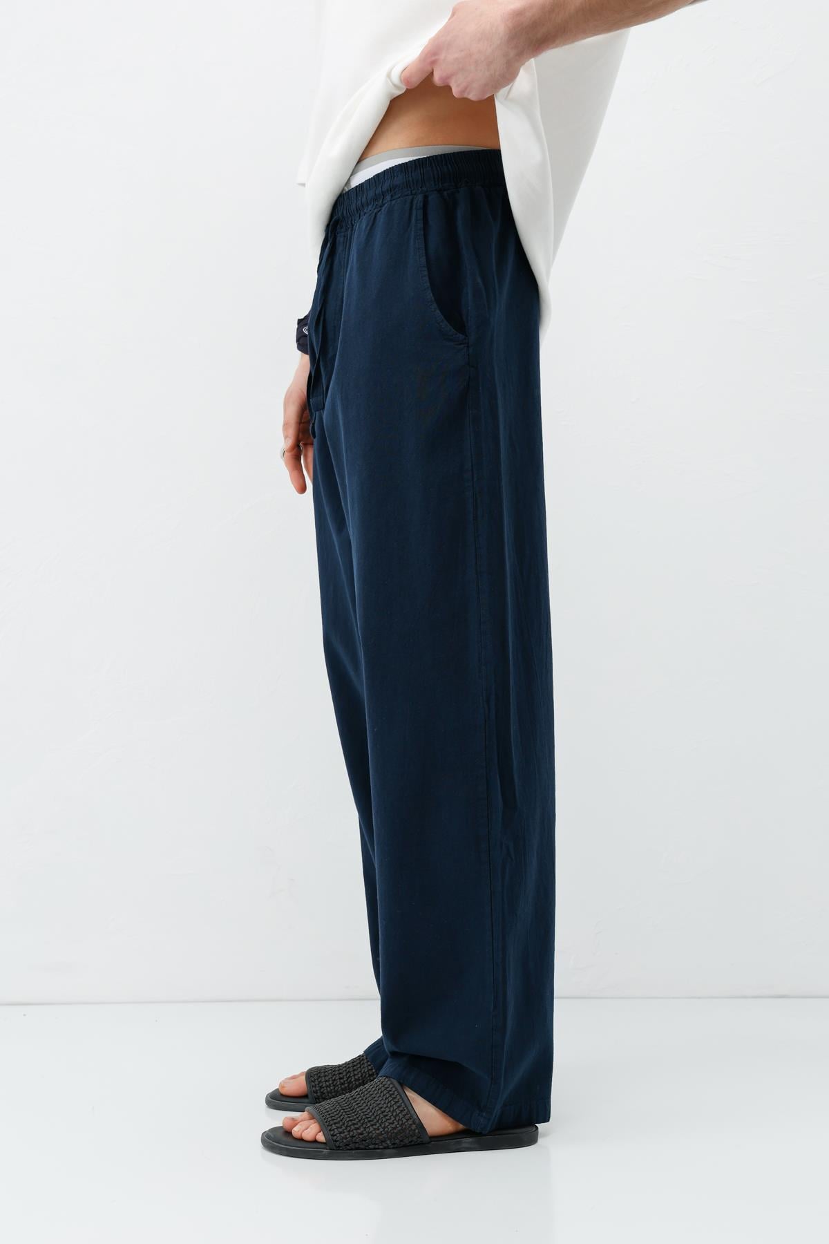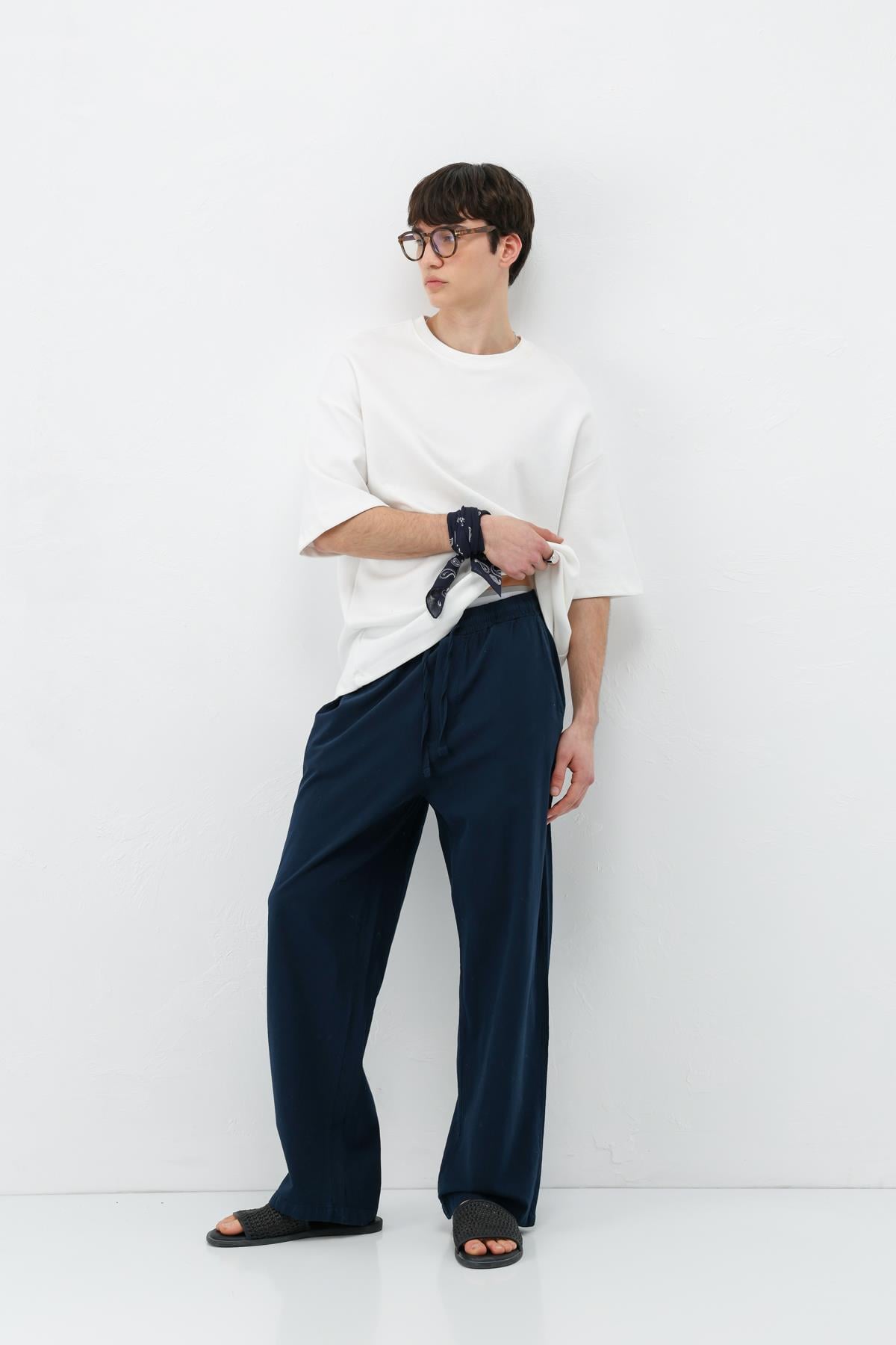 Bel Lastikli Baggy Fit Keten Pantolon Lacivert (V80-22)