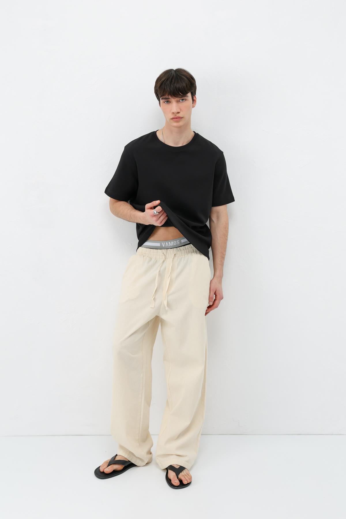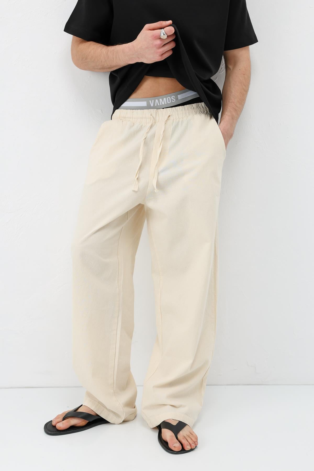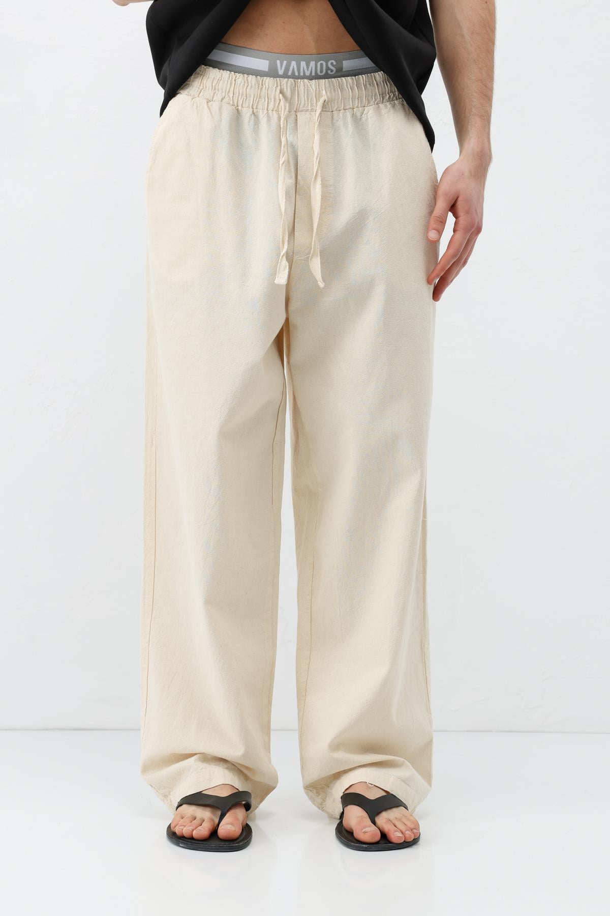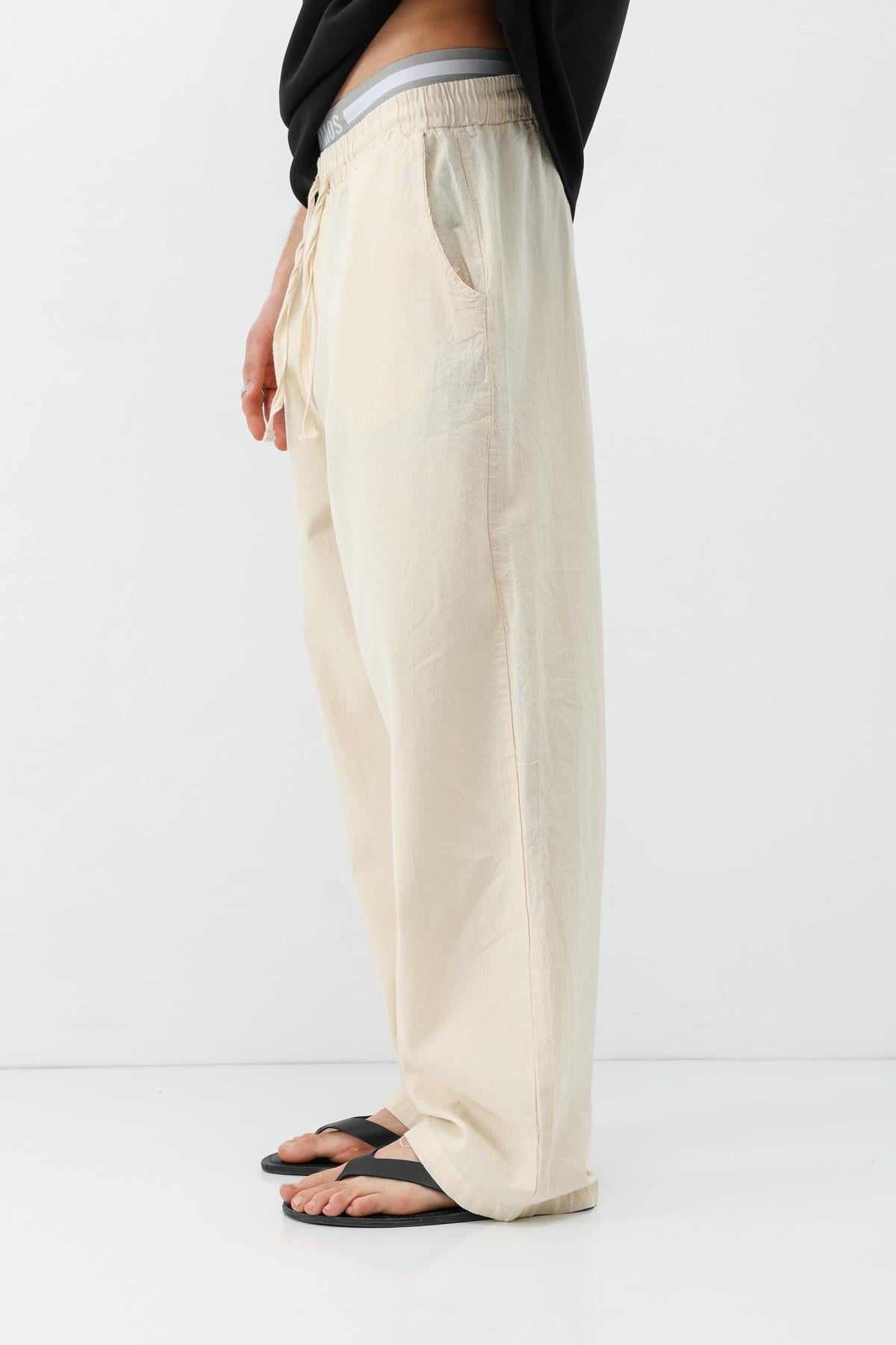 Bel Lastikli Baggy Fit Keten Pantolon Naturel (V80-22)