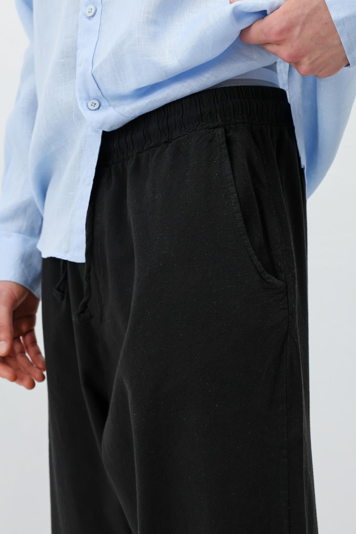 Bel Lastikli Baggy Fit Keten Pantolon Siyah (V80-22)