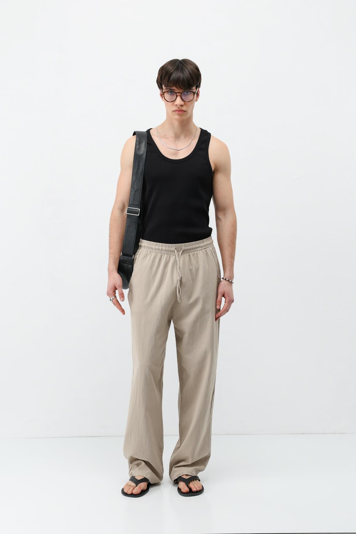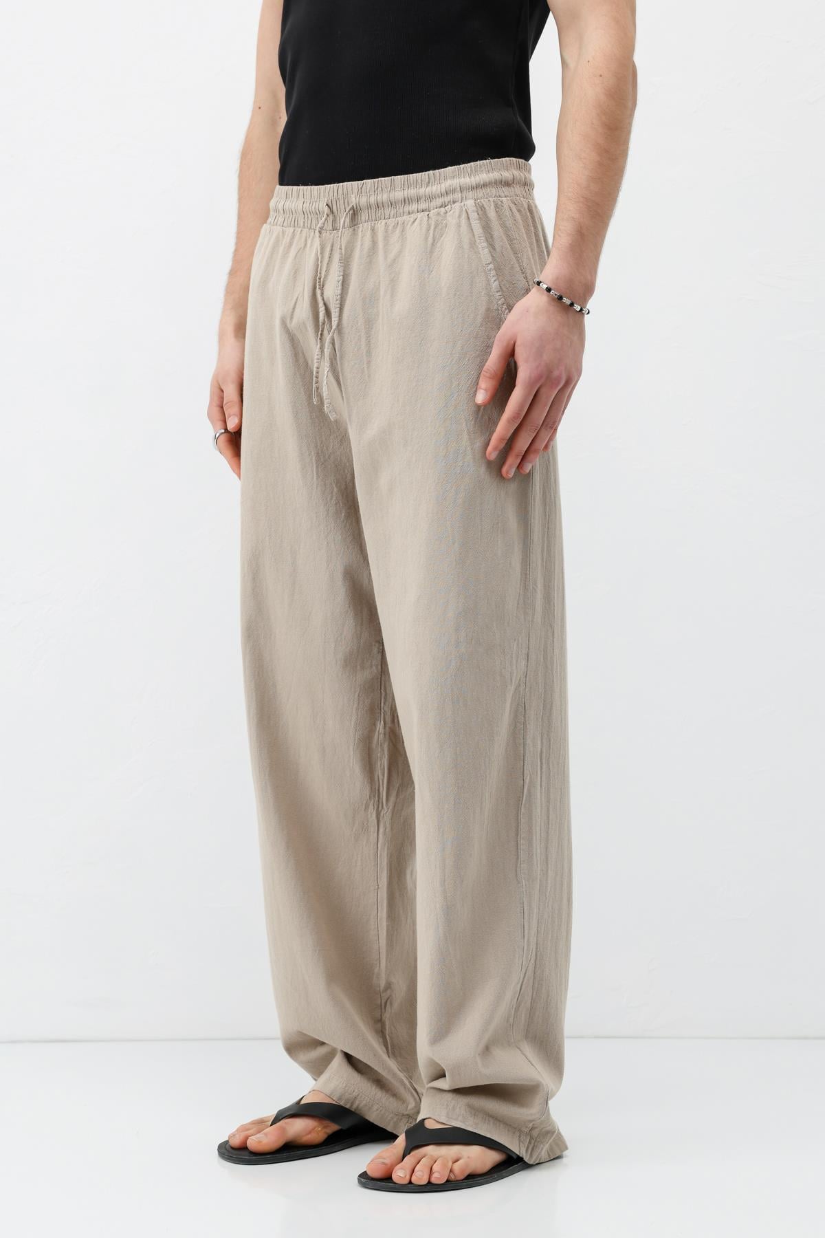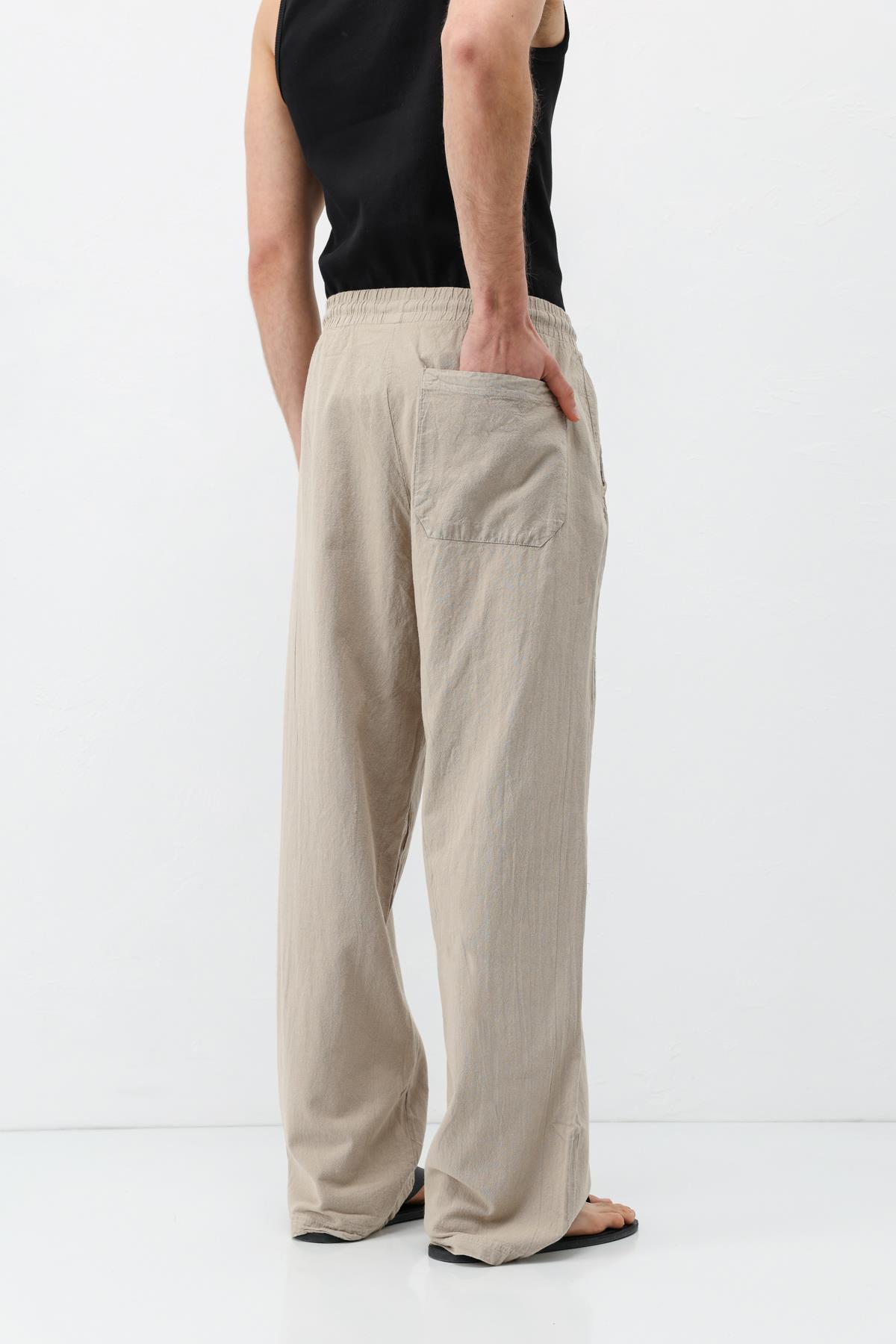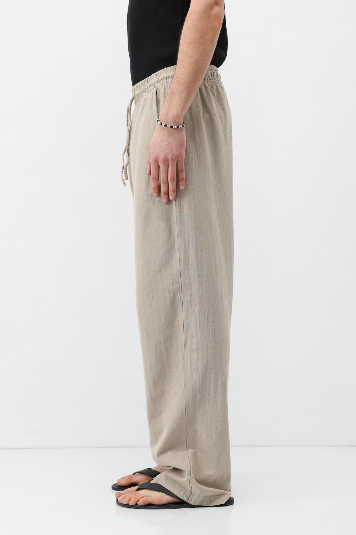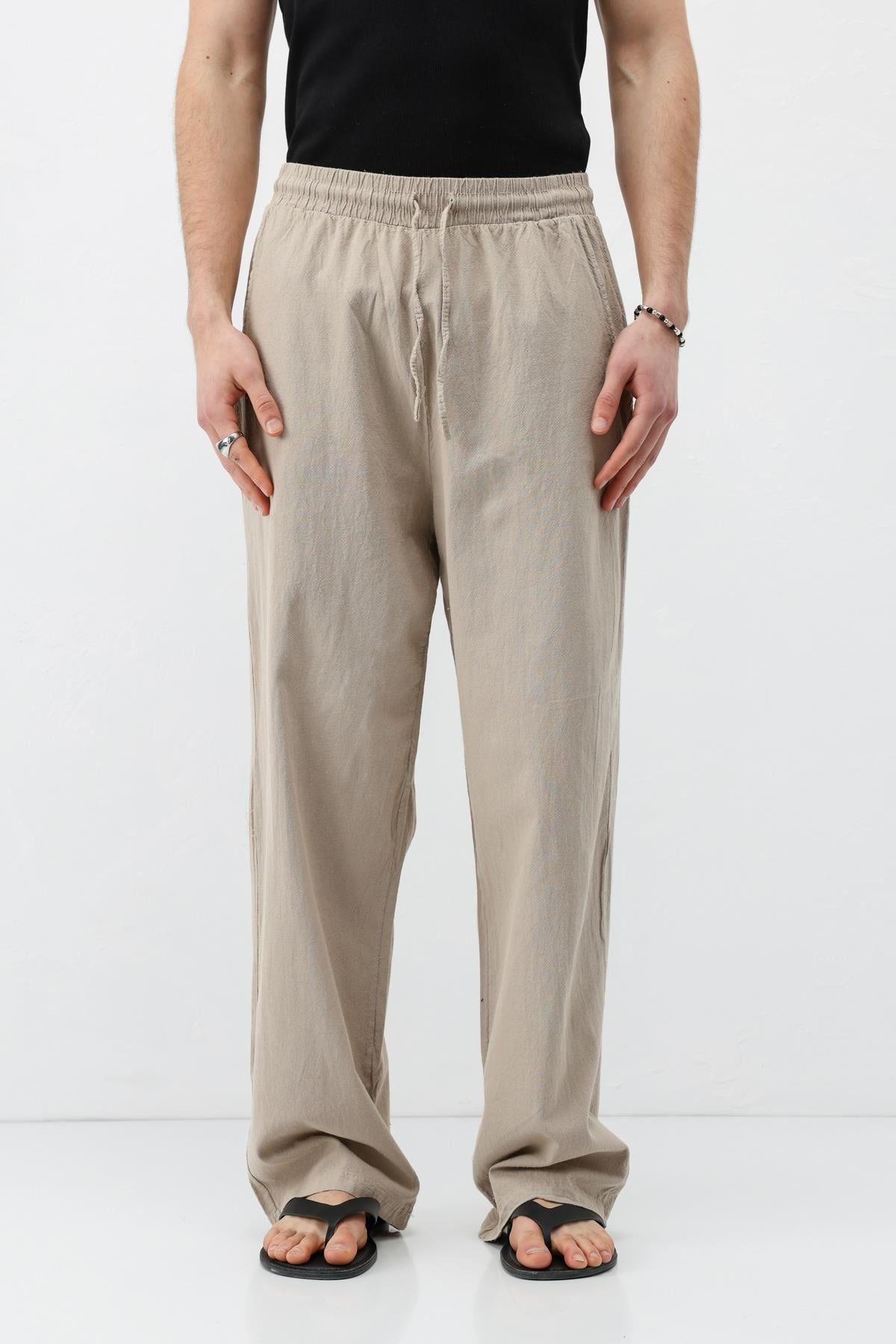 Bel Lastikli Baggy Fit Keten Pantolon Taş (V80-22)