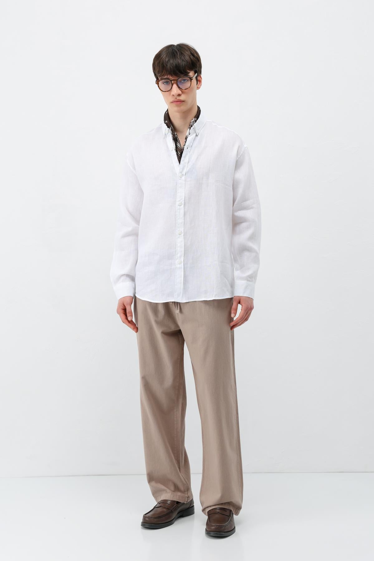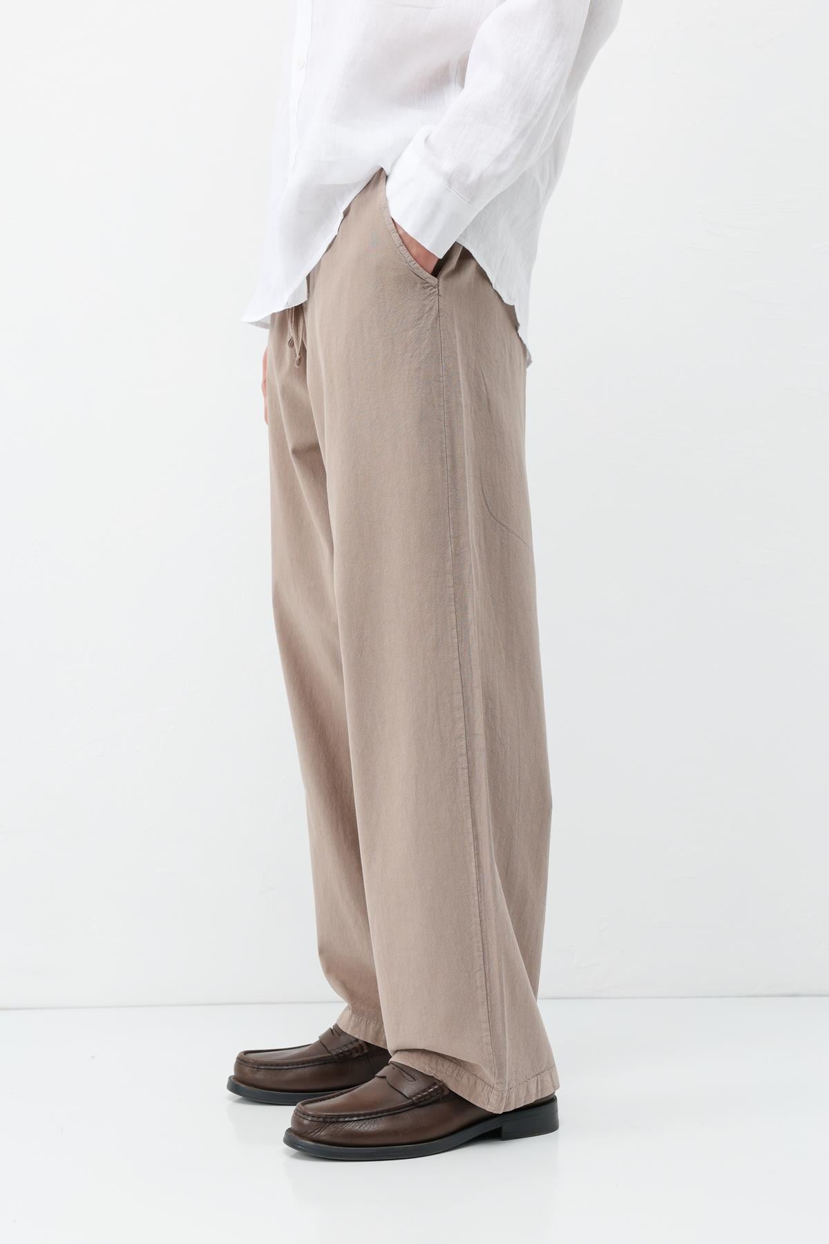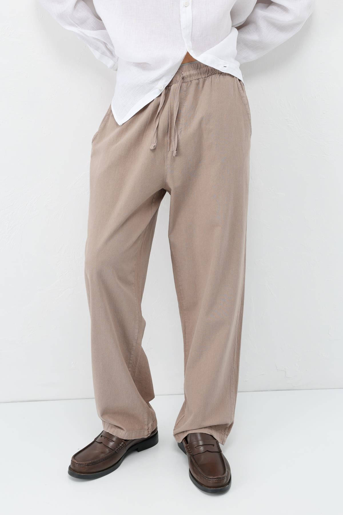 Bel Lastikli Baggy Fit Keten Pantolon Vizon (V80-22)