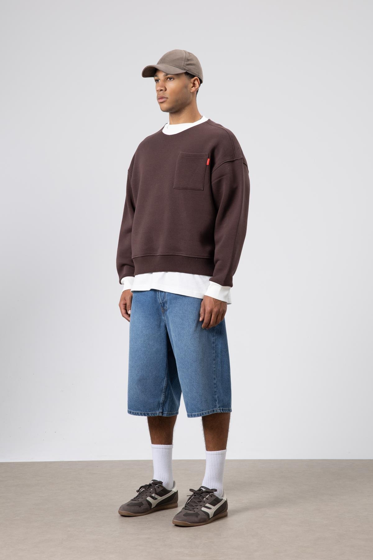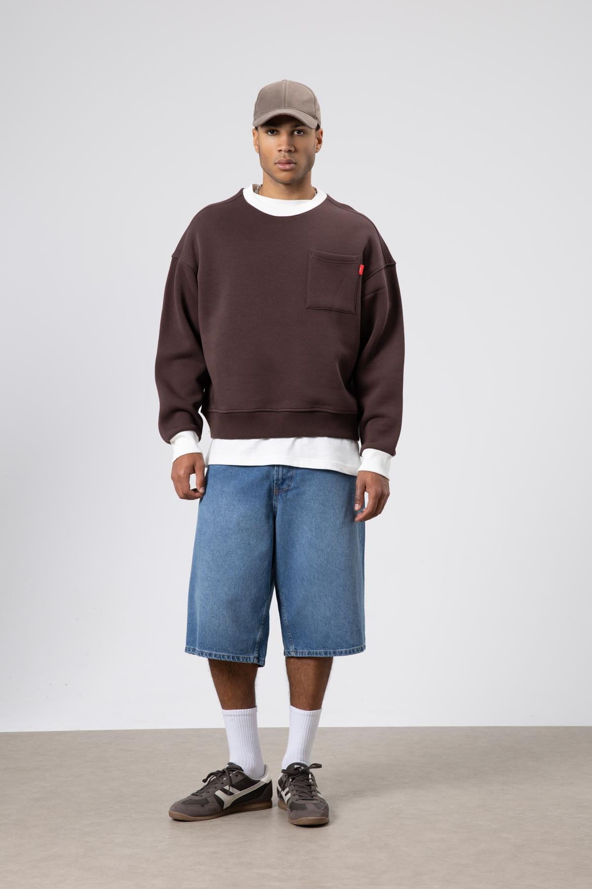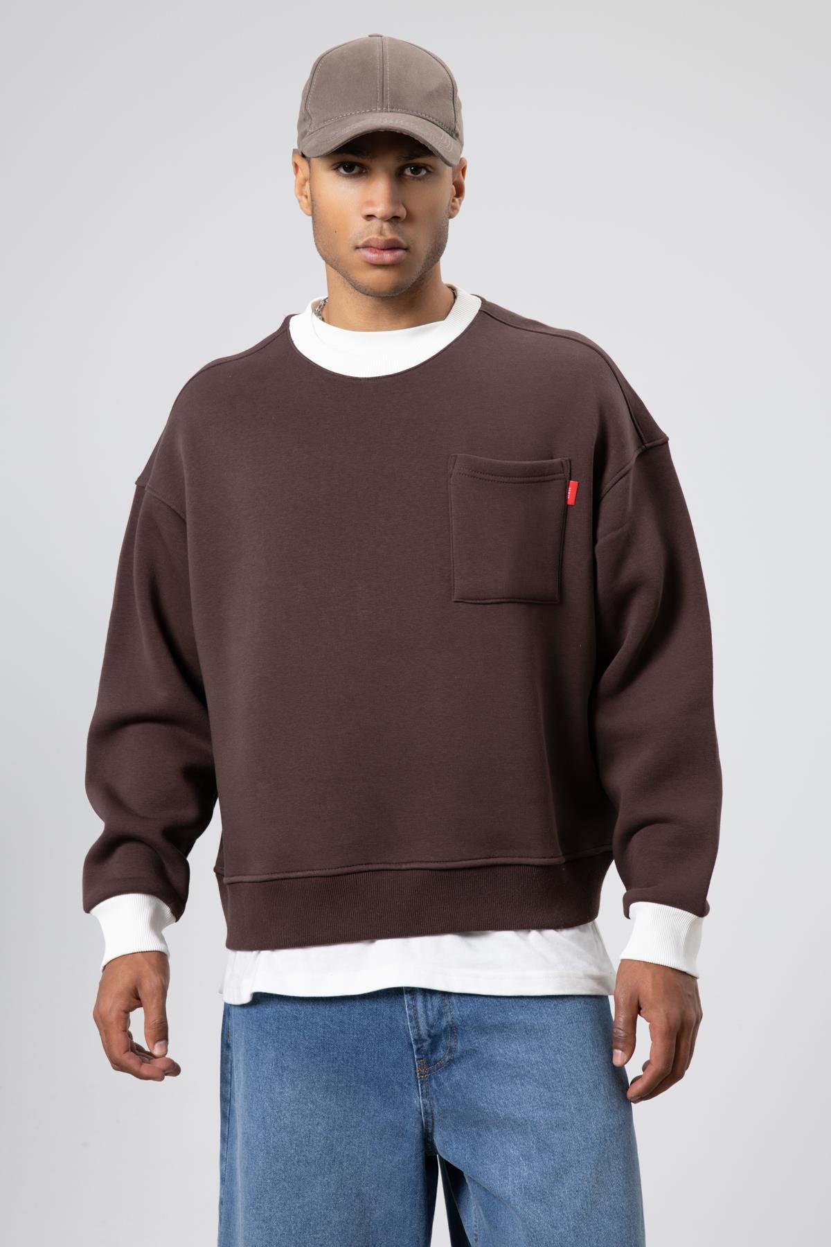 Bisiklet Yaka Cep Detaylı Oversize Sweatshirt Kahve (V70-104)