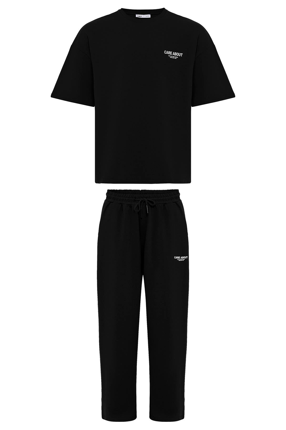 Care About Baskılı Oversize Eşofman Takım-Siyah Siyah (40-573)