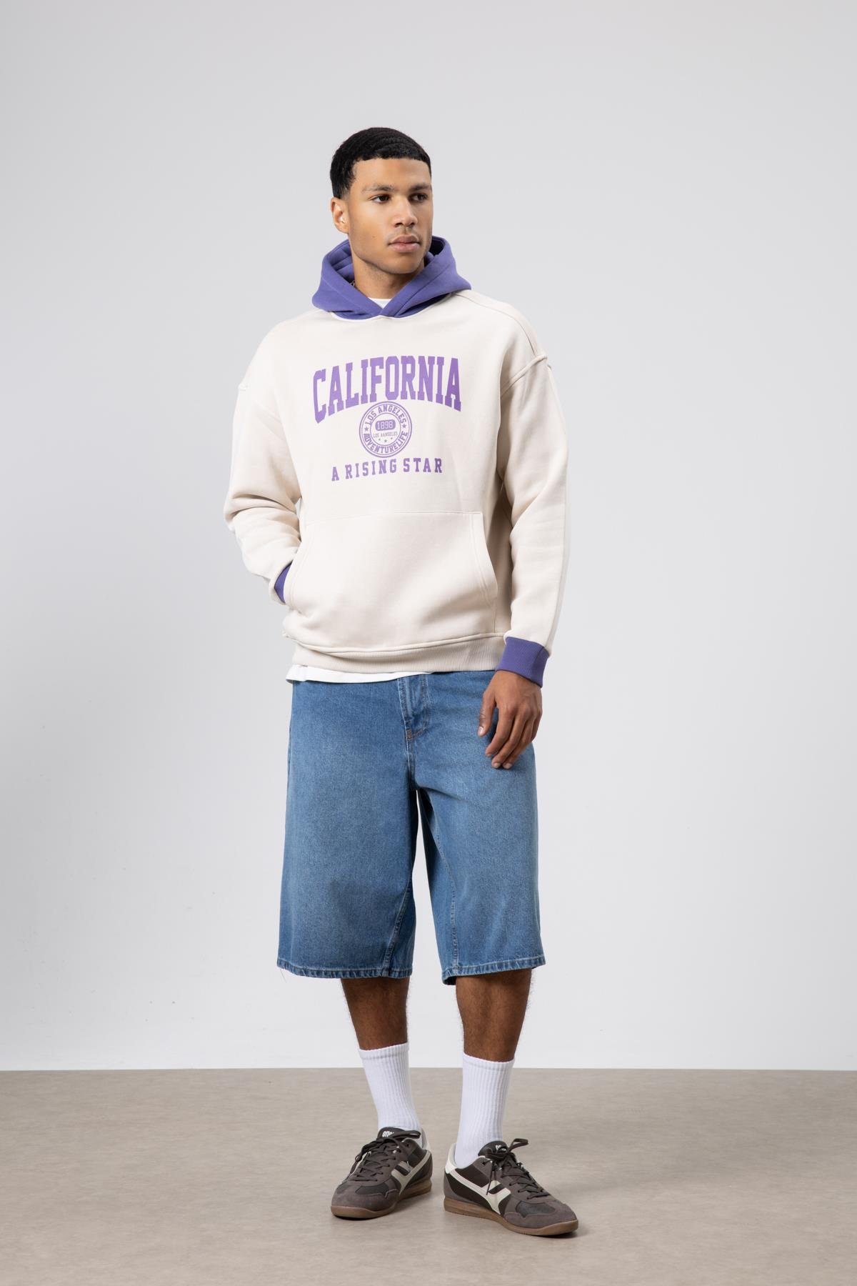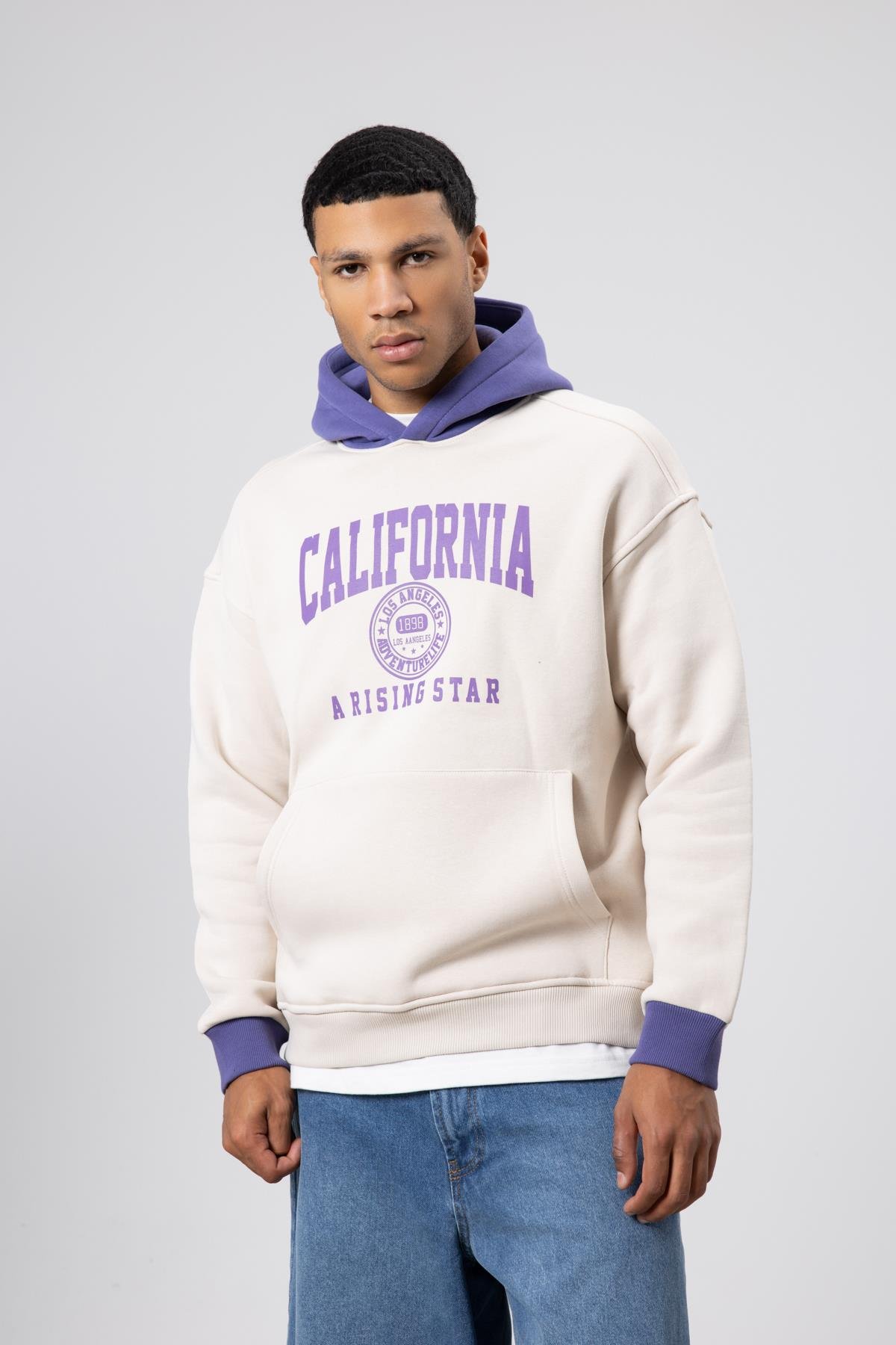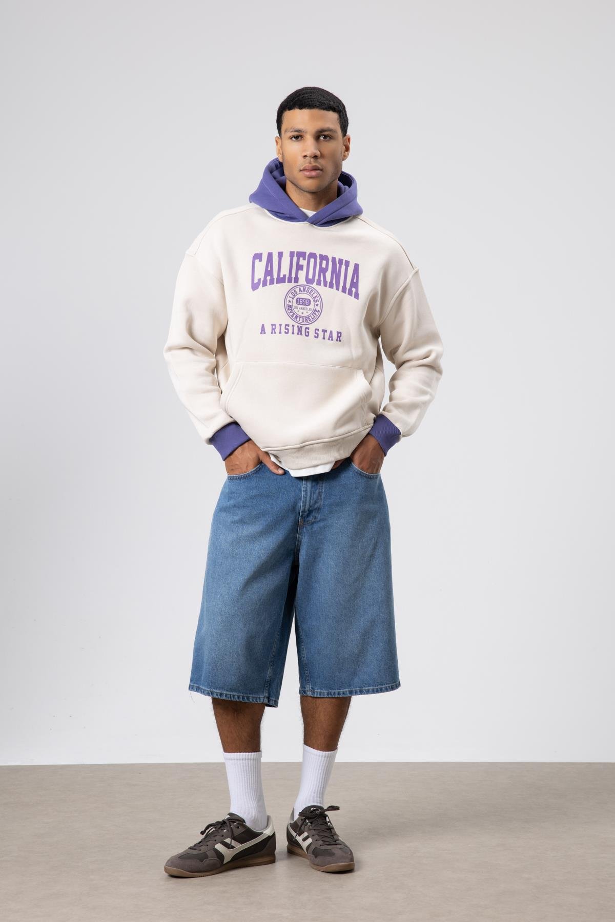 Çift Renk Baskılı Oversize Sweatshirt Taş (V70-94)