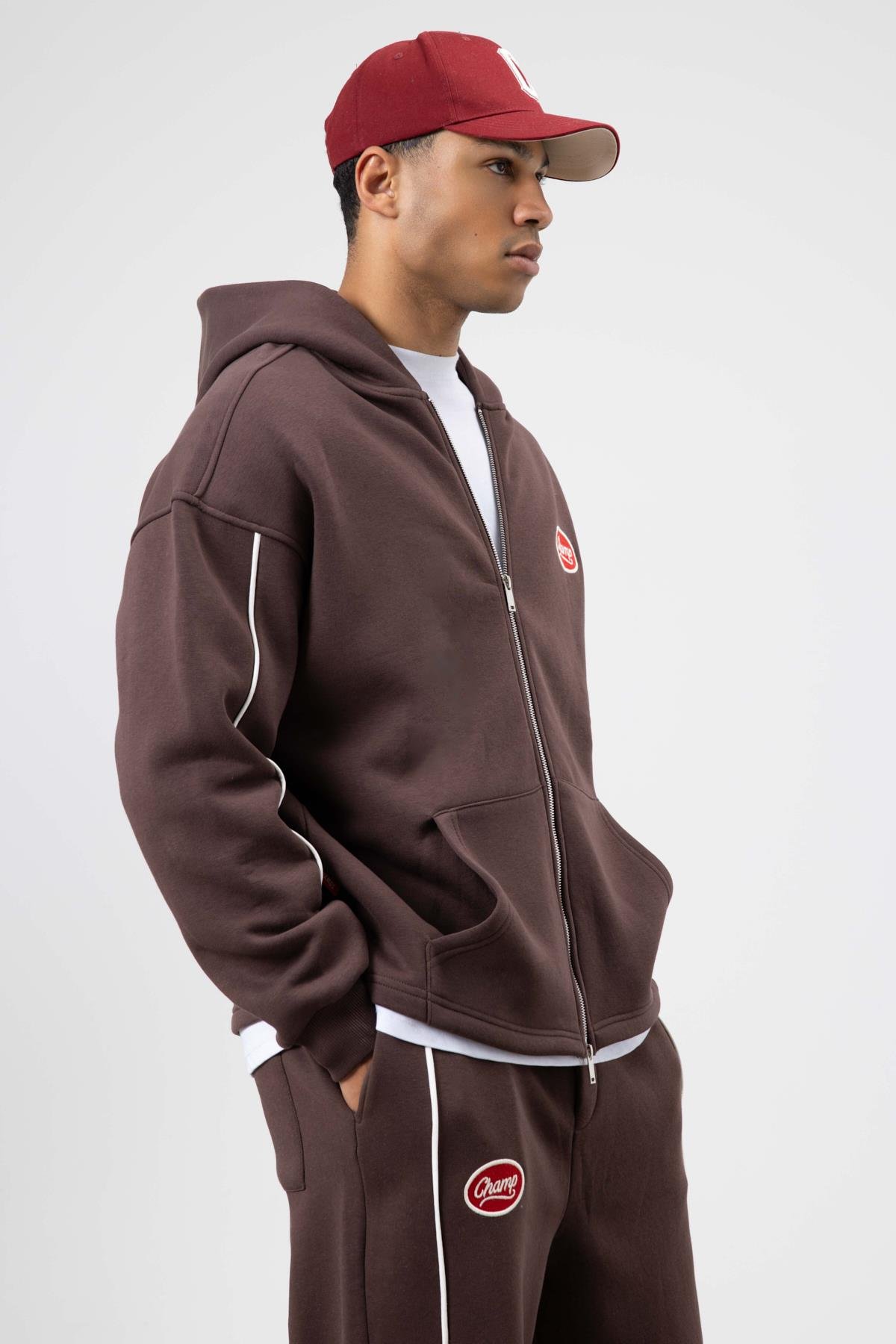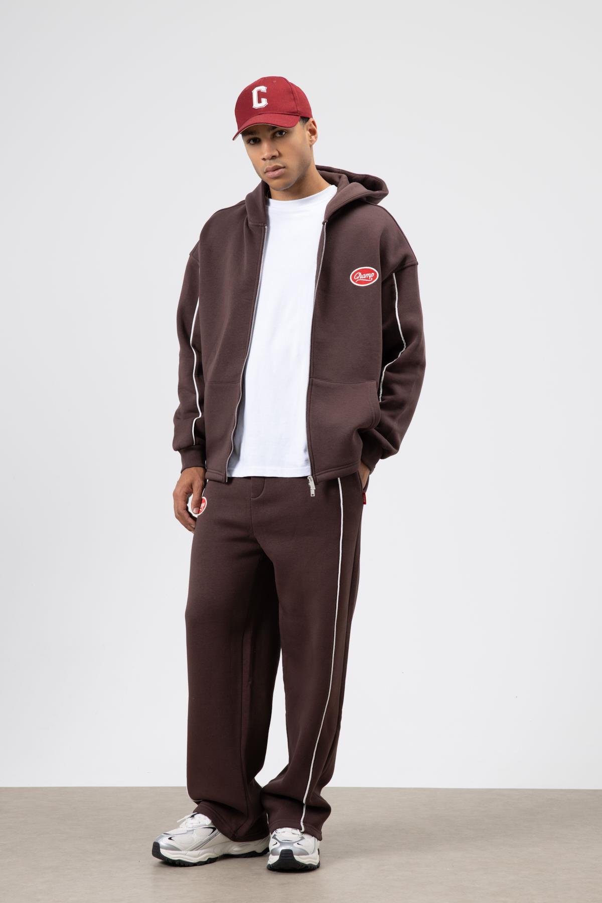 Çizgi Detaylı Oversize Eşofman Takım Kahve (V90-14)