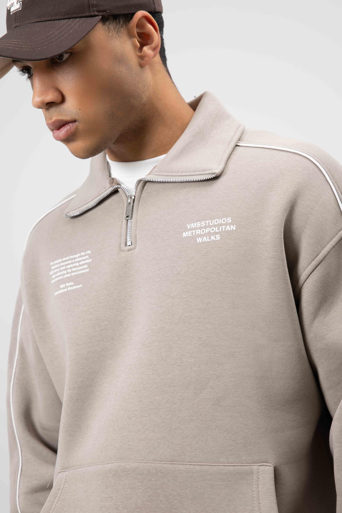 Çizgi Detaylı Oversize Eşofman Takım Vizon (V90-18)