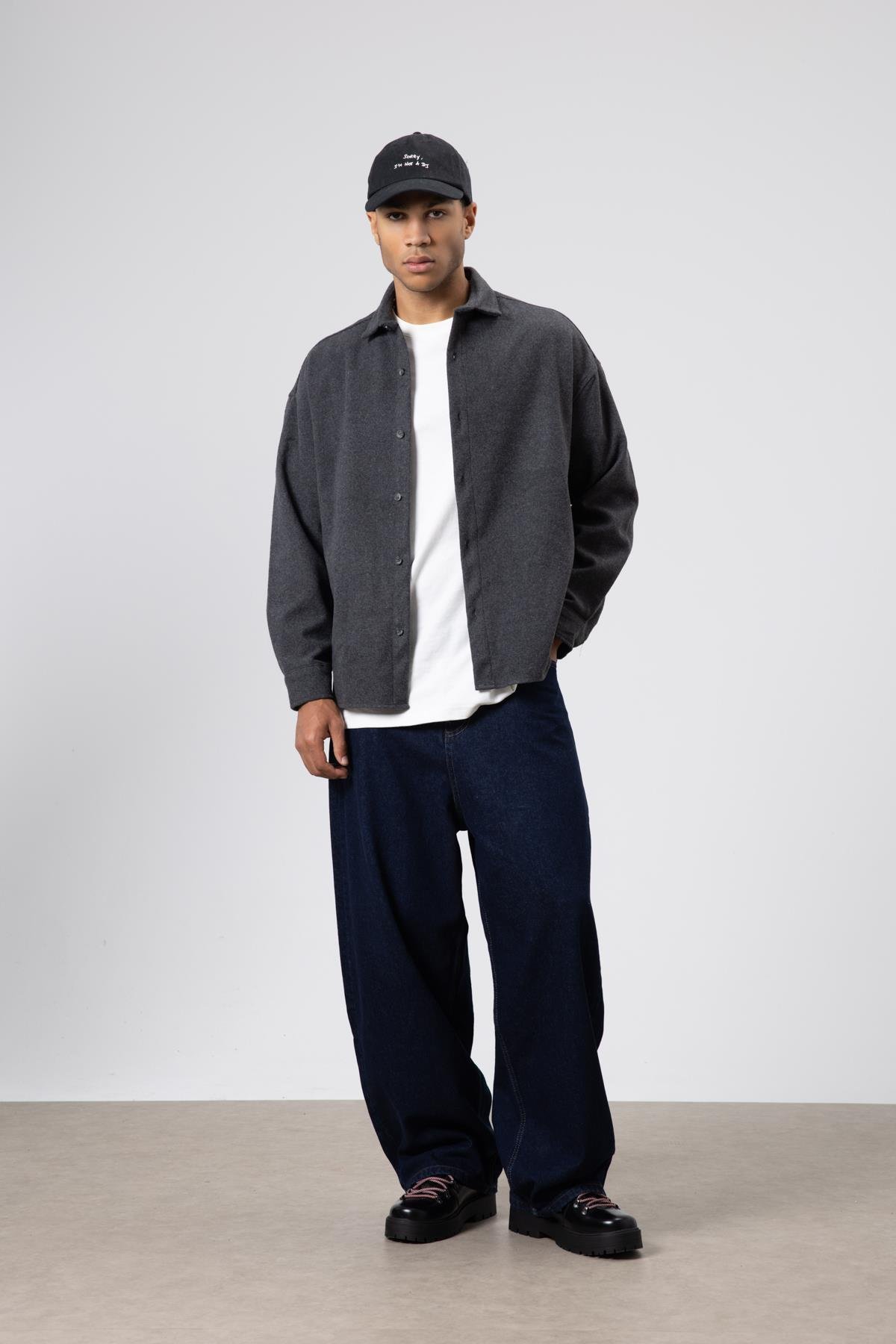 Dokulu Oversize Gömlek Ceket Antrasit (V40-77)