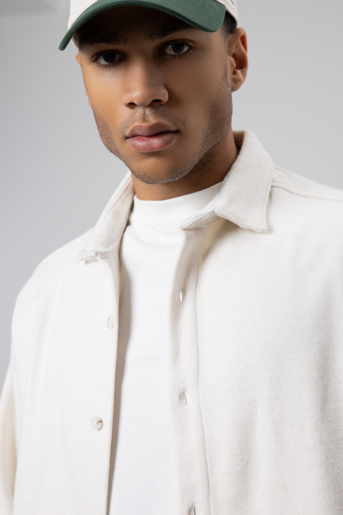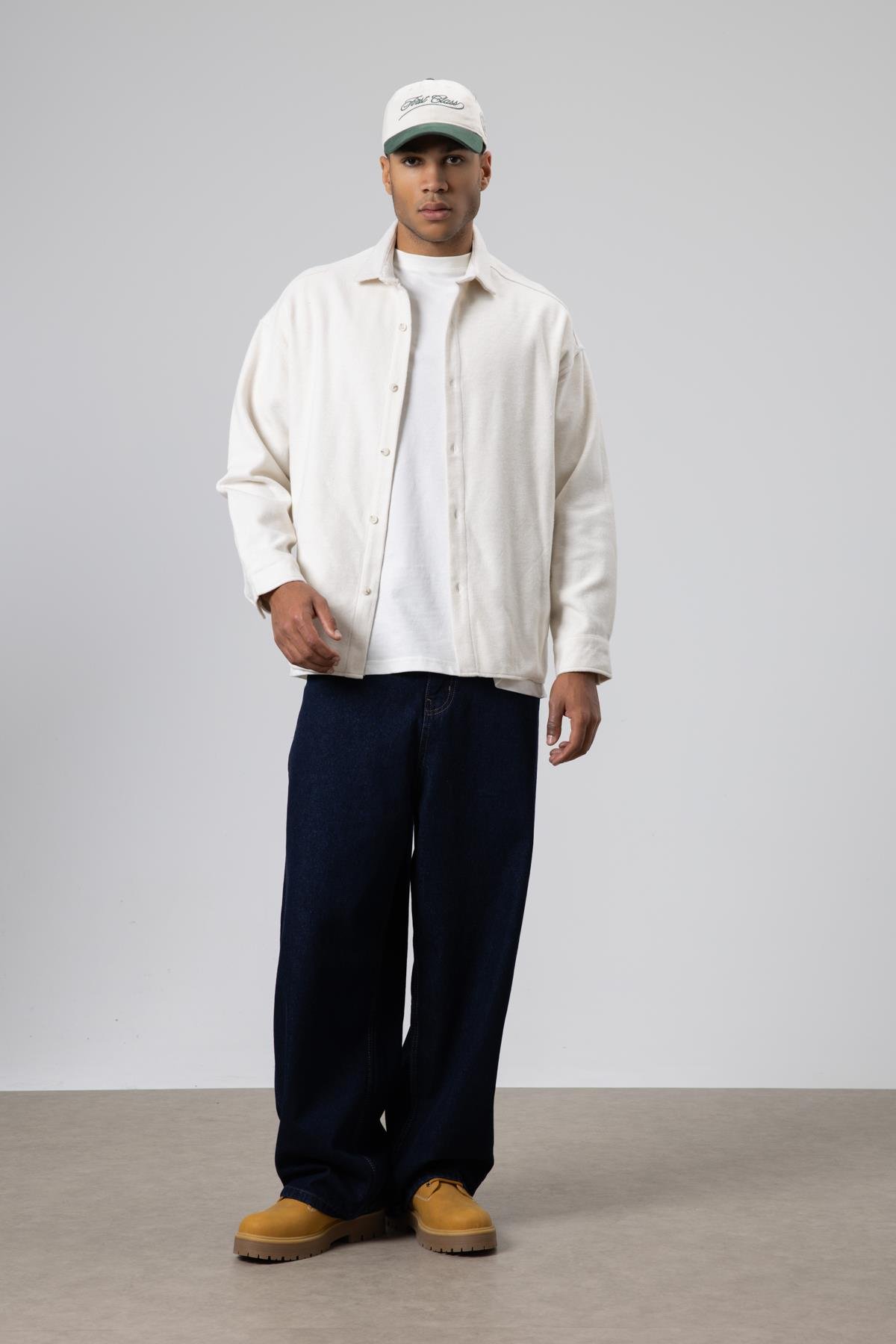 Dokulu Oversize Gömlek Ceket Ekru (V40-77)