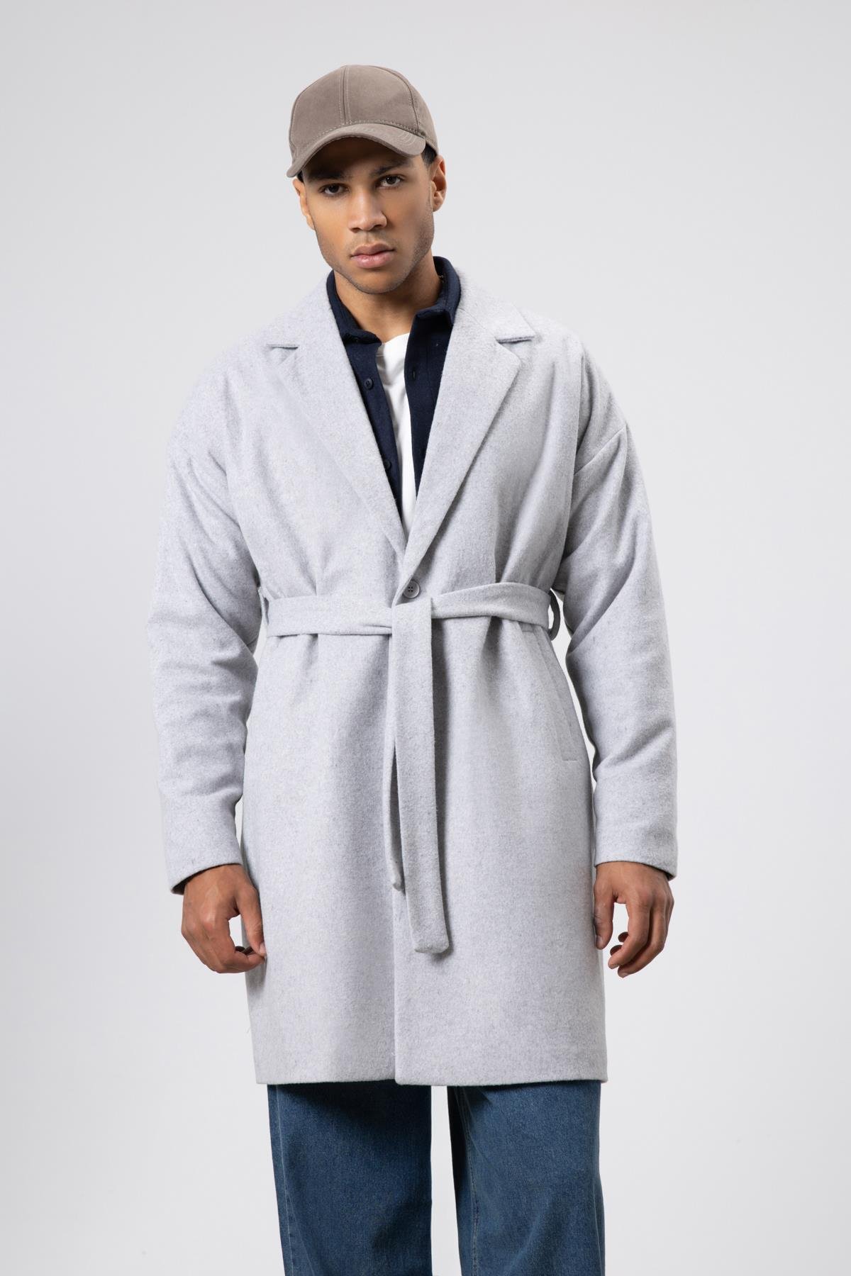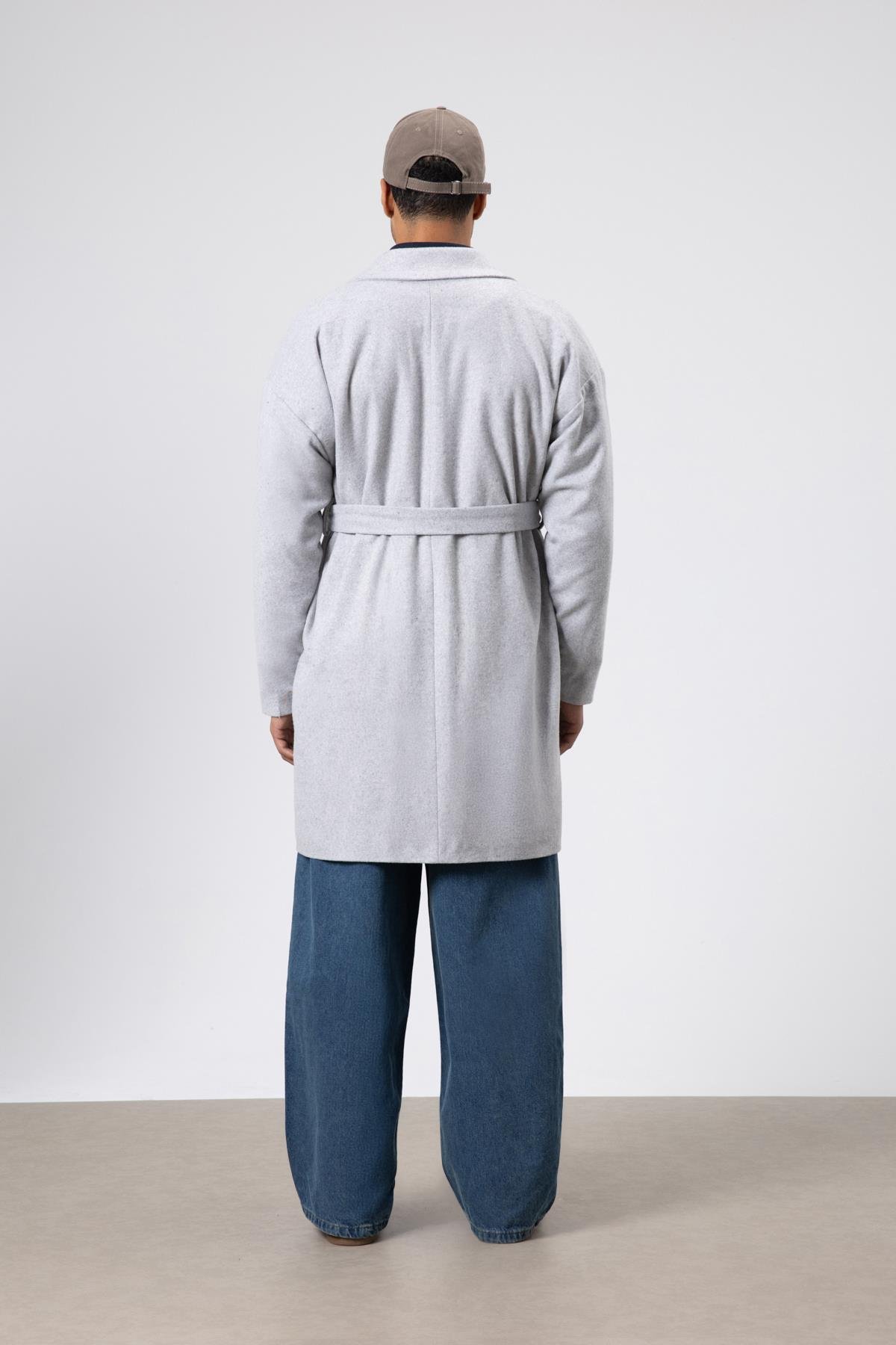 Kemerli Oversize Kaşe Kaban Gri (40-139)