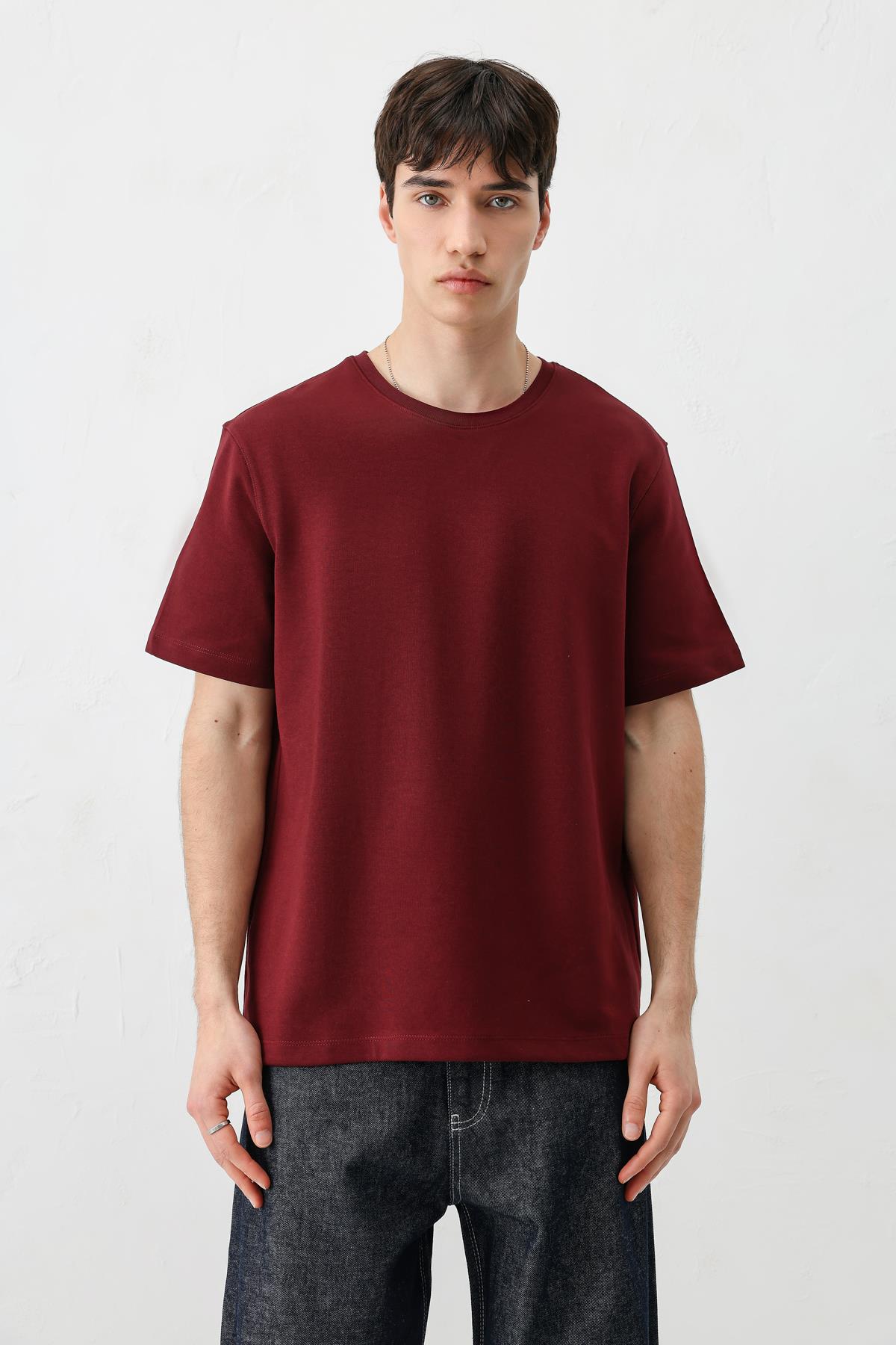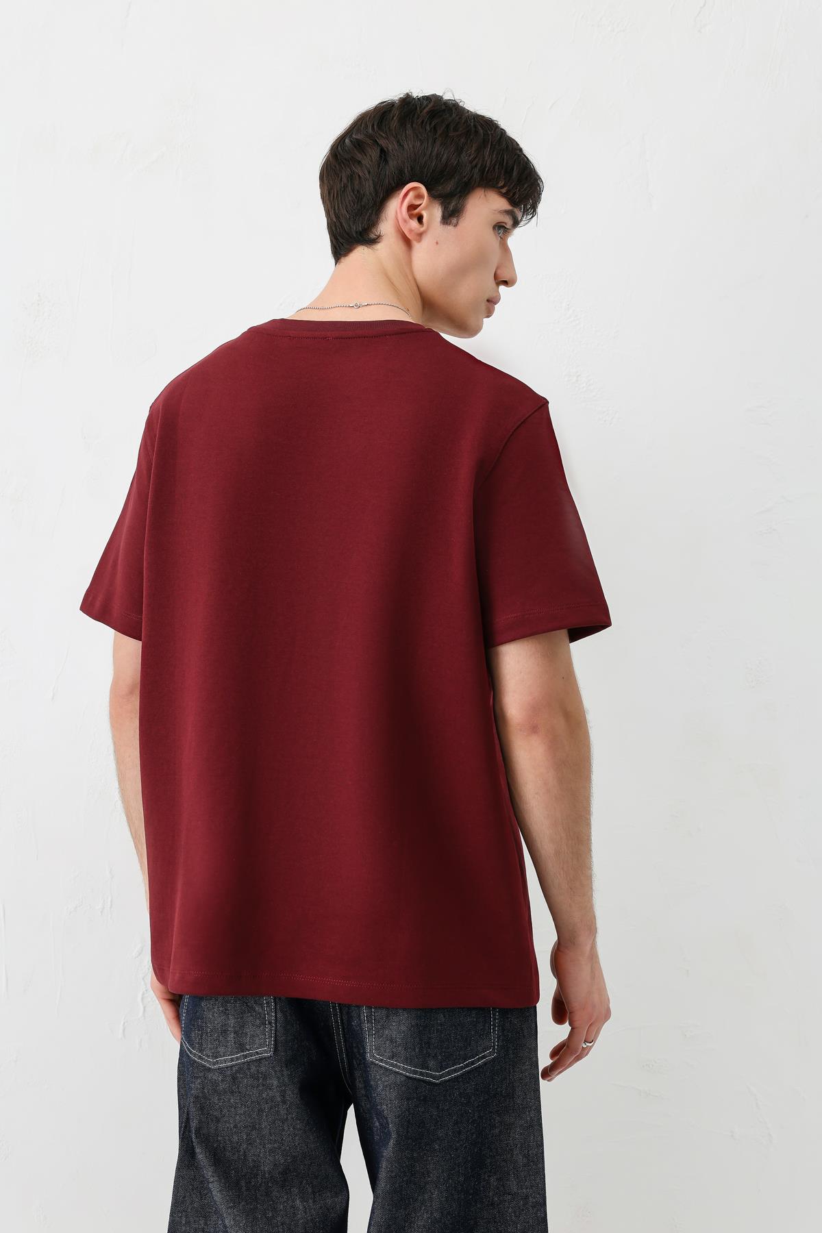 Kısa Kollu Boxy Fit Tişört Bordo (V70-161)