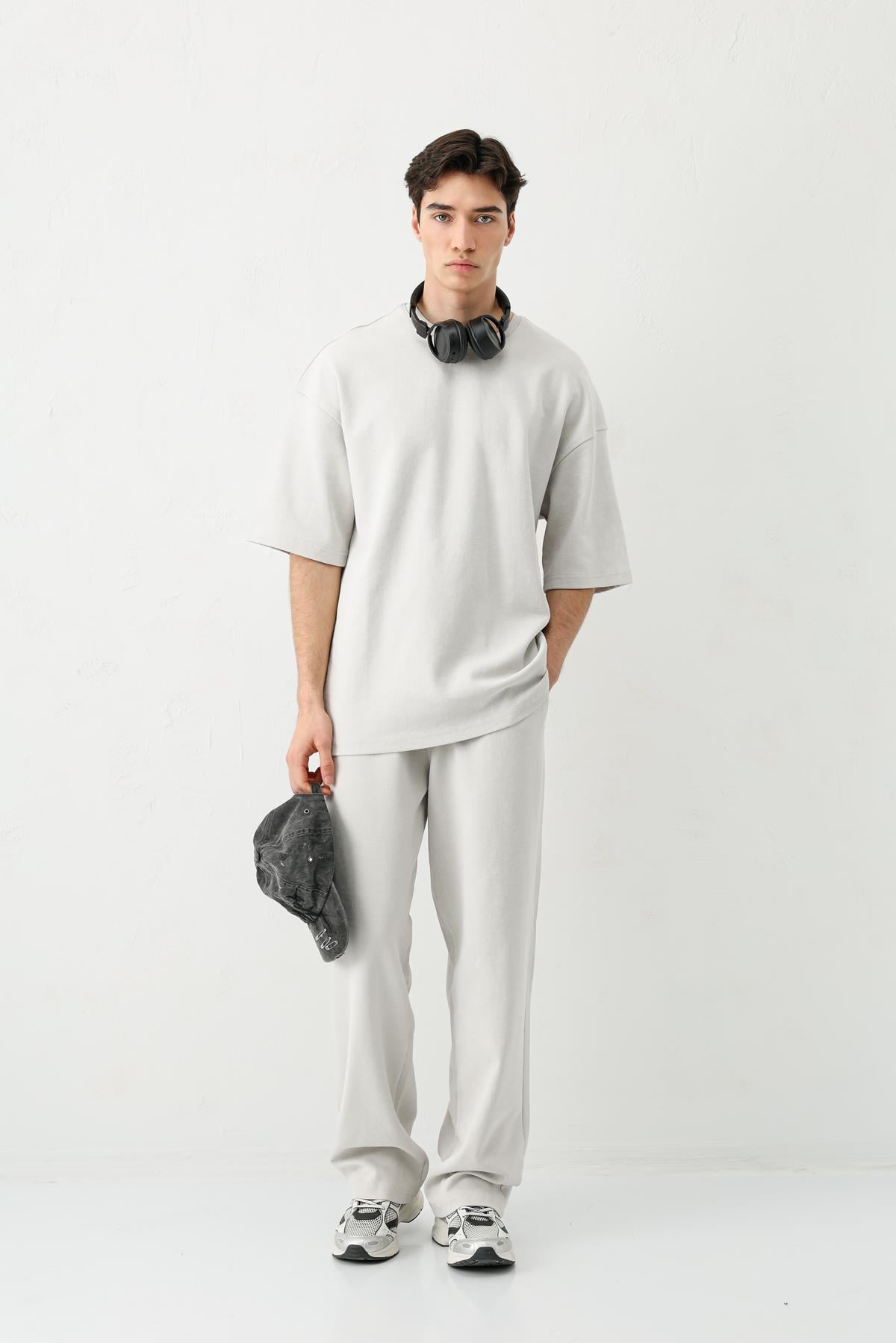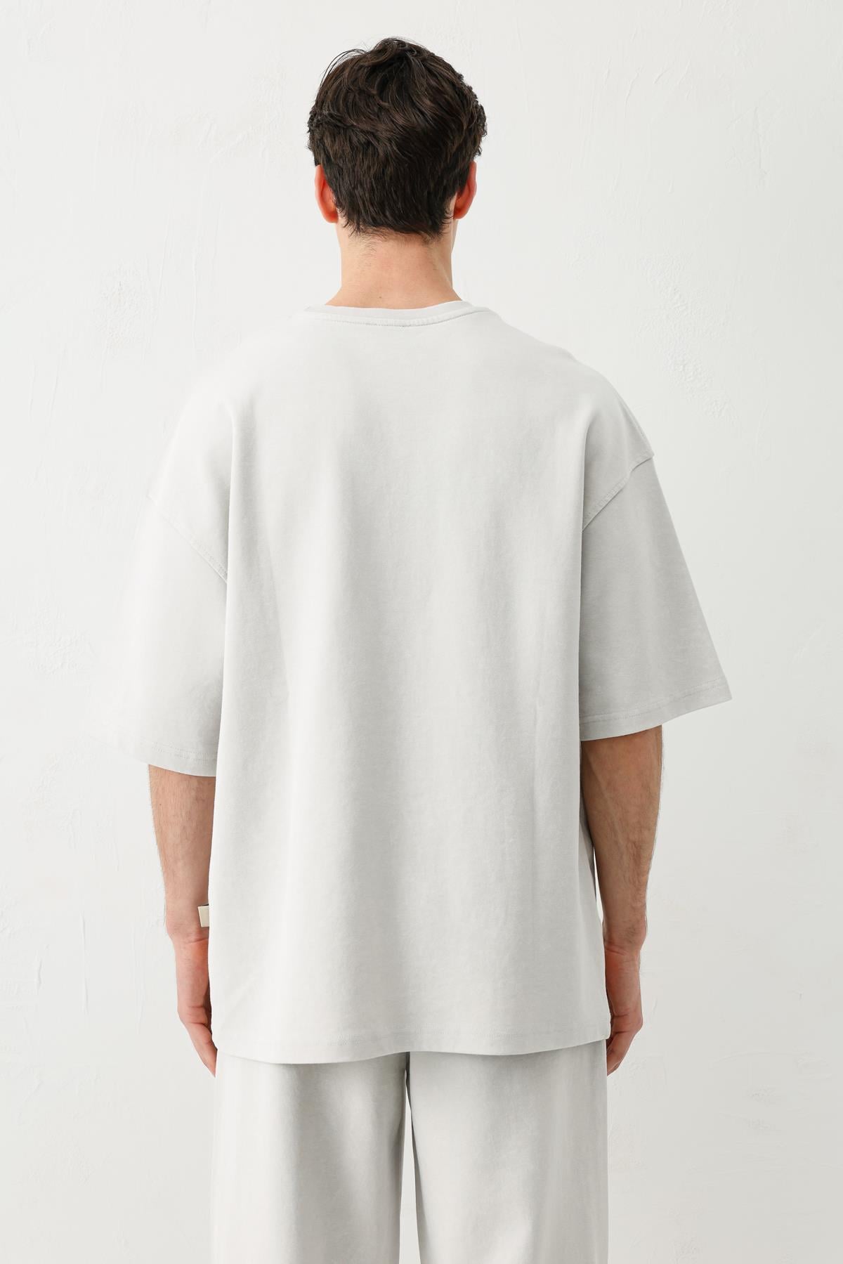 Kısa Kollu Yıkamalı Oversize Tişört Açık Gri (V70-136)
