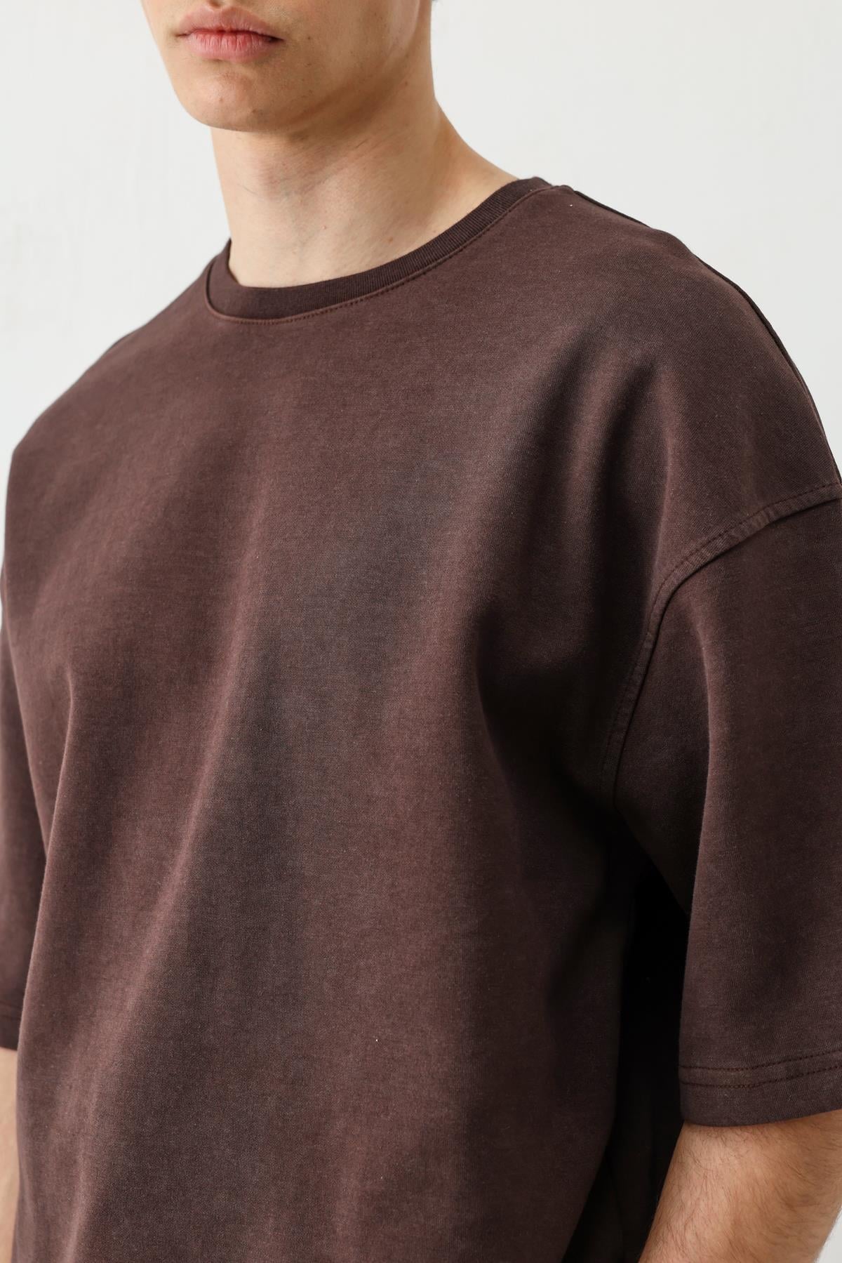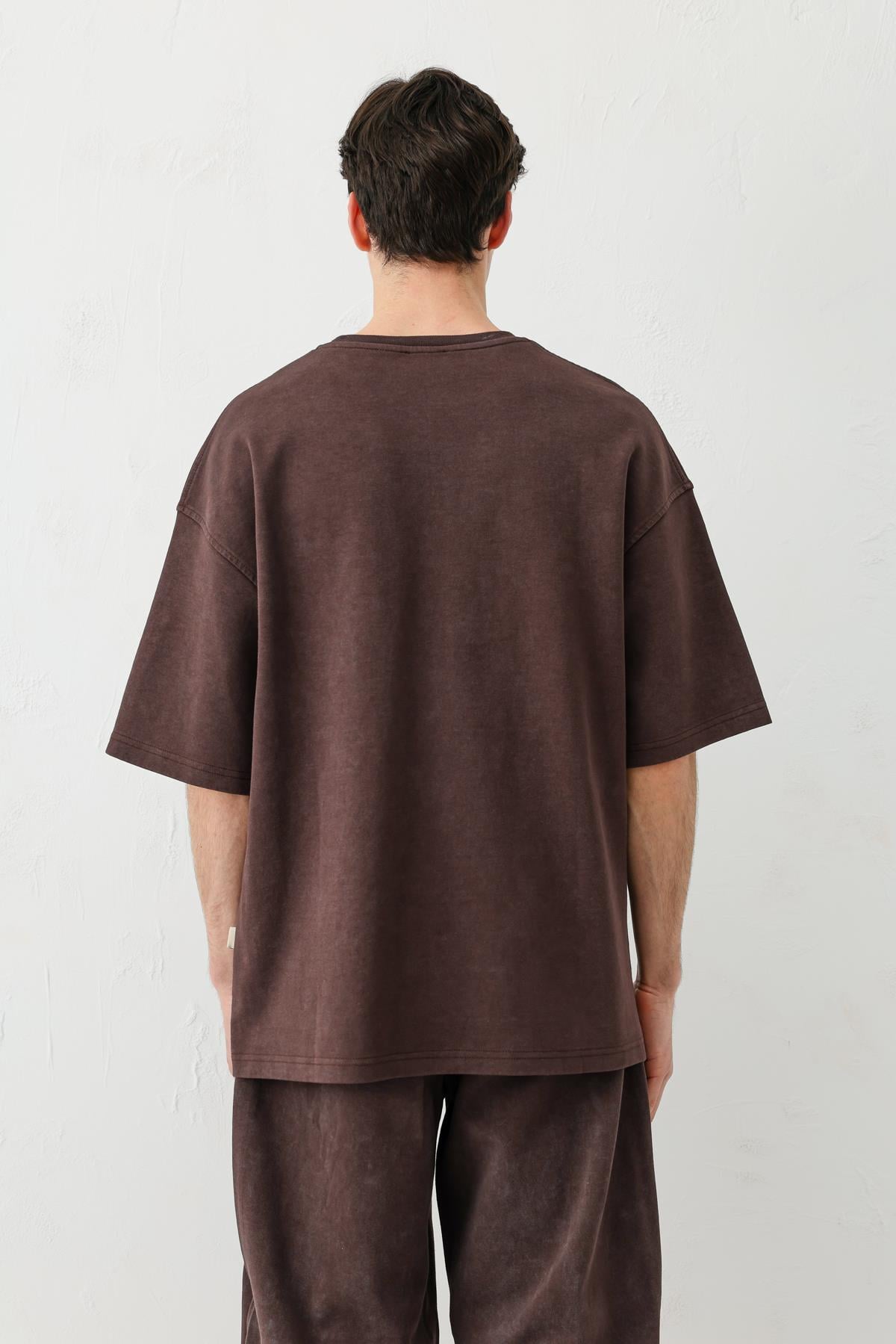 Kısa Kollu Yıkamalı Oversize Tişört Kahve (V70-136)