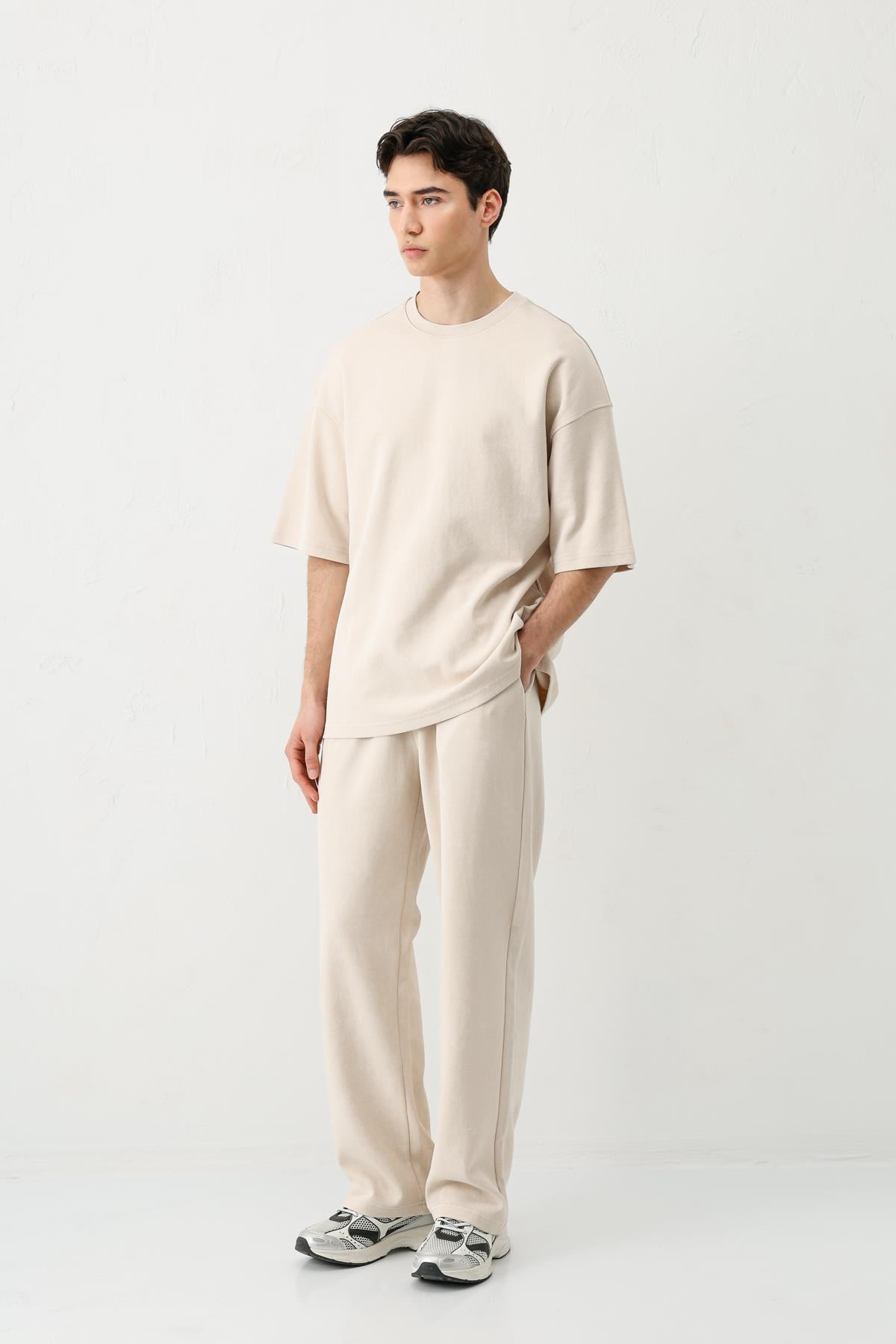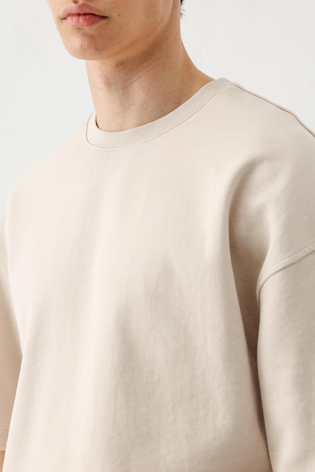 Kısa Kollu Yıkamalı Oversize Tişört Taş (V70-136)