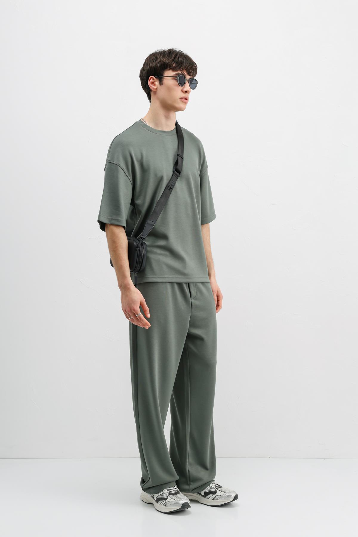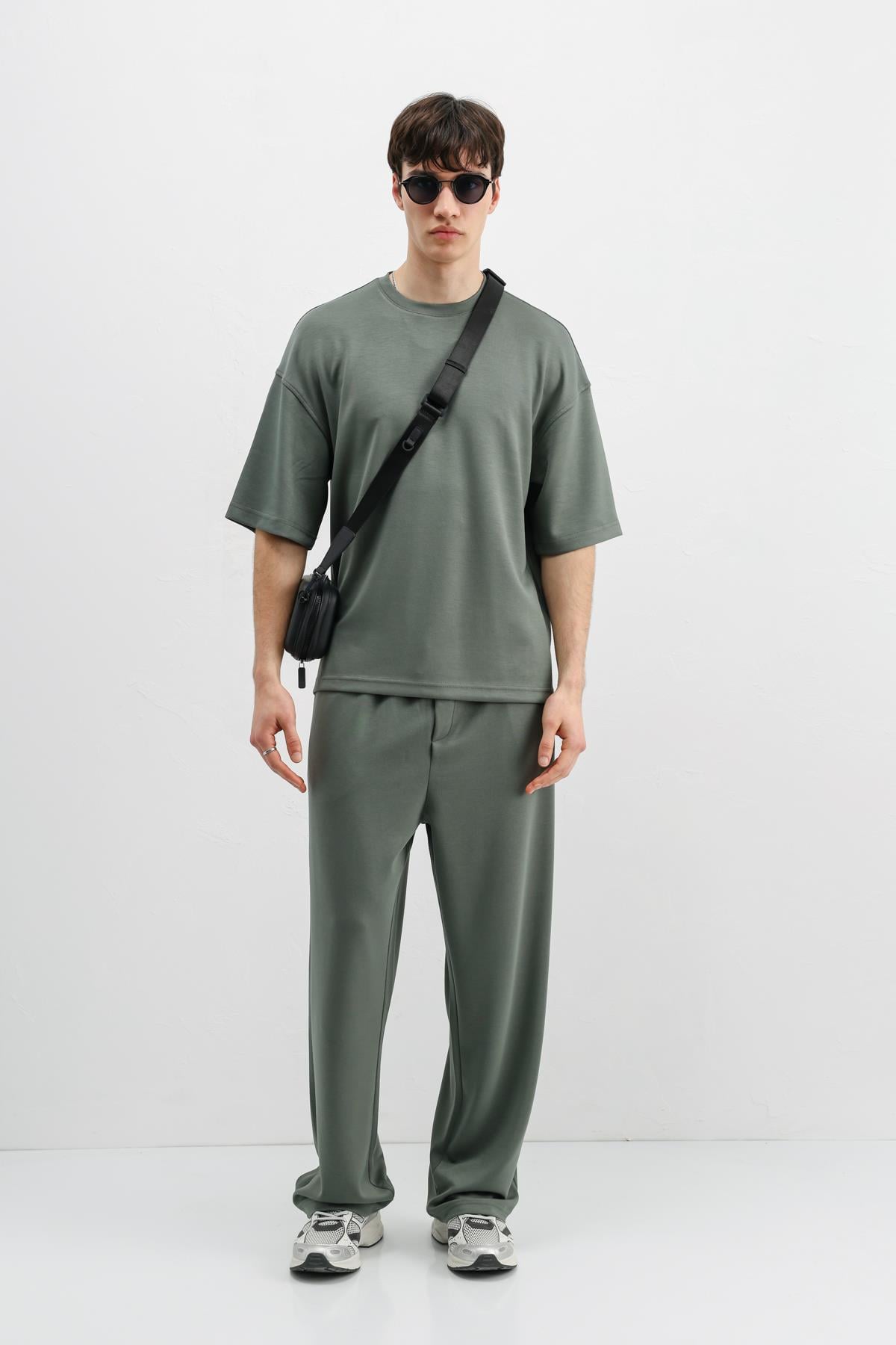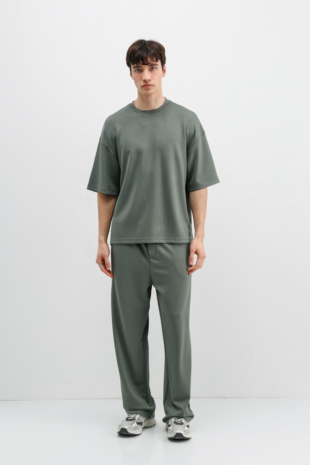 Modal Karışımlı Oversize Tişört Haki (V70-178)