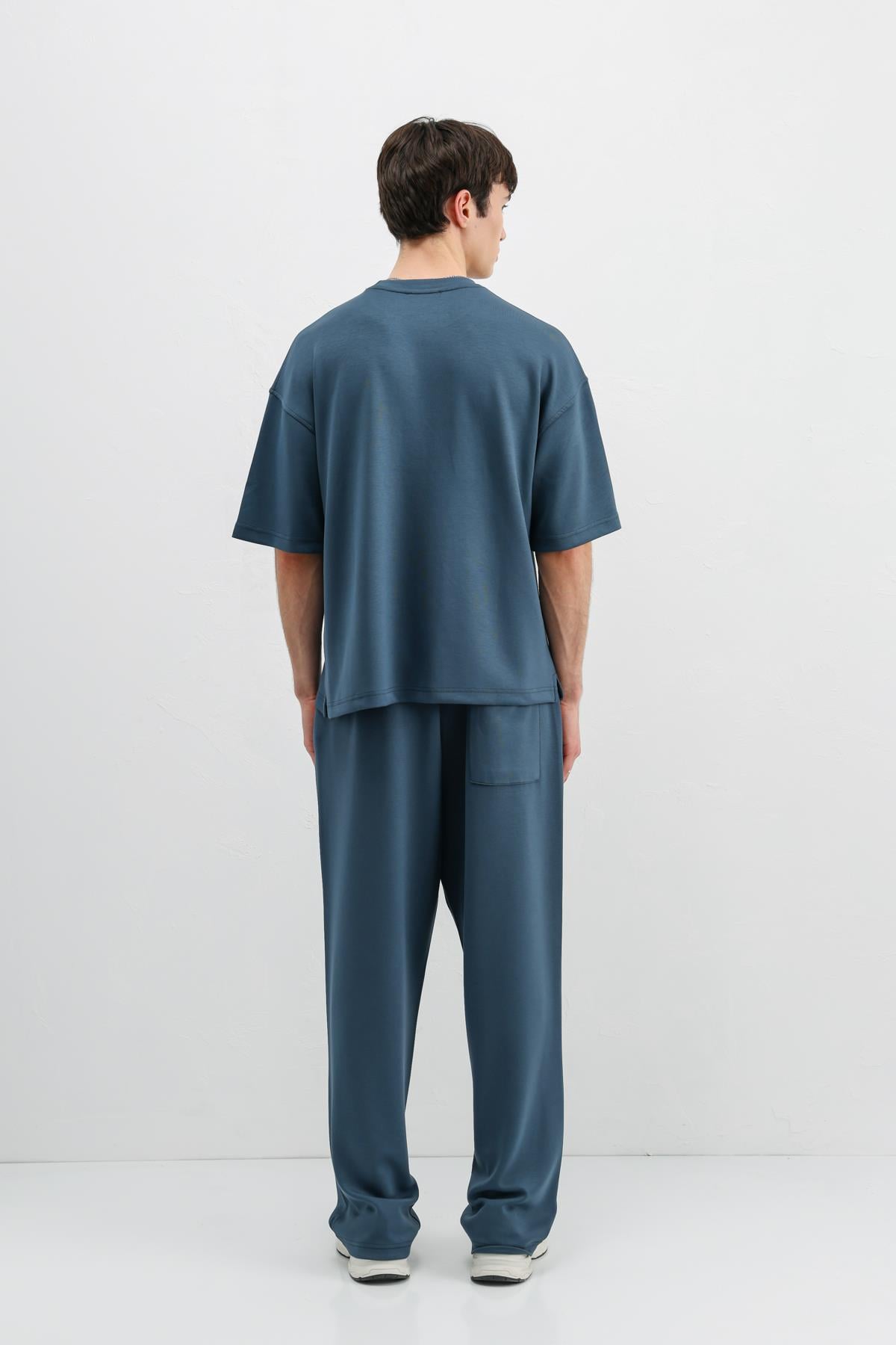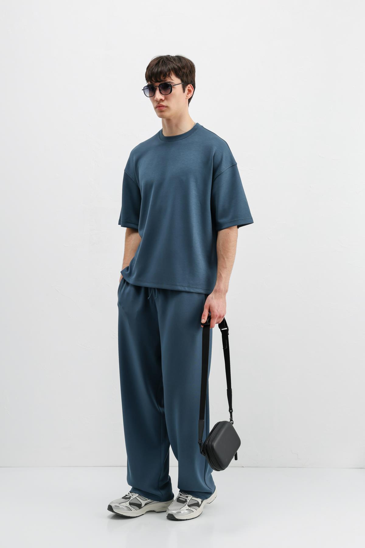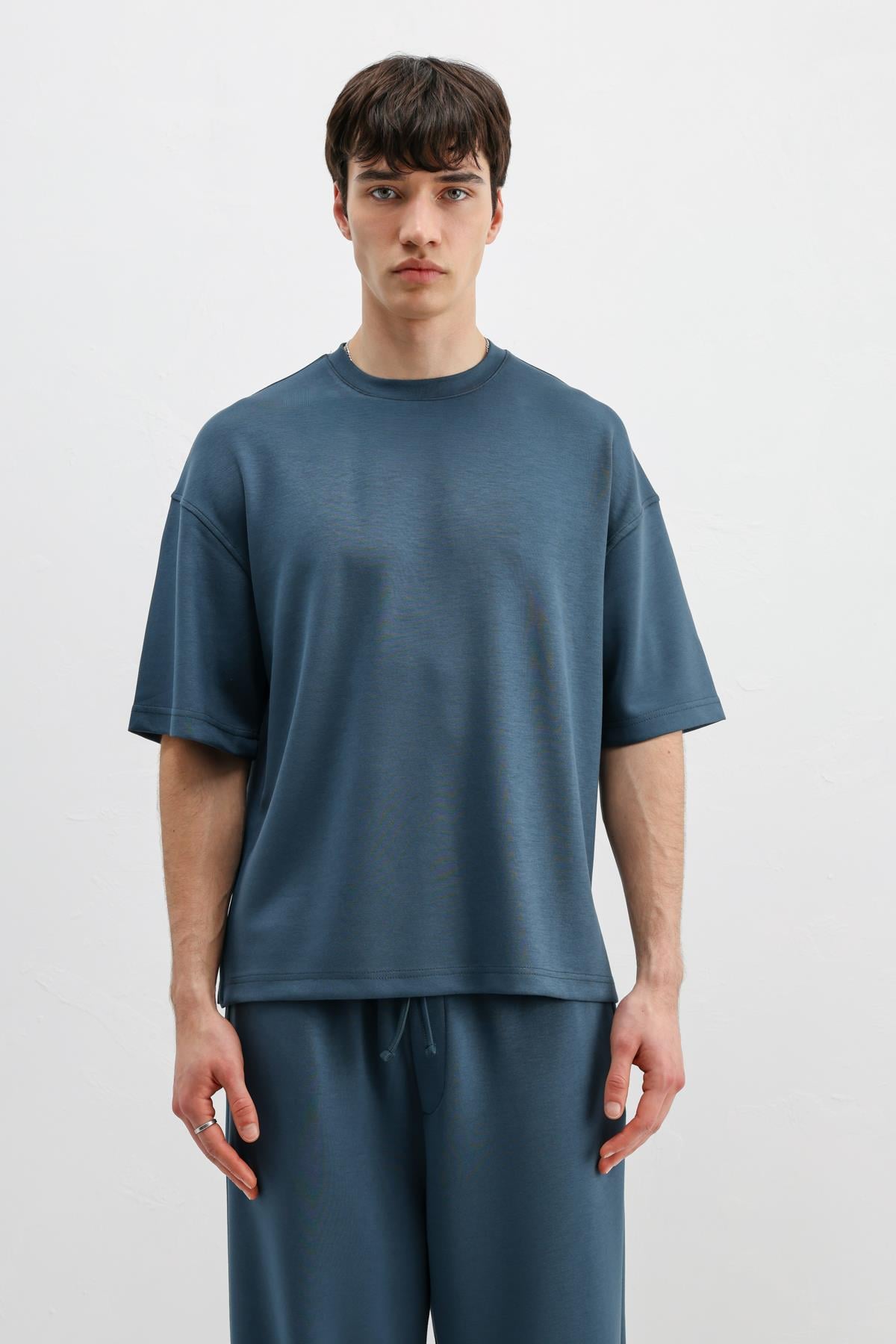 Modal Karışımlı Oversize Tişört İndigo (V70-178)