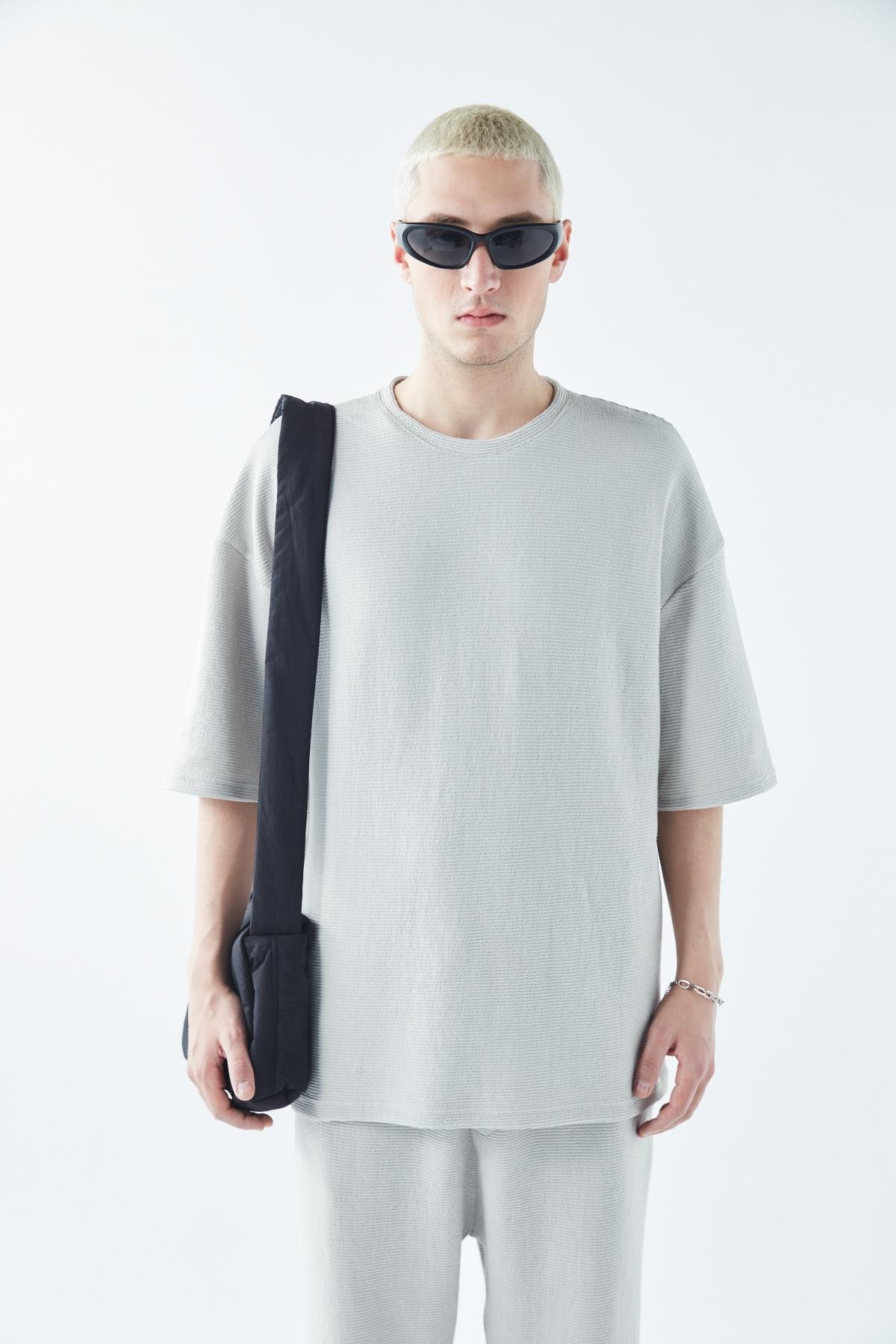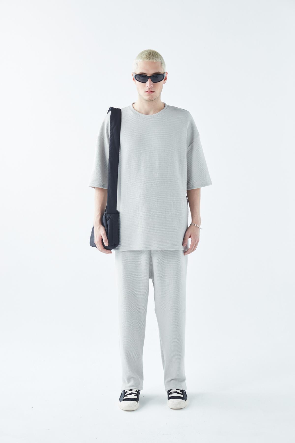 Oversize Basıc Triko Eşofman Takım Gri (40-734)