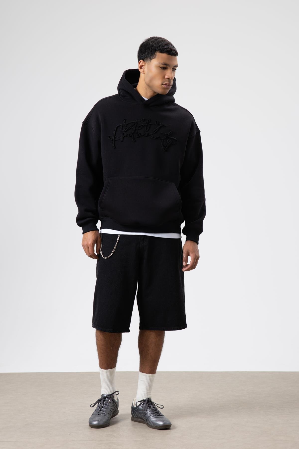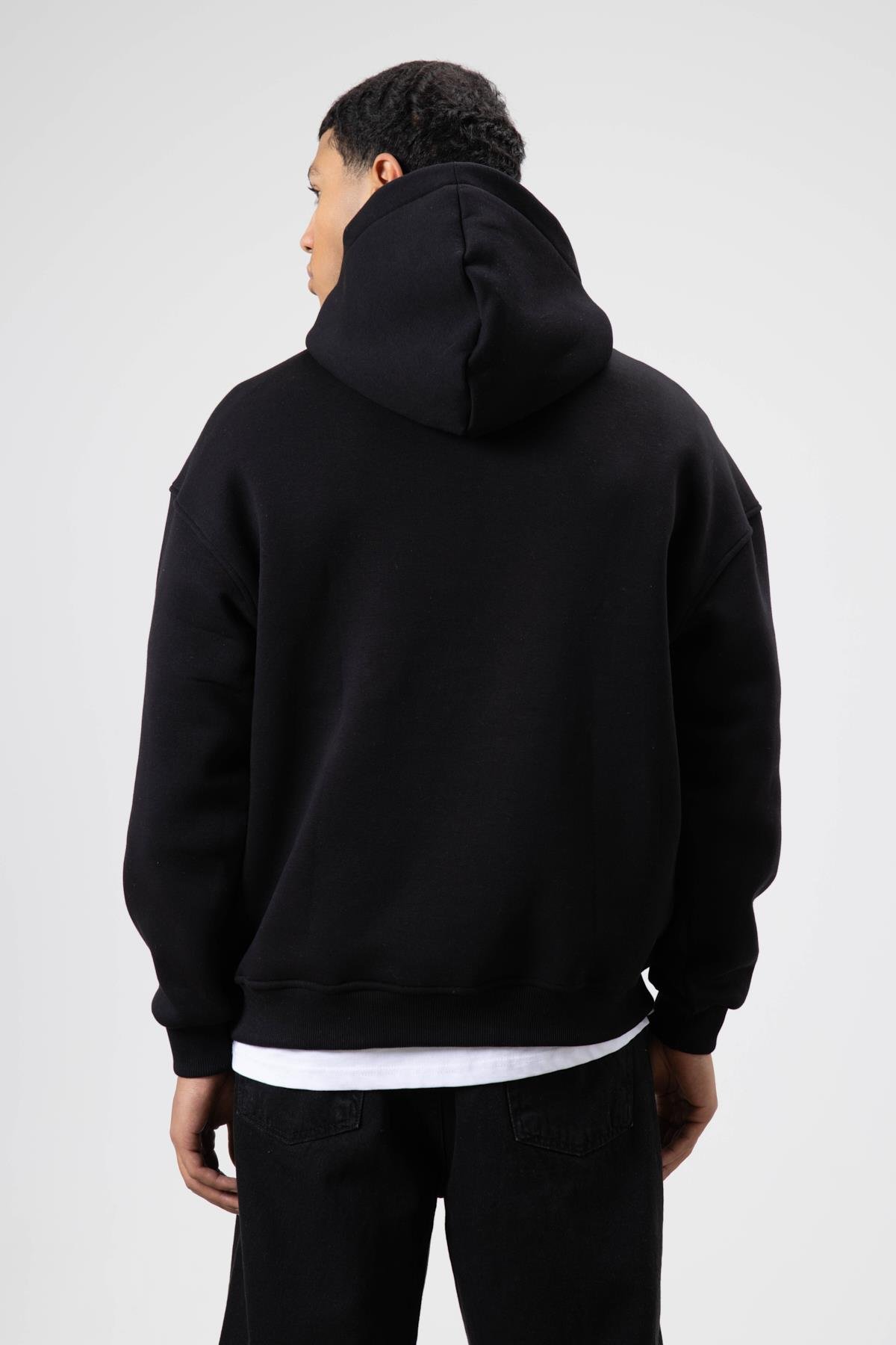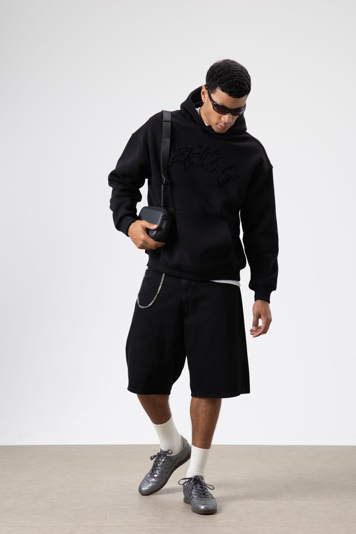 Oversize Baskılı Kapüşonlu Sweatshirt Siyah (V70-117)