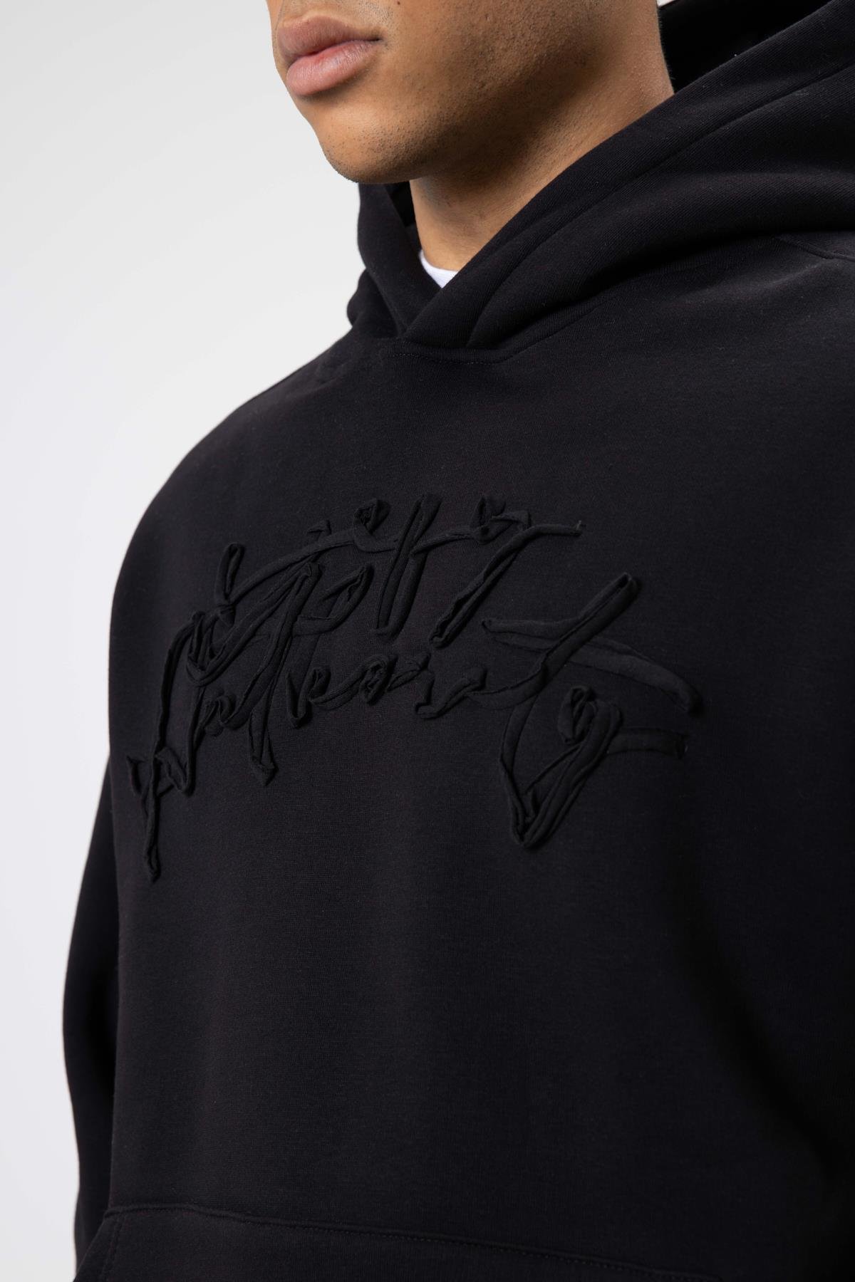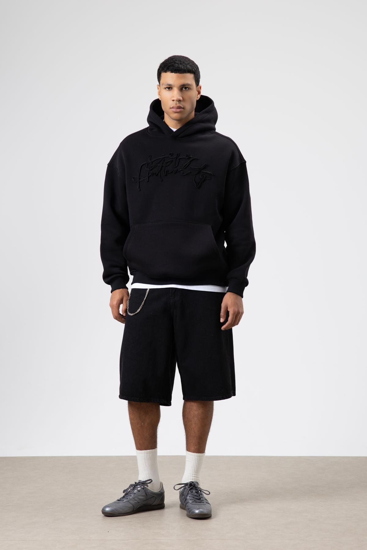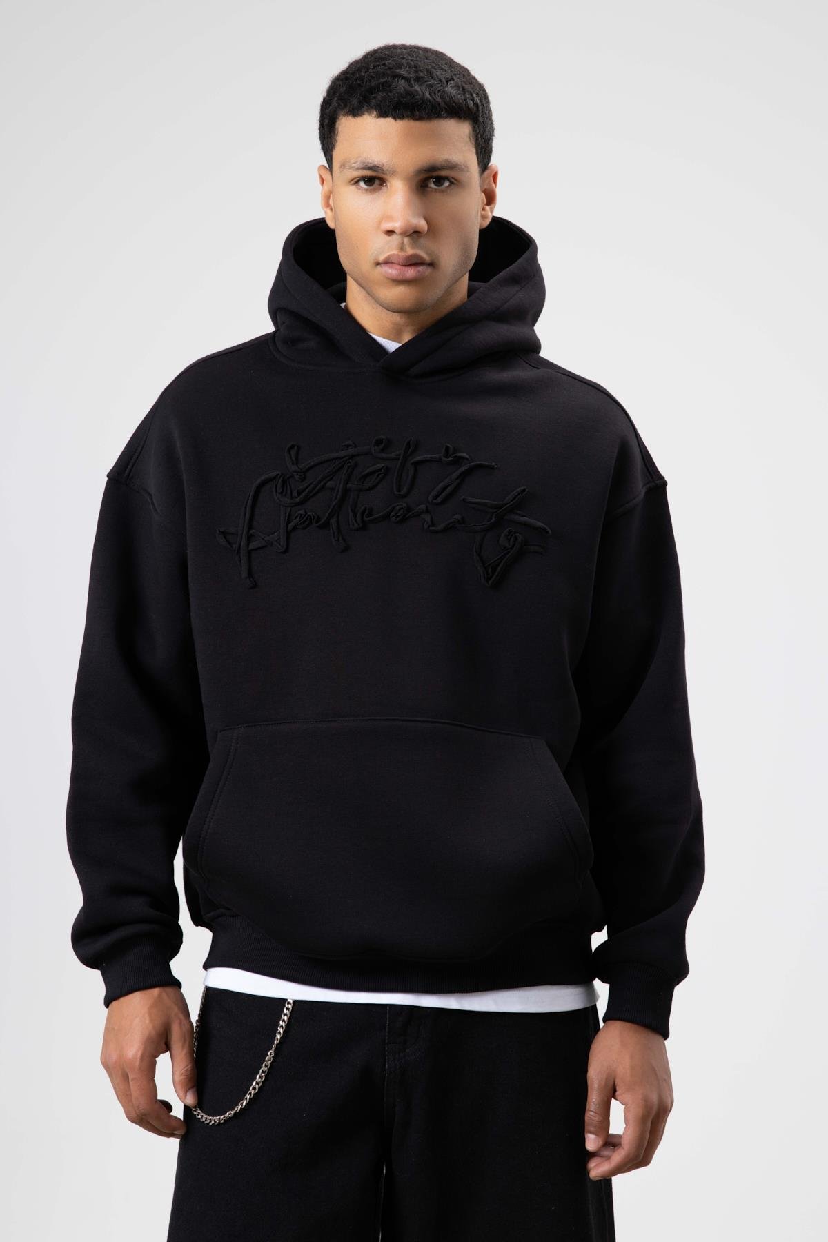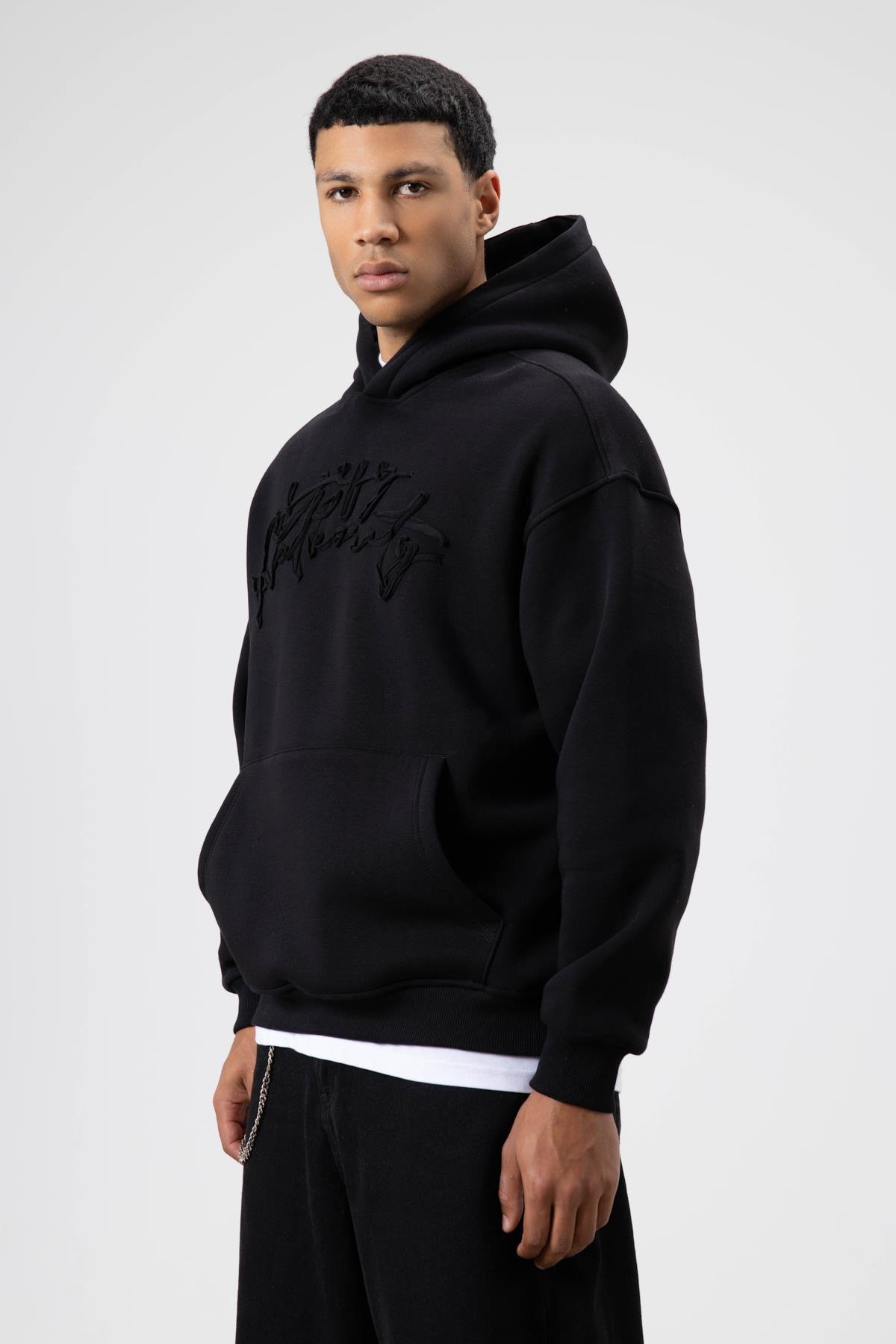 Oversize Baskılı Kapüşonlu Sweatshirt Siyah (V70-117)