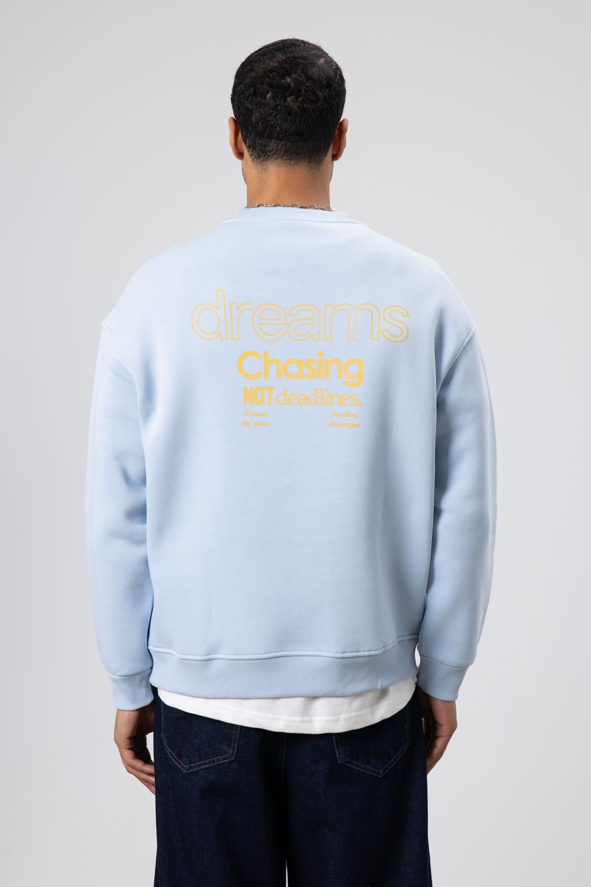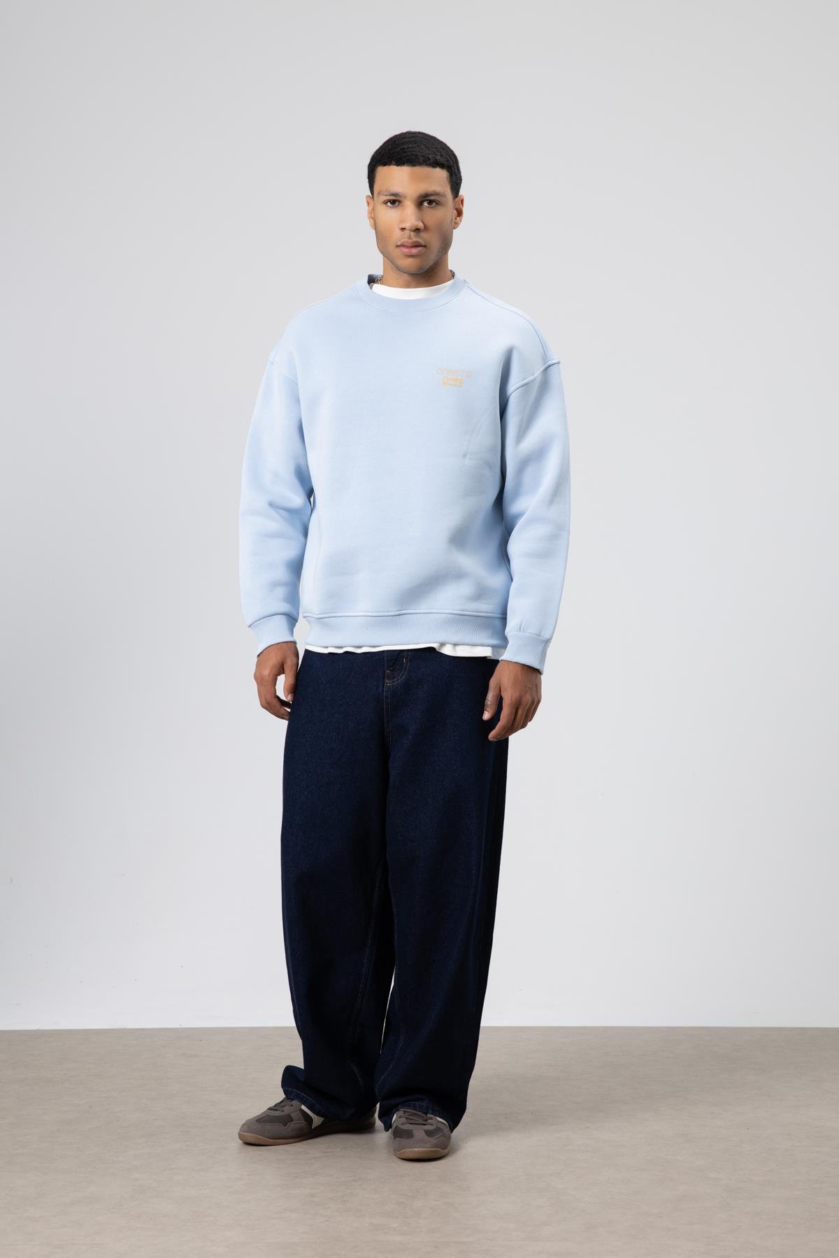 Oversize Bisiklet Yaka Baskılı Sweatshirt Bebe Mavi (V70-95)