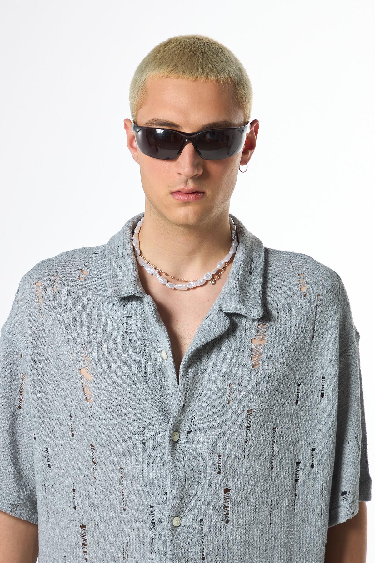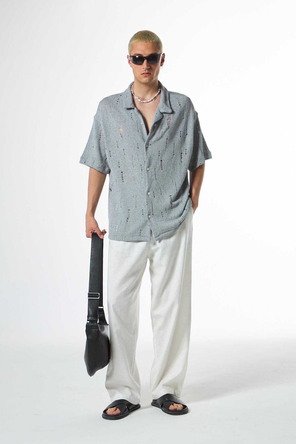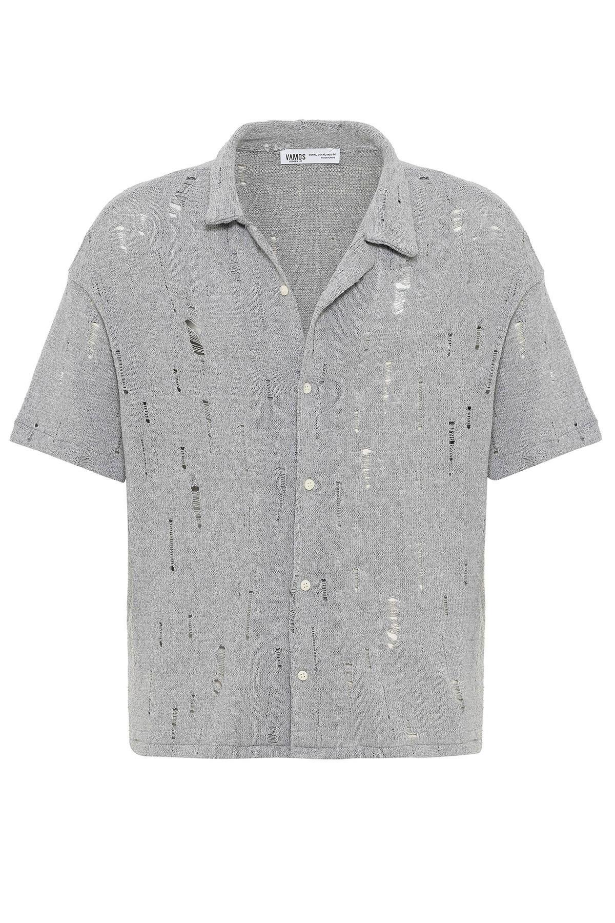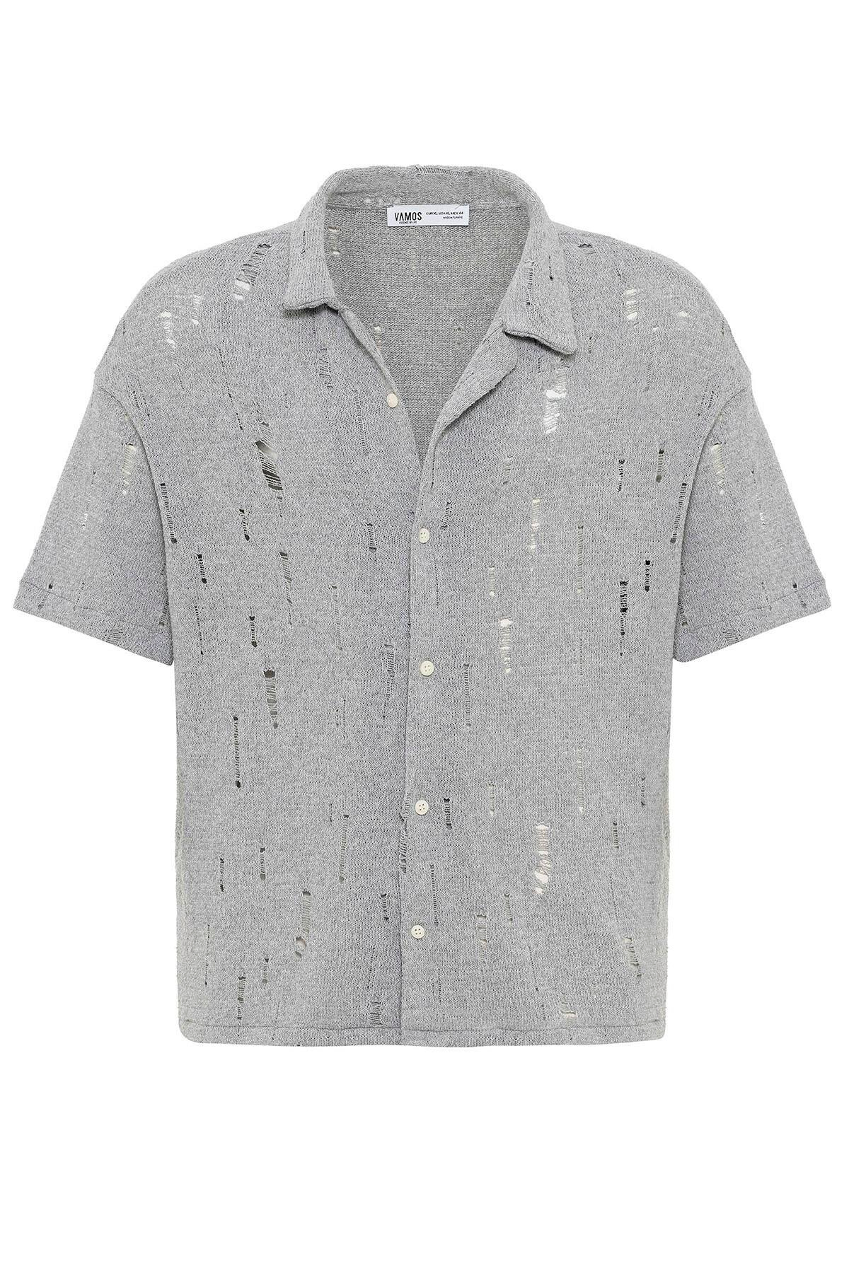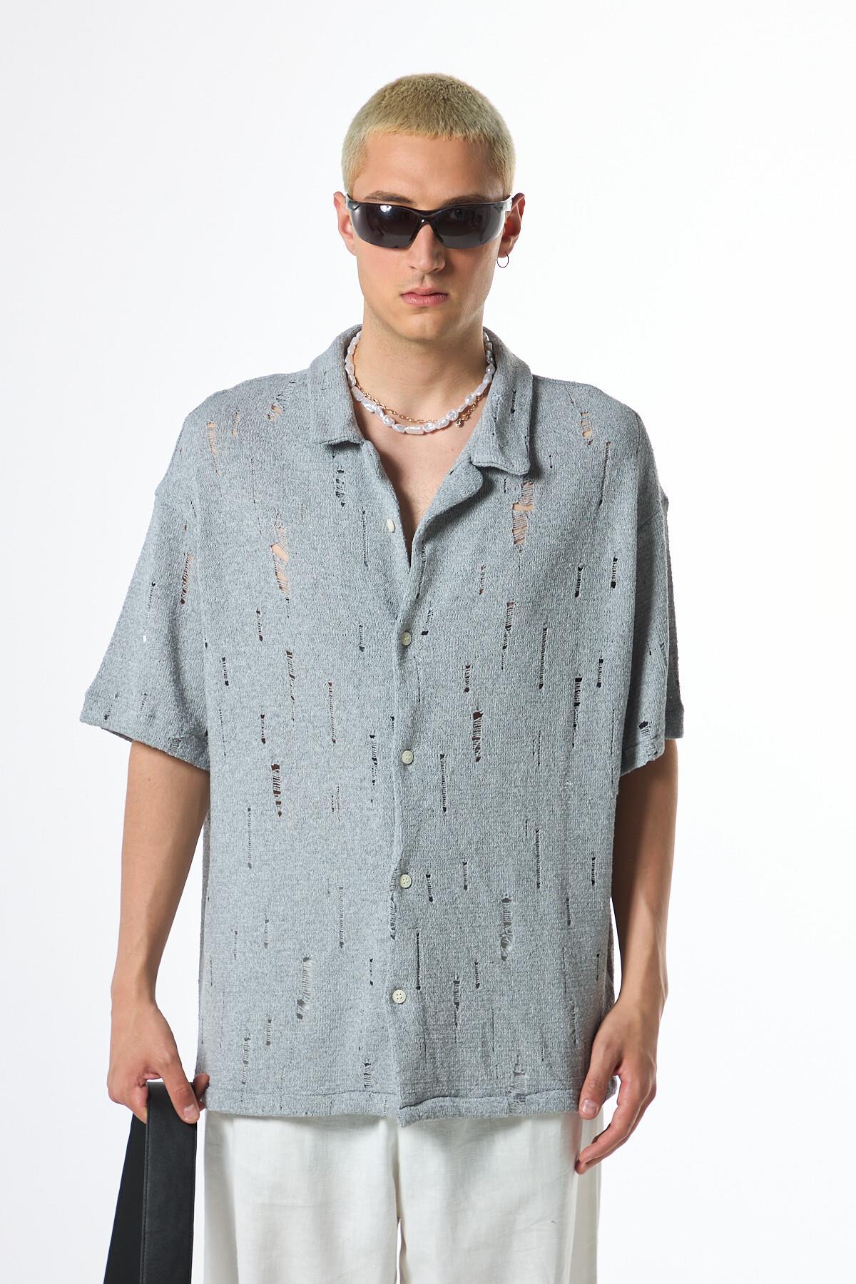 Oversize Deliklı Triko Gömlek Gri (40-507)