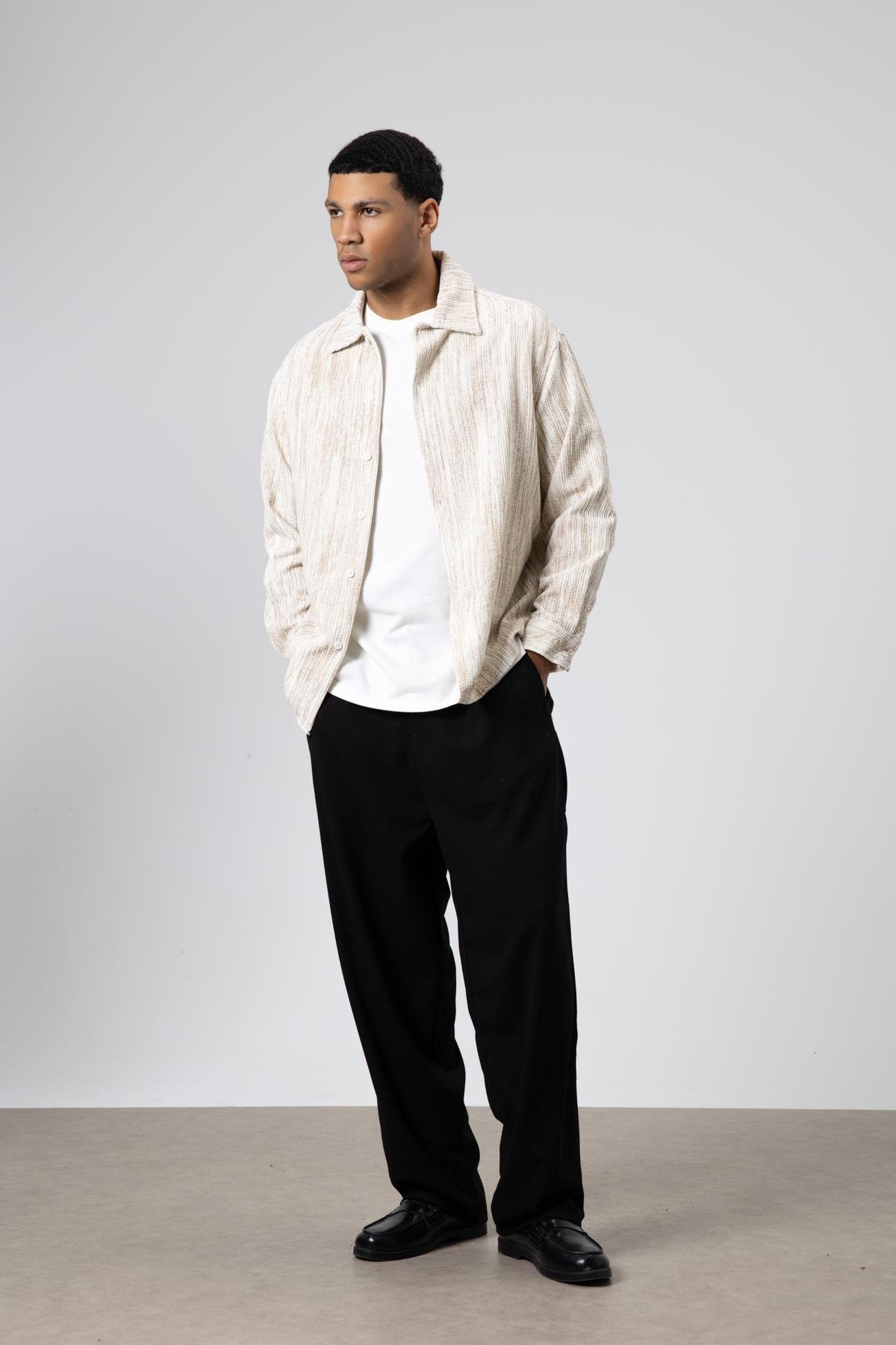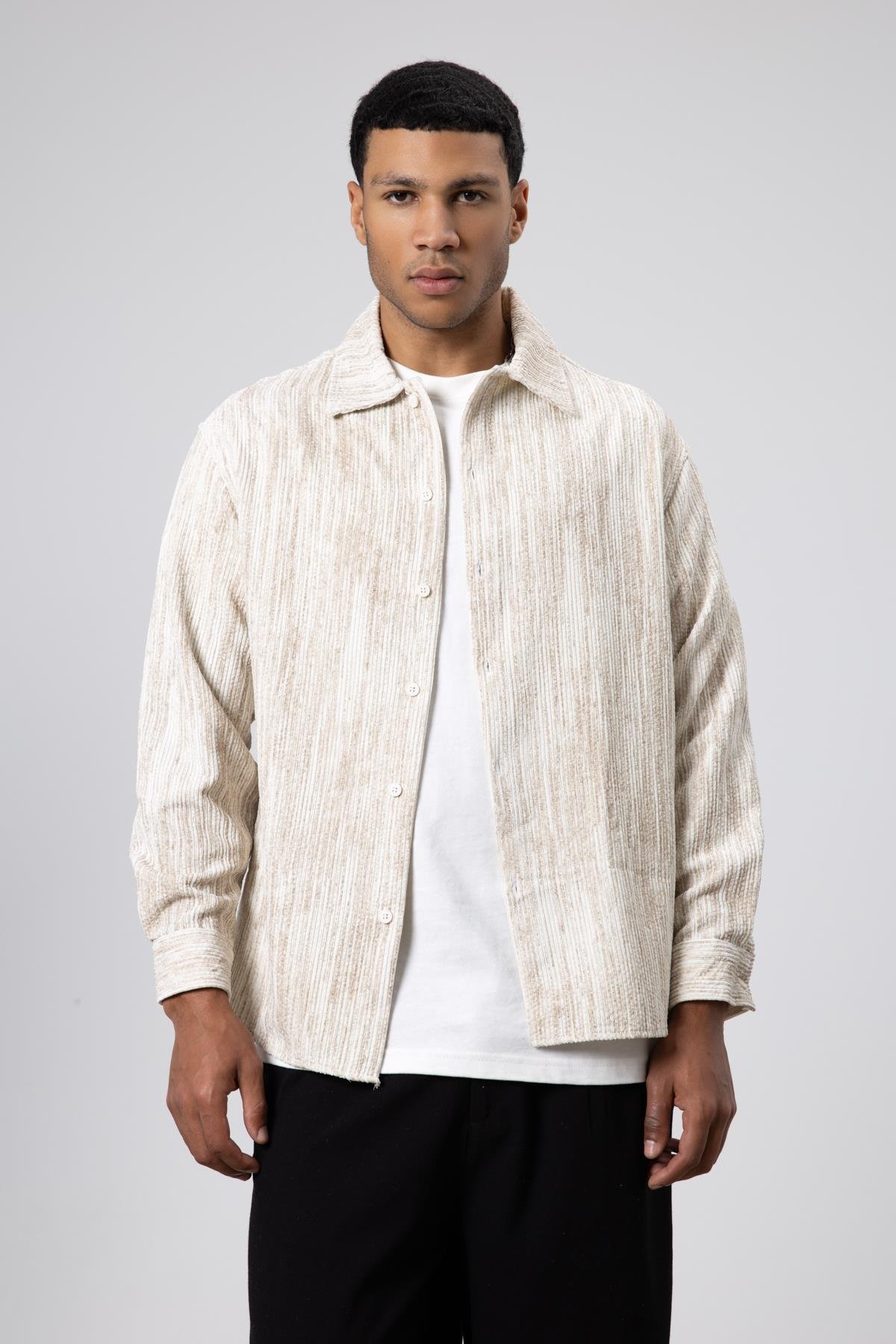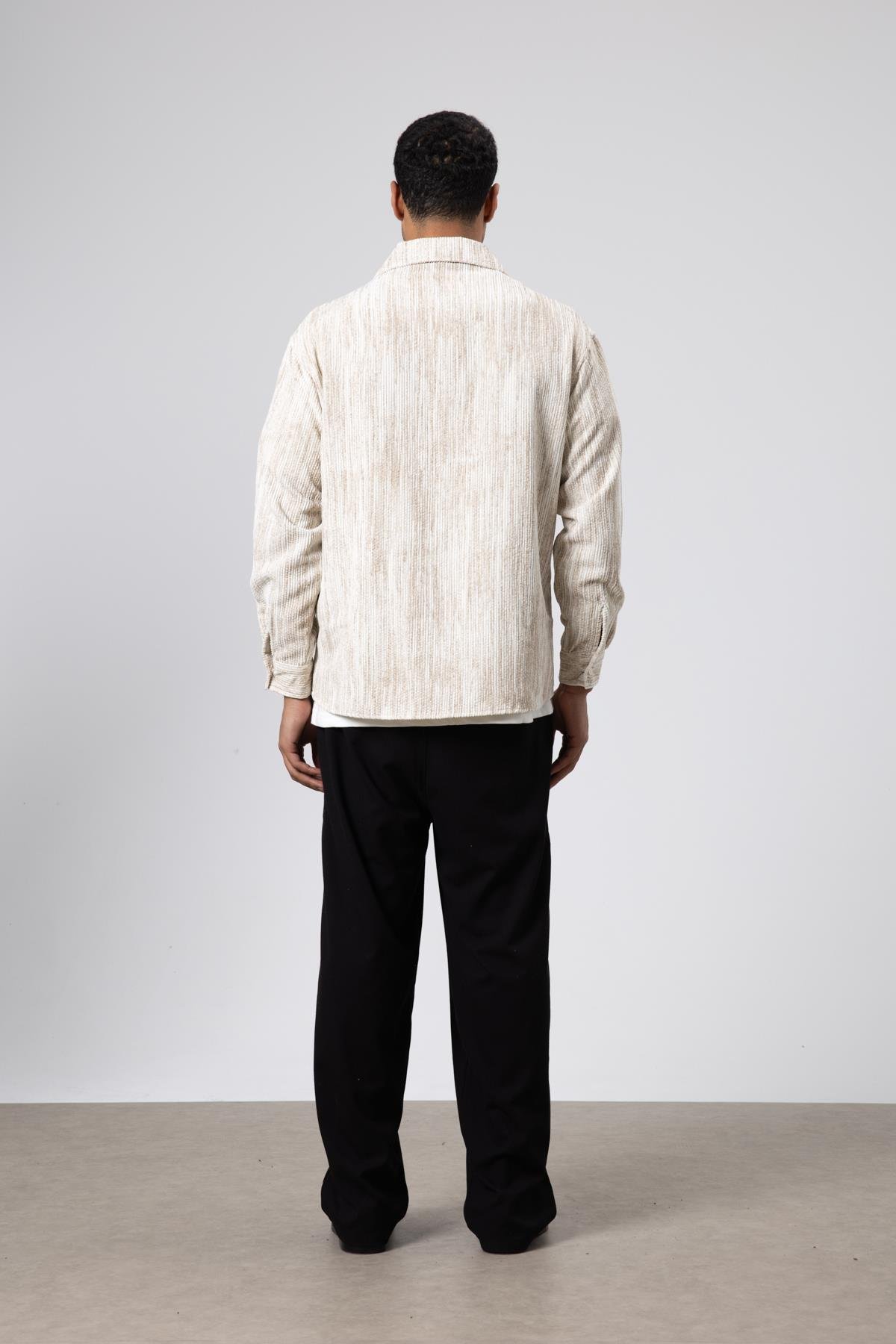Oversize Dokulu Gömlek Ekru (V40-78)