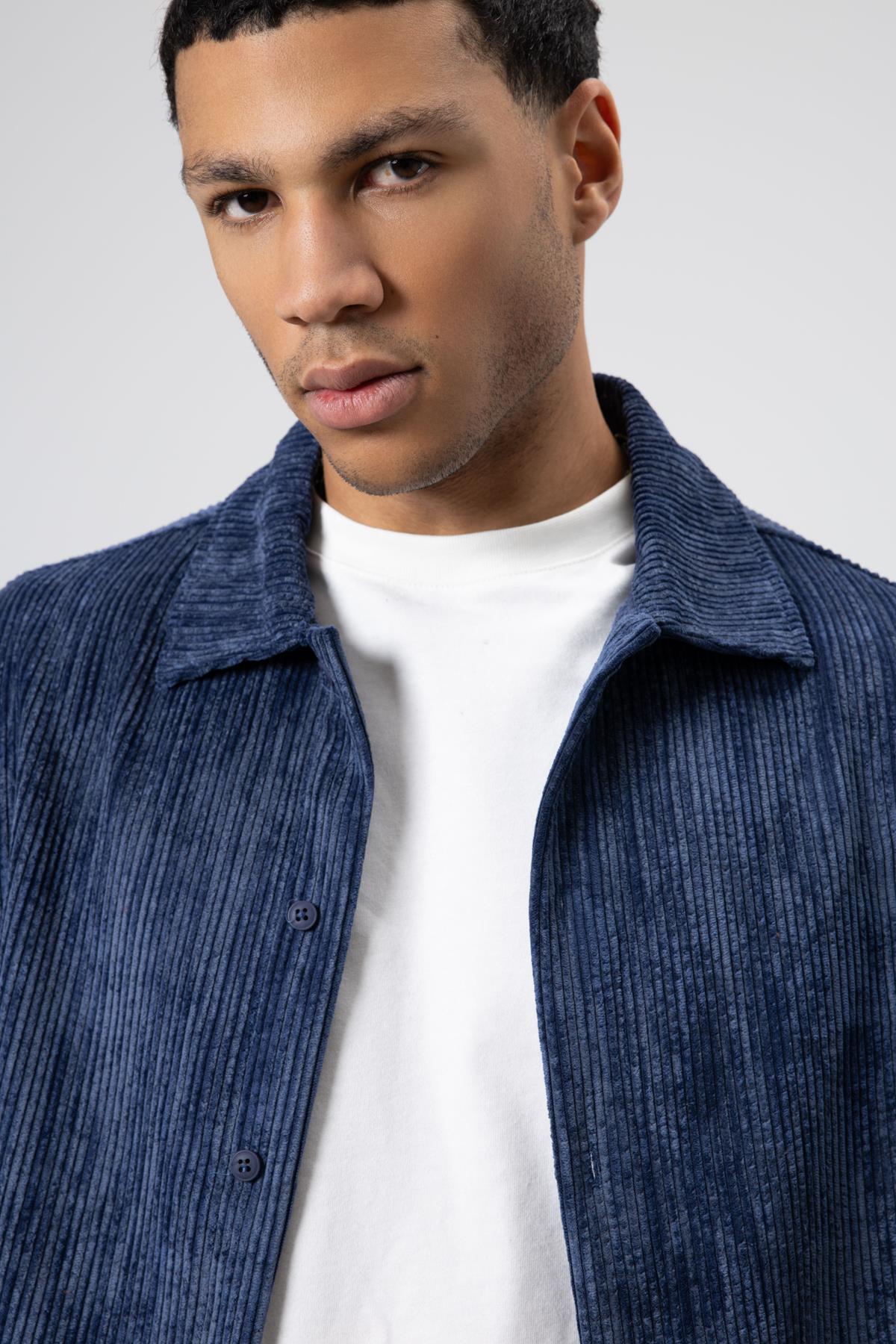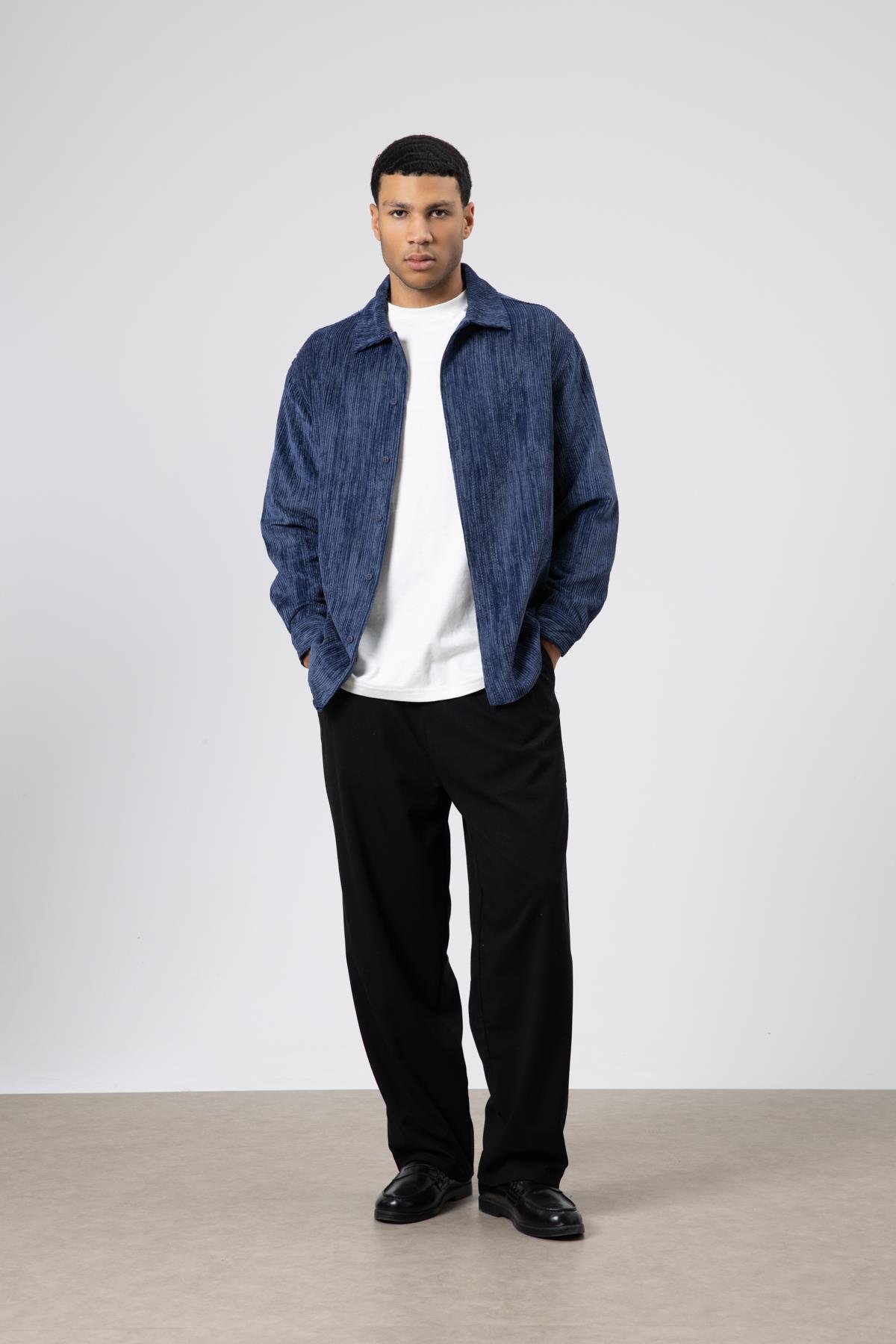 Oversize Dokulu Gömlek Lacivert (V40-78)