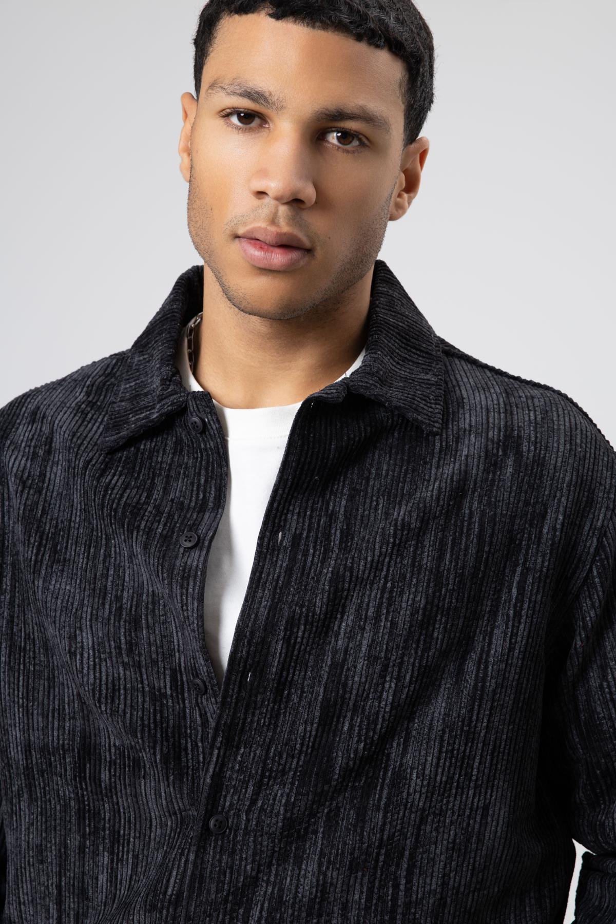 Oversize Dokulu Gömlek Siyah (V40-78)
