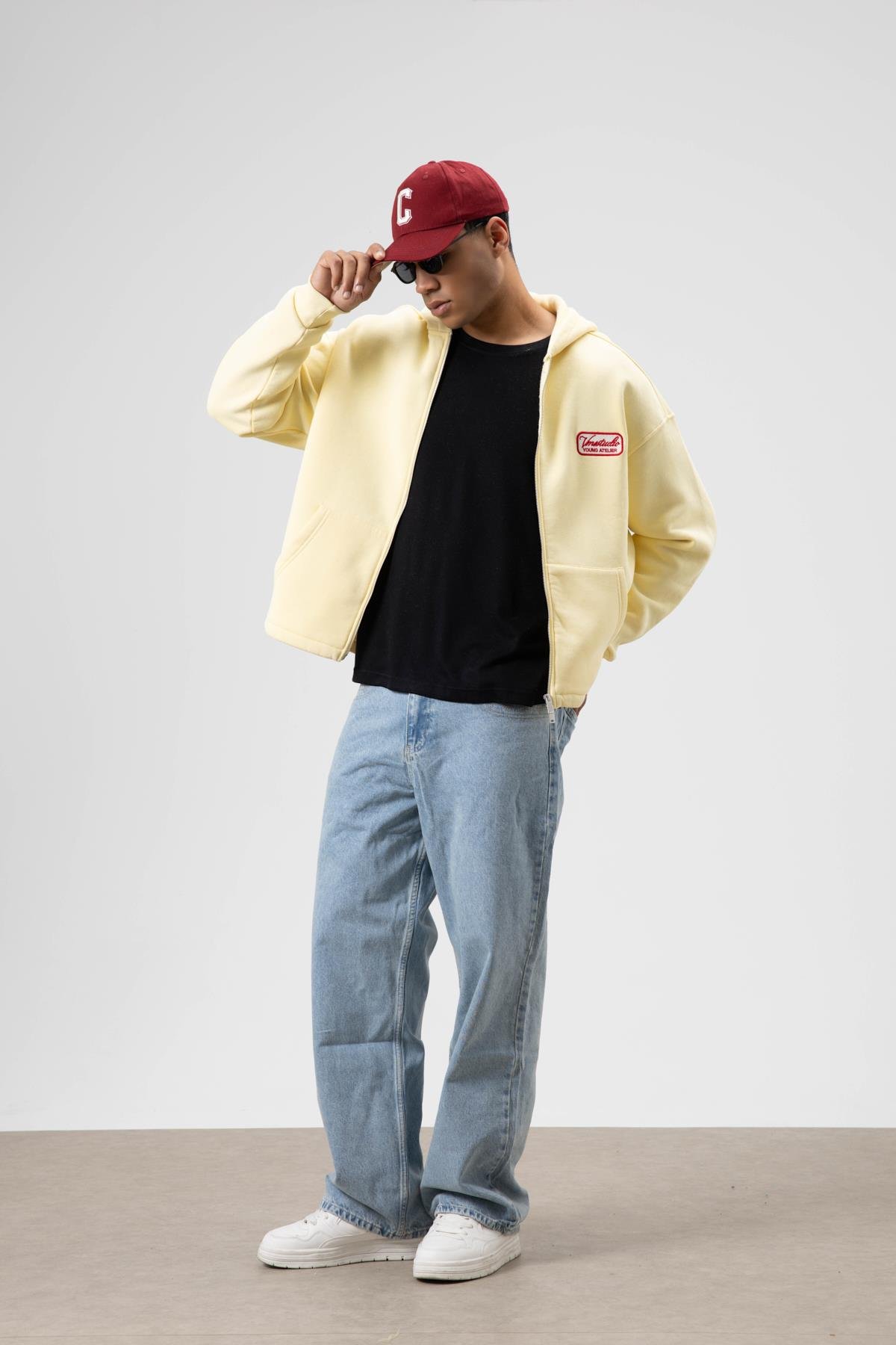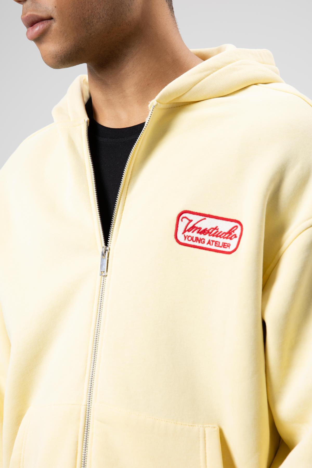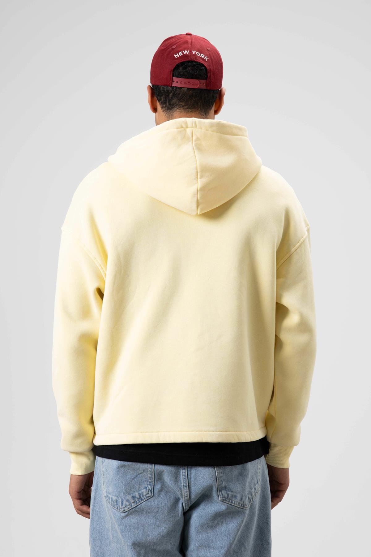 Oversize Fermuarlı Kapüşonlu Sweatshirt Sarı (V70-109)
