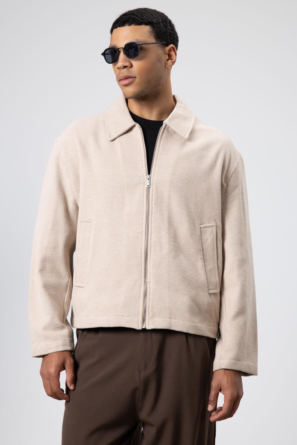 Oversize Fermuarlı Kaşe Ceket Bej (V50-12)