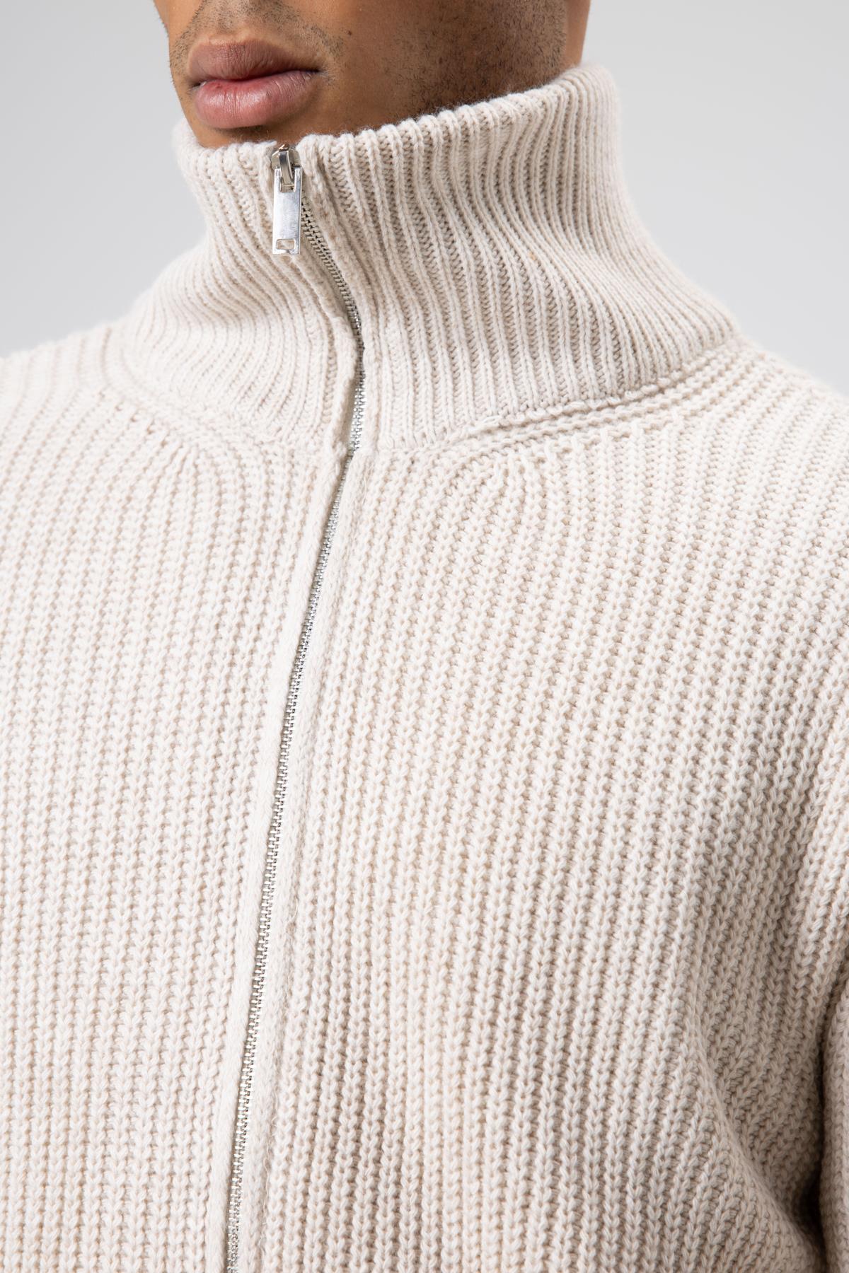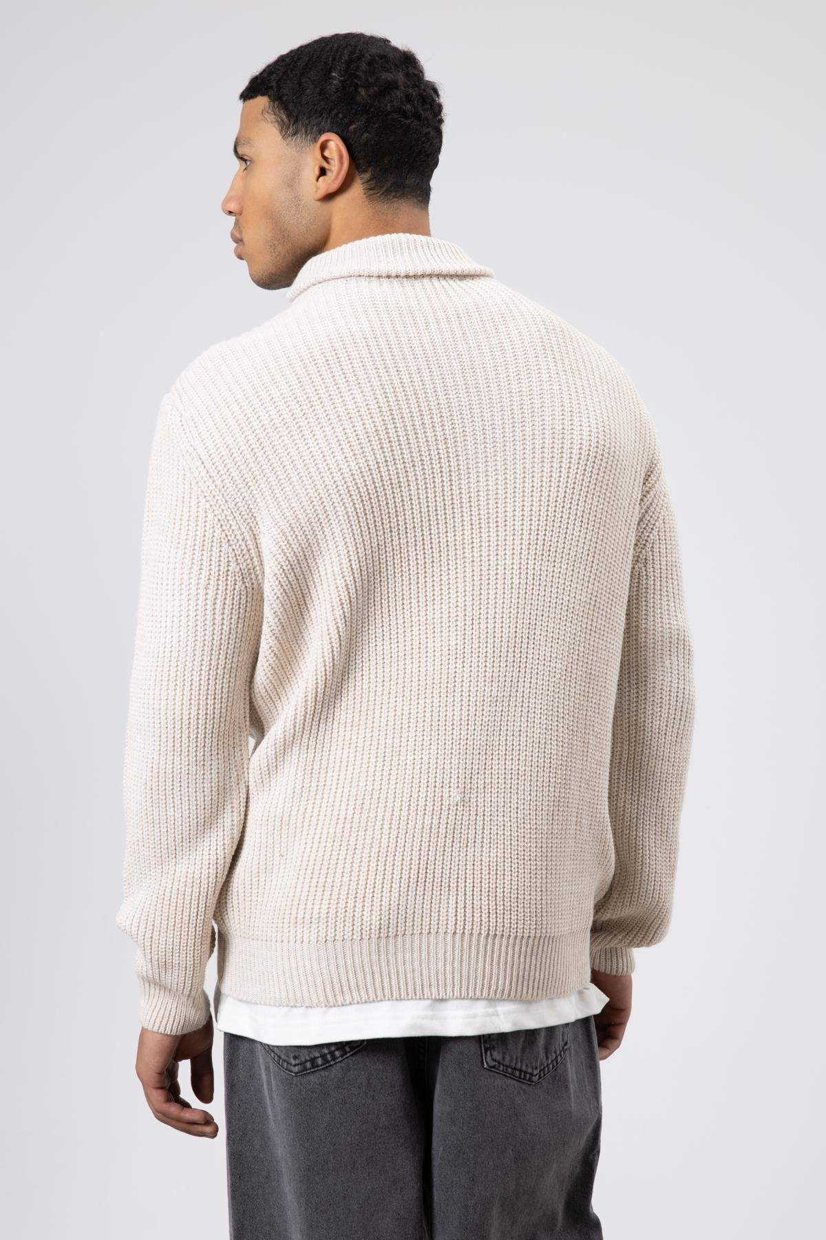 Oversize Fermuarlı Triko Hırka Açık Taş (V60-14)