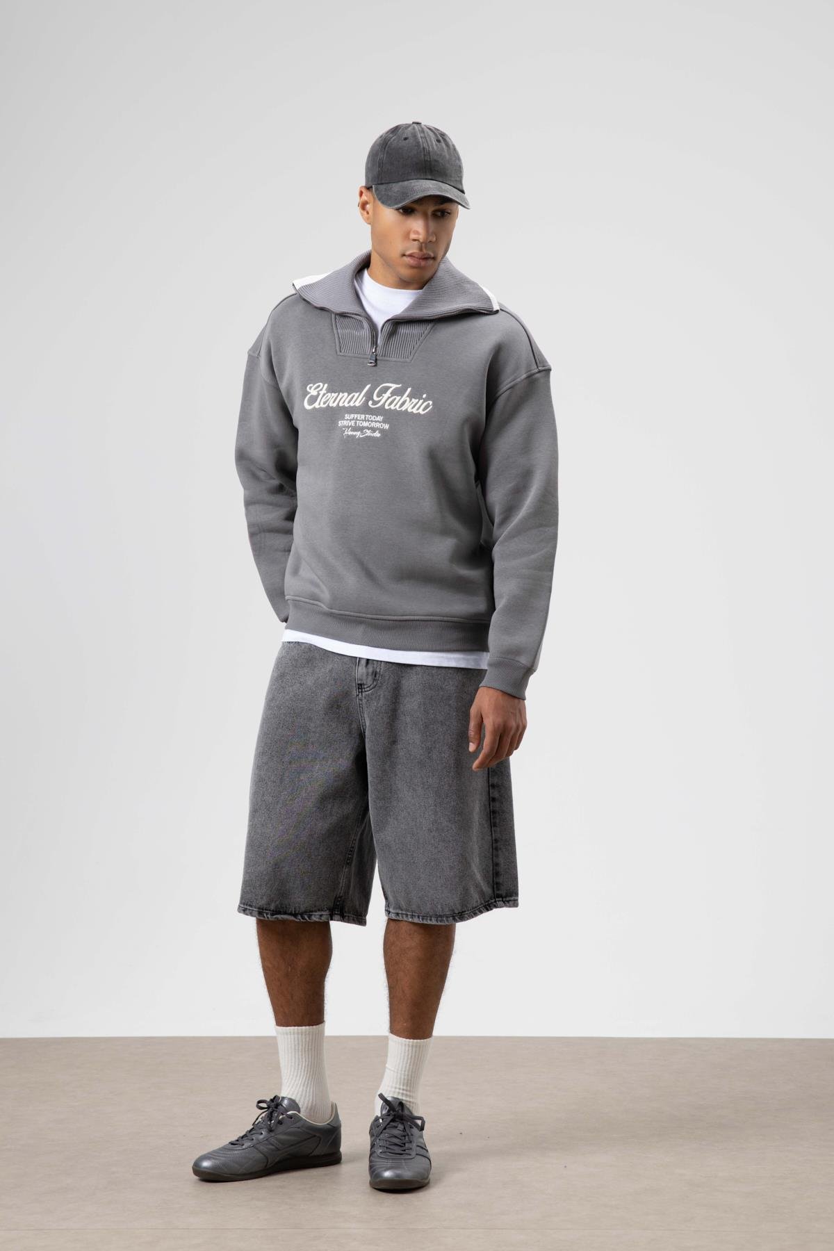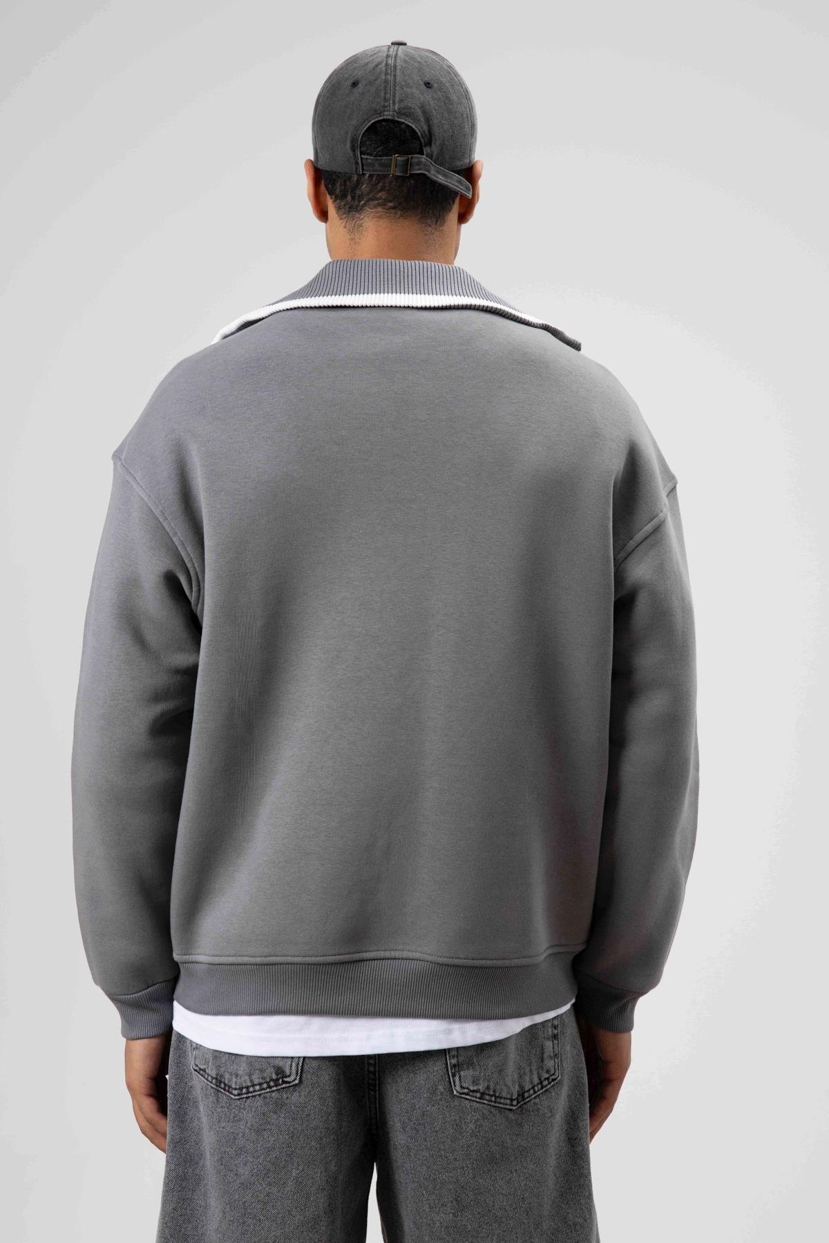 Oversize Fermuarlı Yaka Sweatshirt Füme (V70-103)