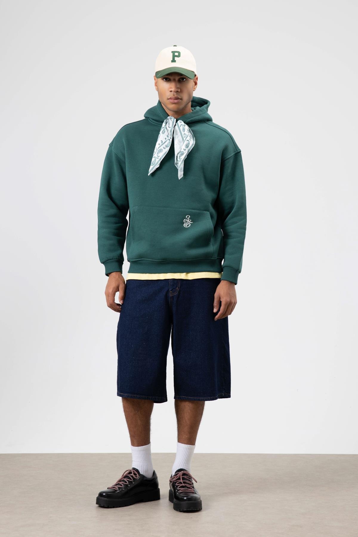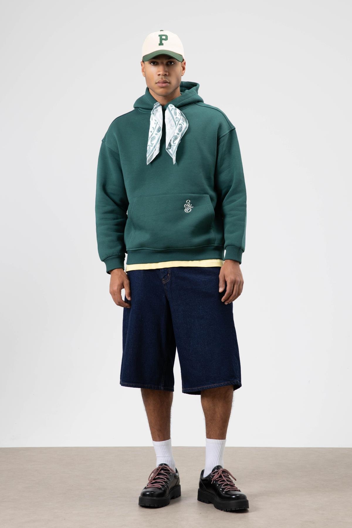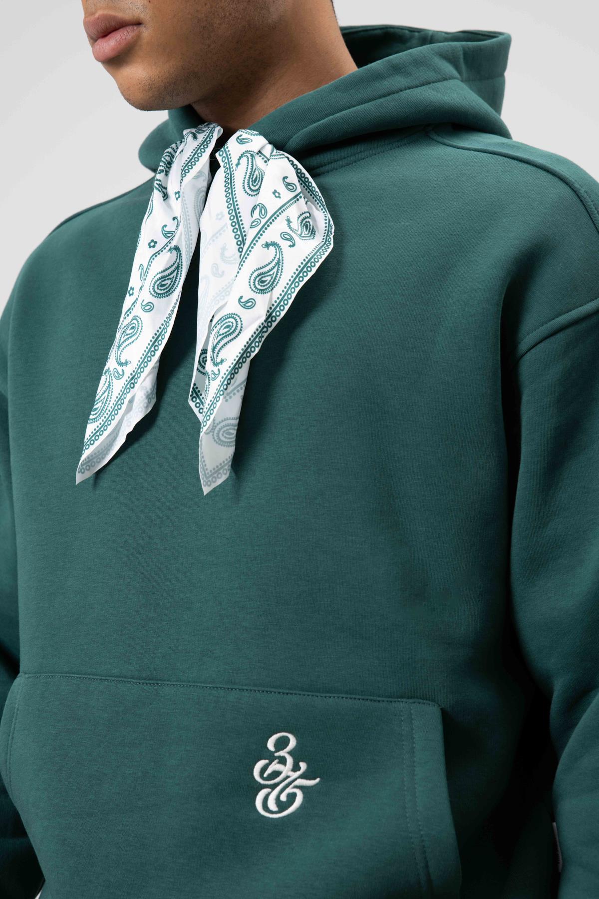 Oversize Fular Detaylı Kapüşonlu Sweatshirt Nefti (V70-90)
