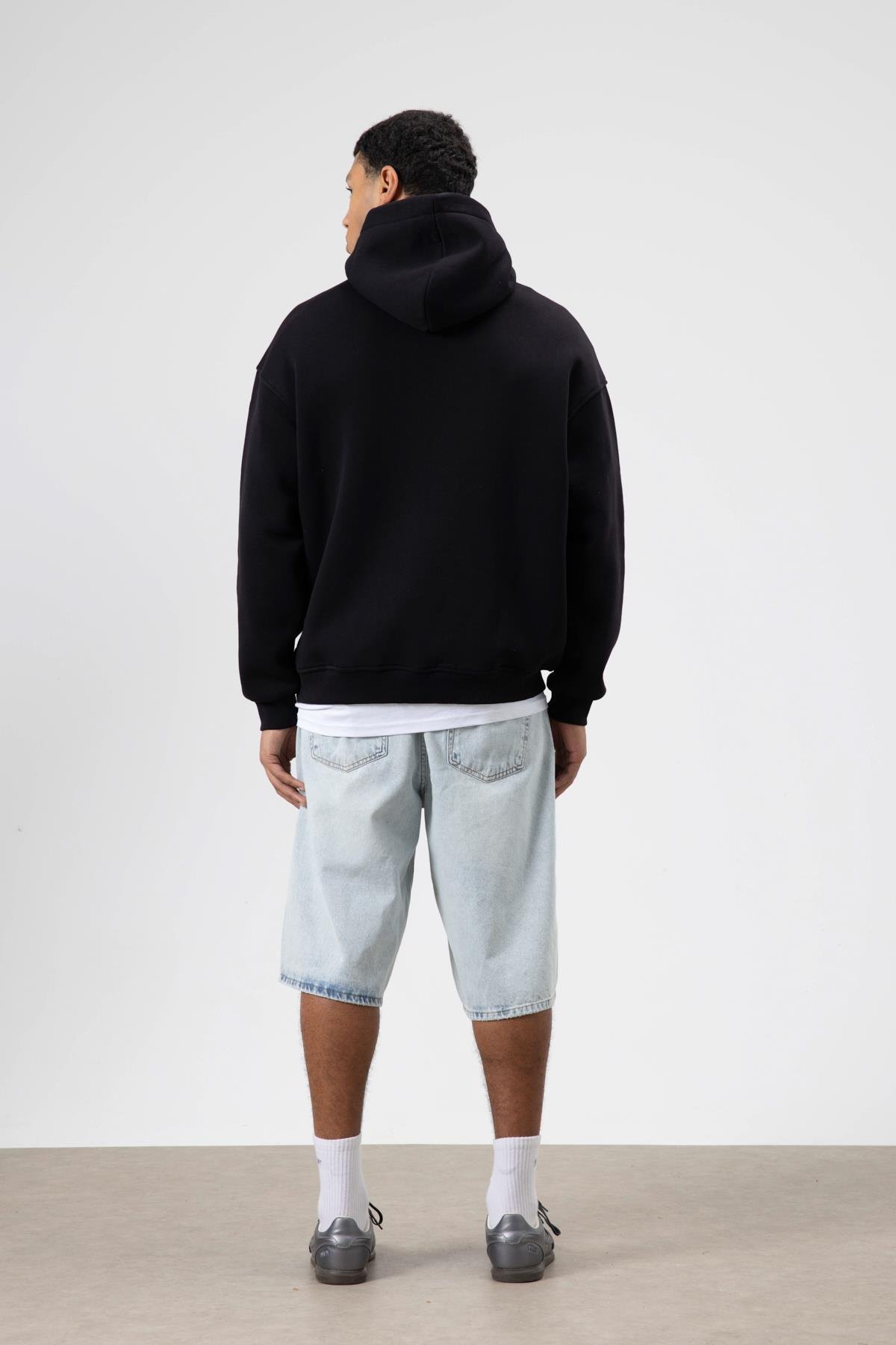 Oversize Fular Detaylı Kapüşonlu Sweatshirt Siyah (V70-90)