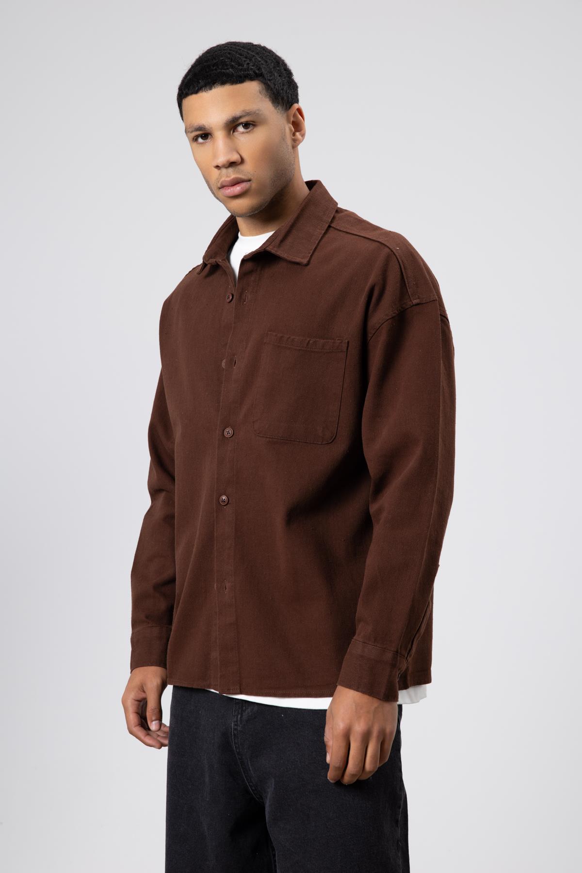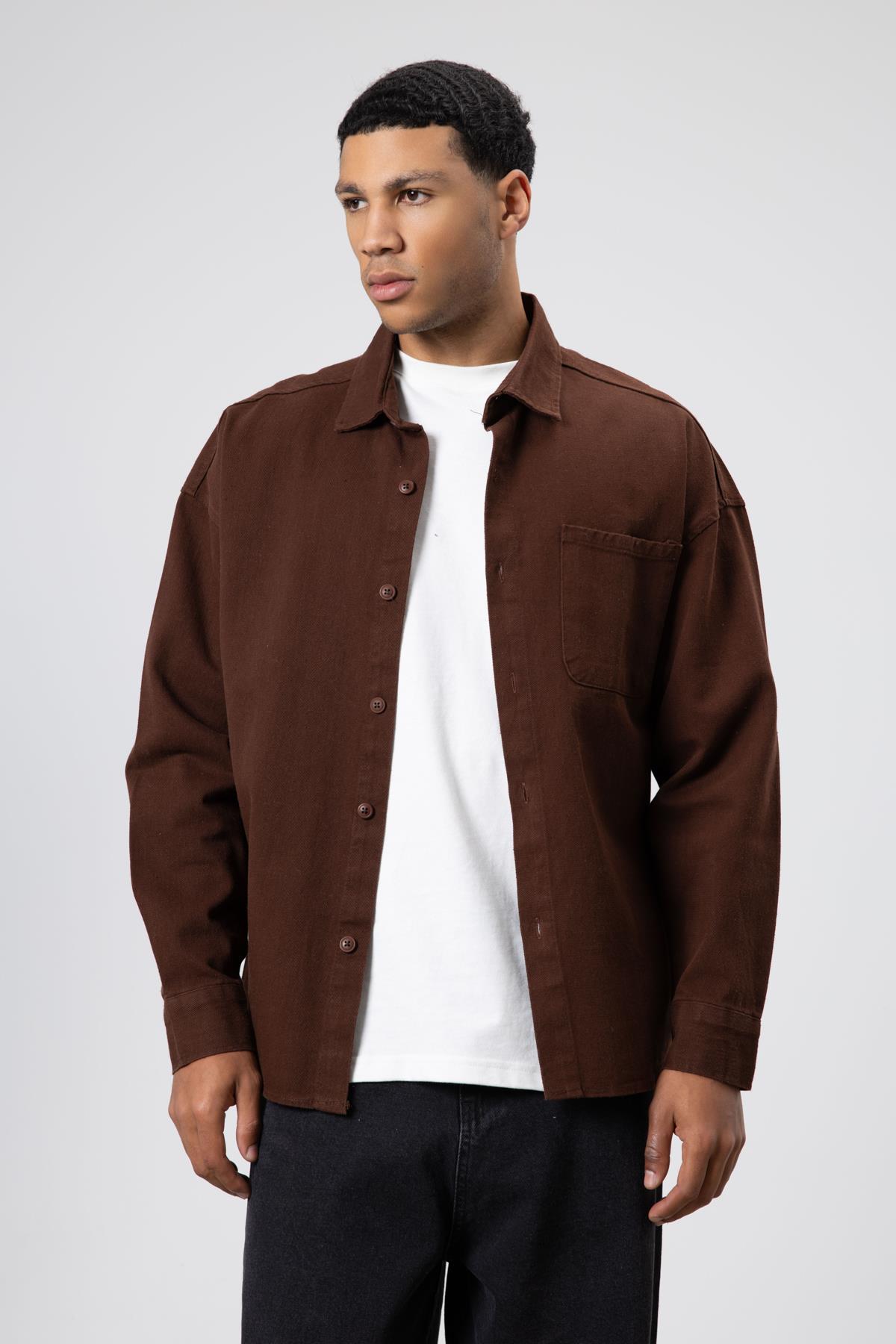 Oversize Gabardin Gömlek Ceket Kahve (V40-79)