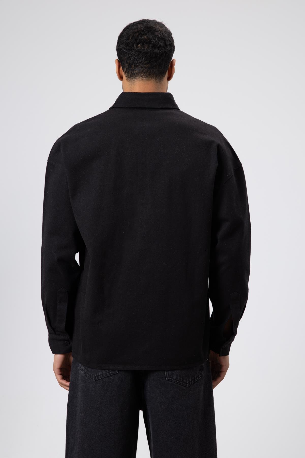 Oversize Gabardin Gömlek Ceket Siyah (V40-79)