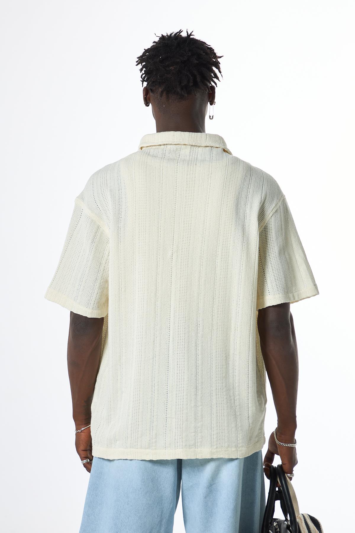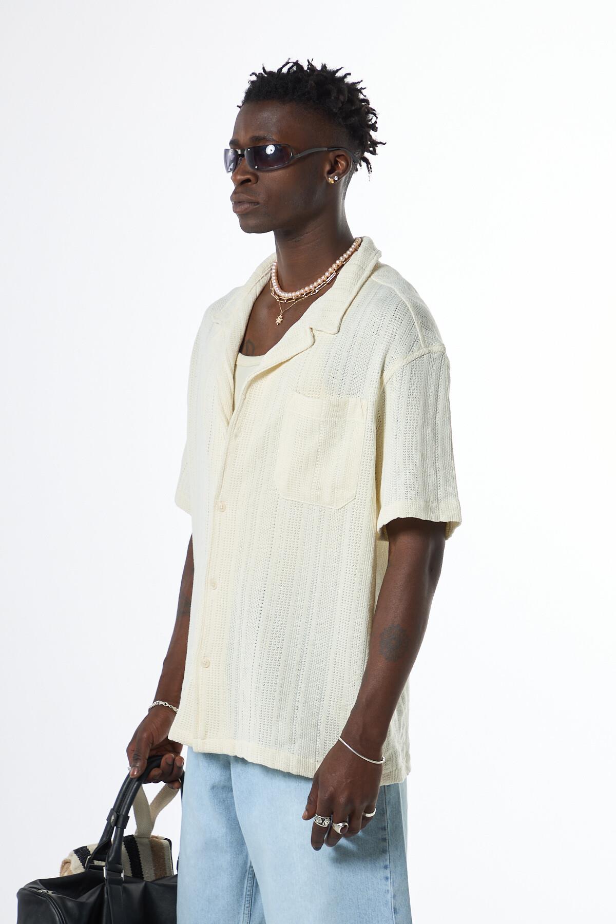 Oversize Kısa Kol Cepli Triko Gömlek Beyaz Oversize Kısa Kol Cepli Triko Gömlek Ekru