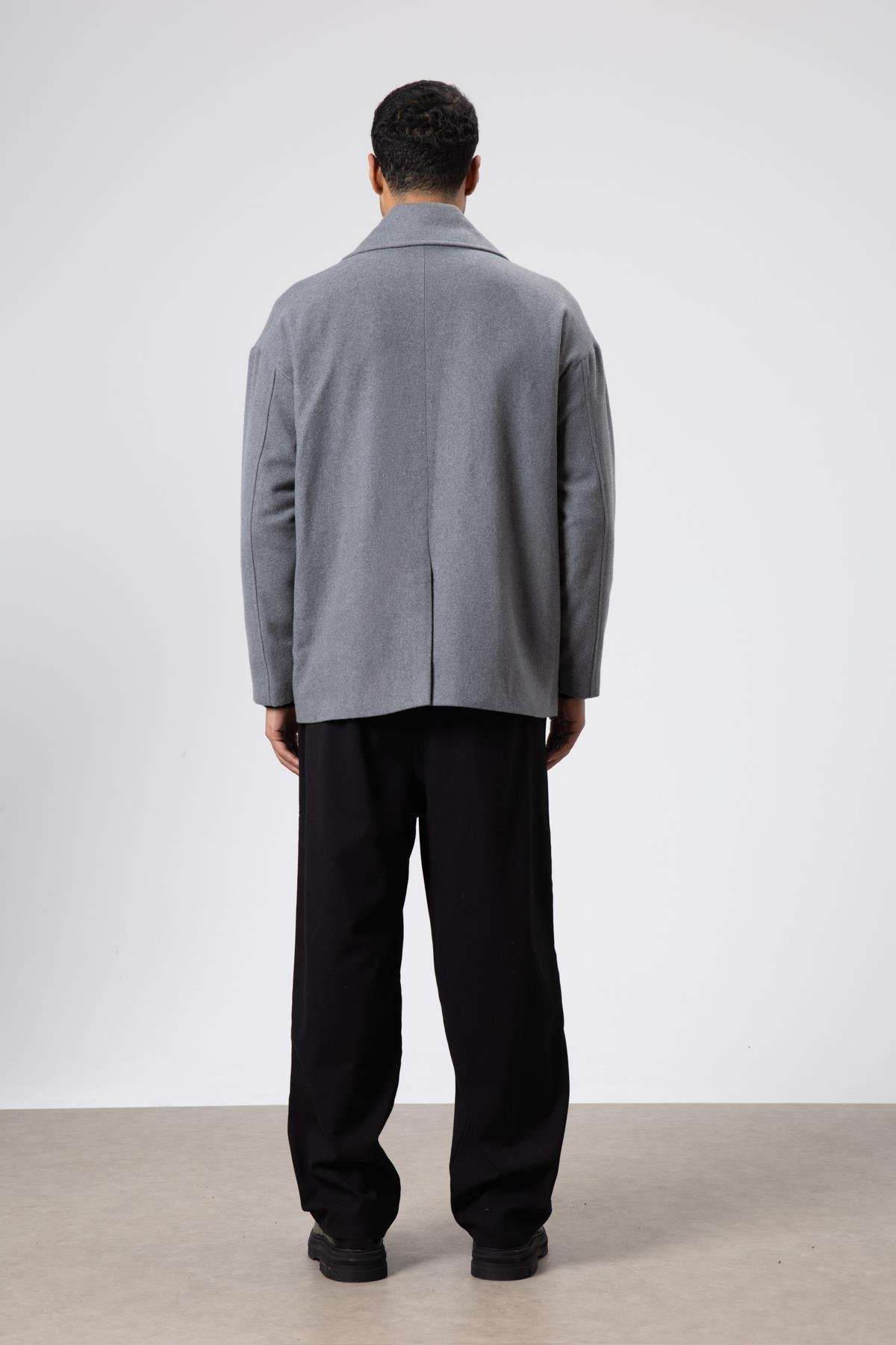 Oversize Kruvaze Kısa Kaşe Ceket Gri (V50-13)