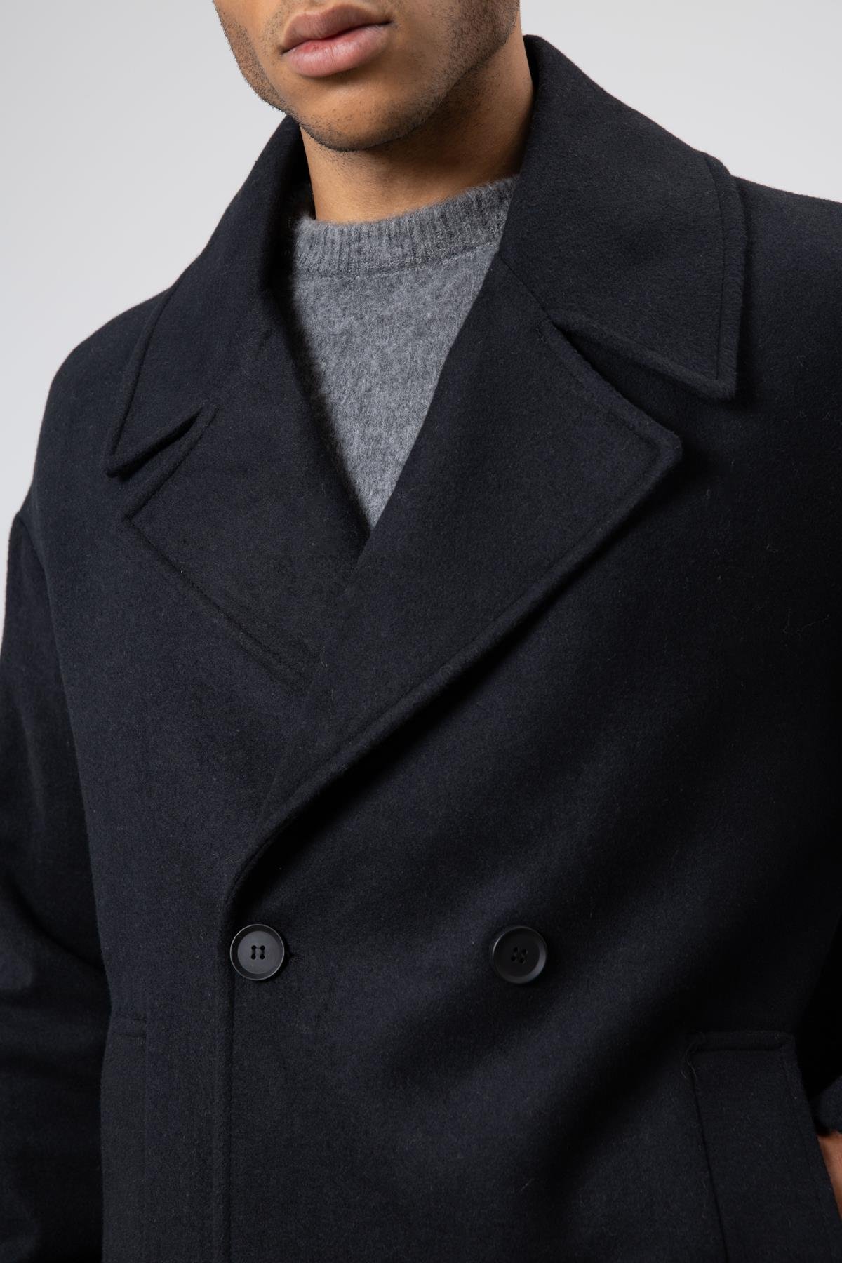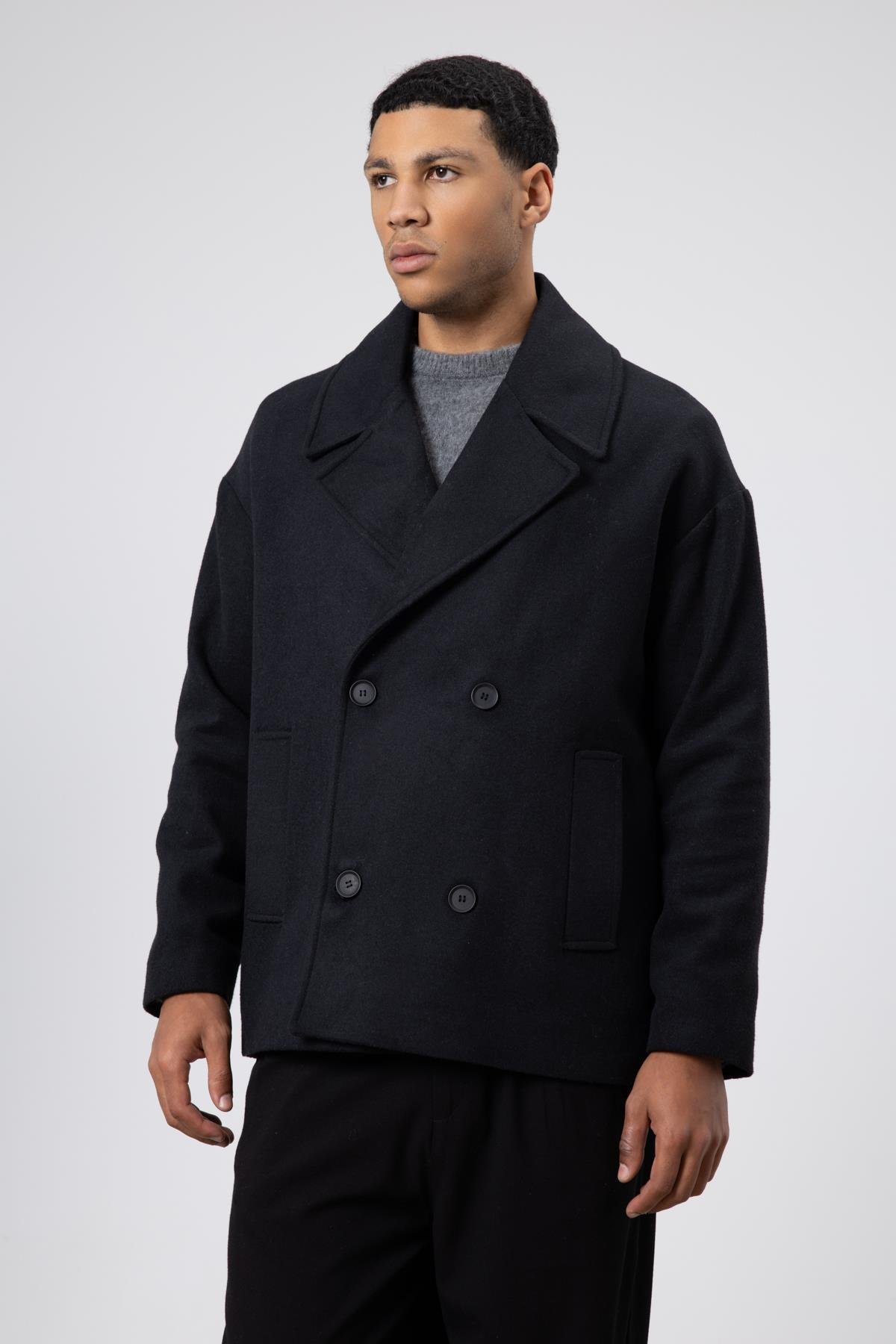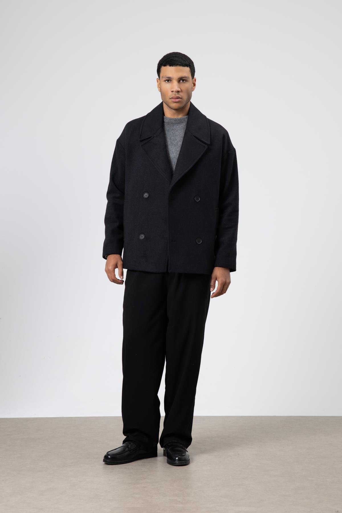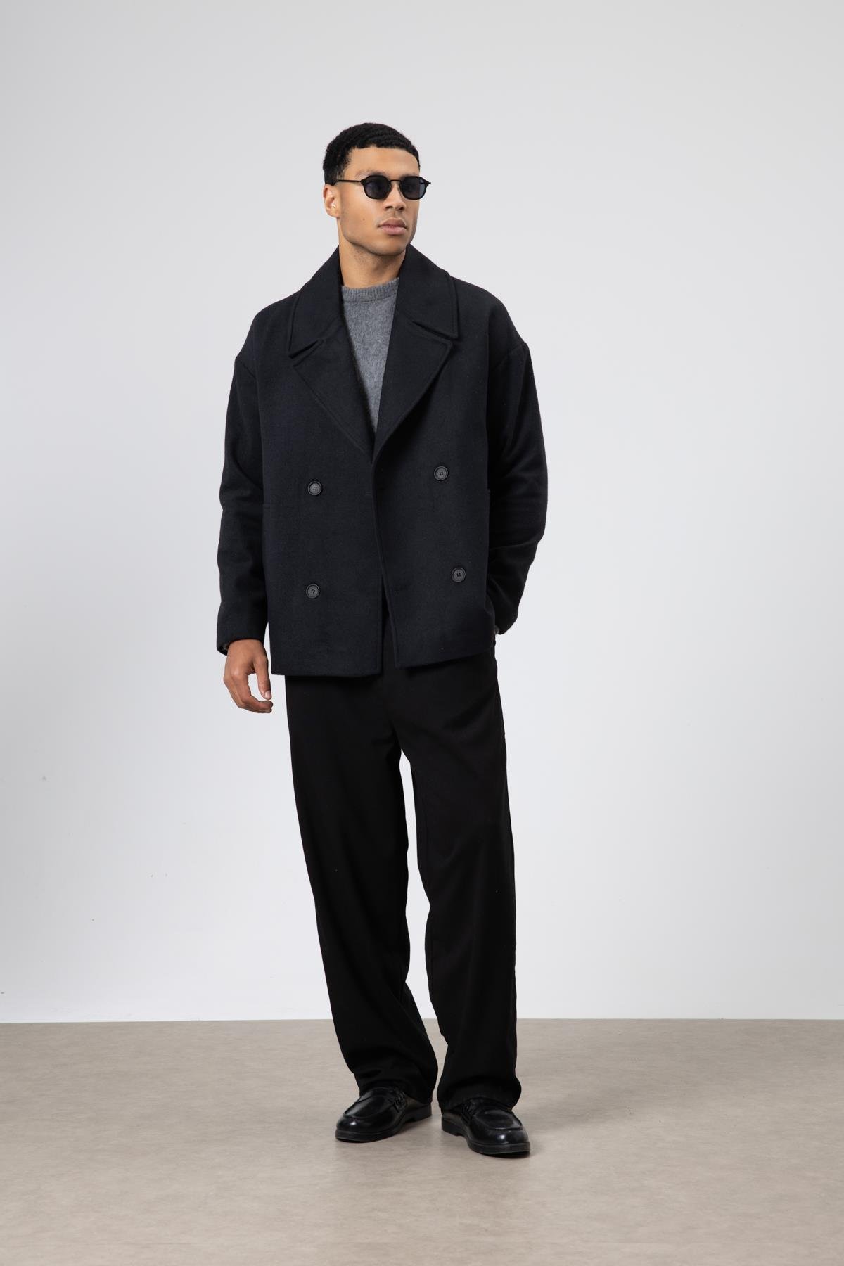 Oversize Kruvaze Kısa Kaşe Ceket Siyah (V50-13)