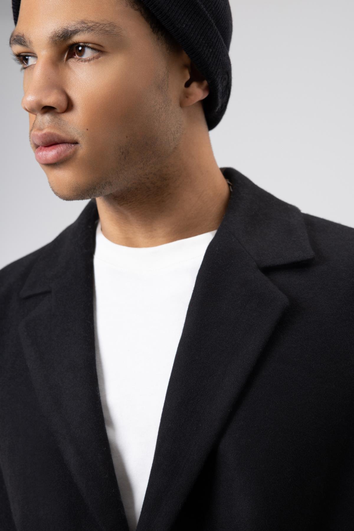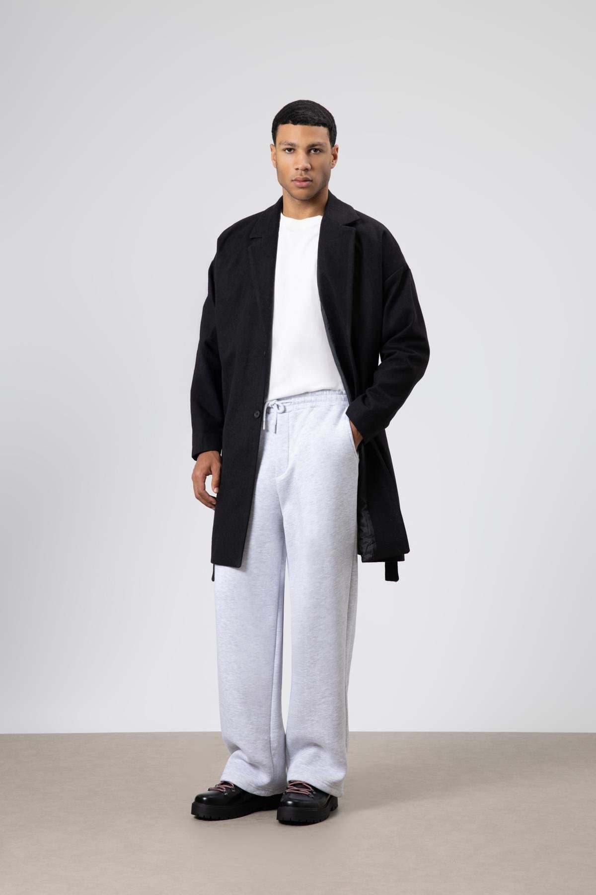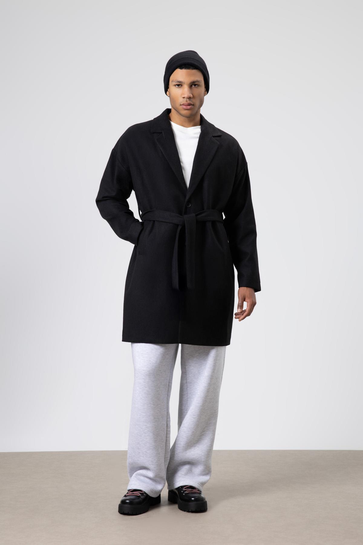 Kemerli Oversize Kaşe Kaban Siyah (40-139)