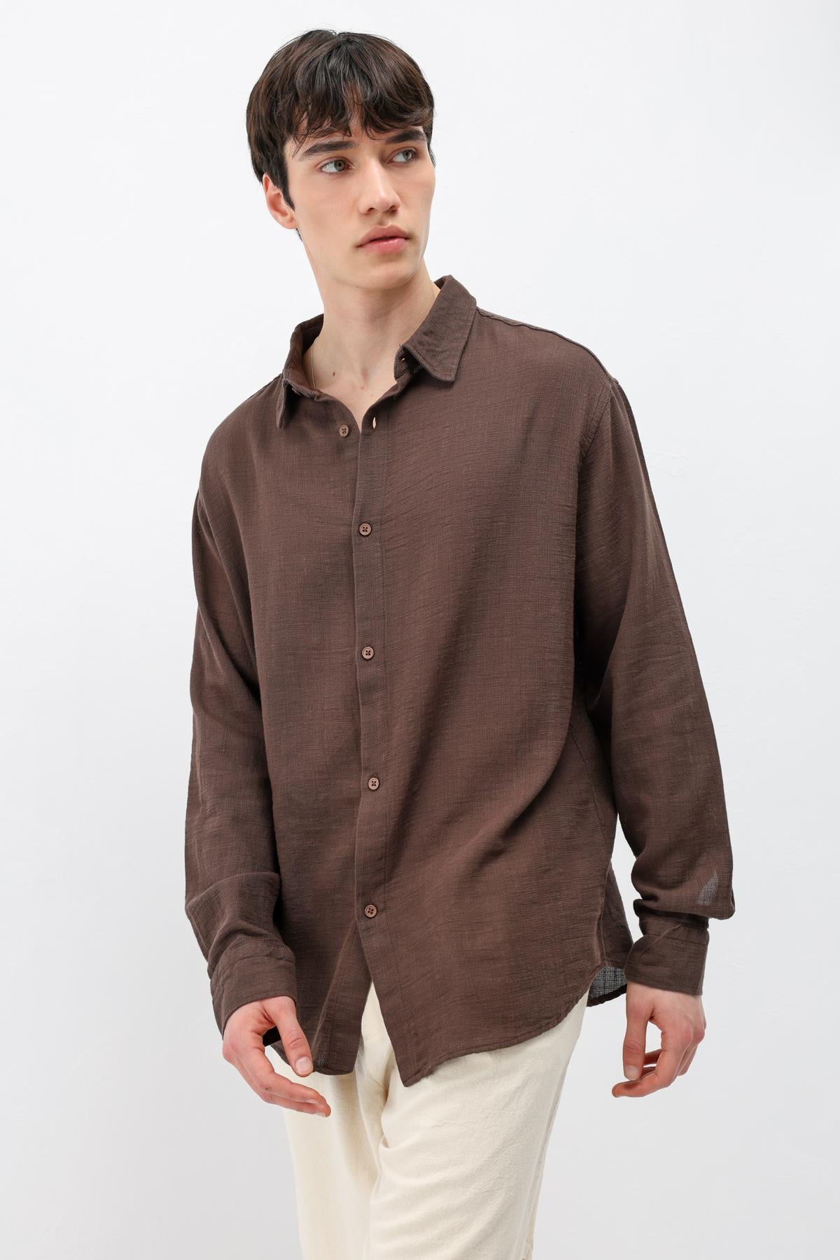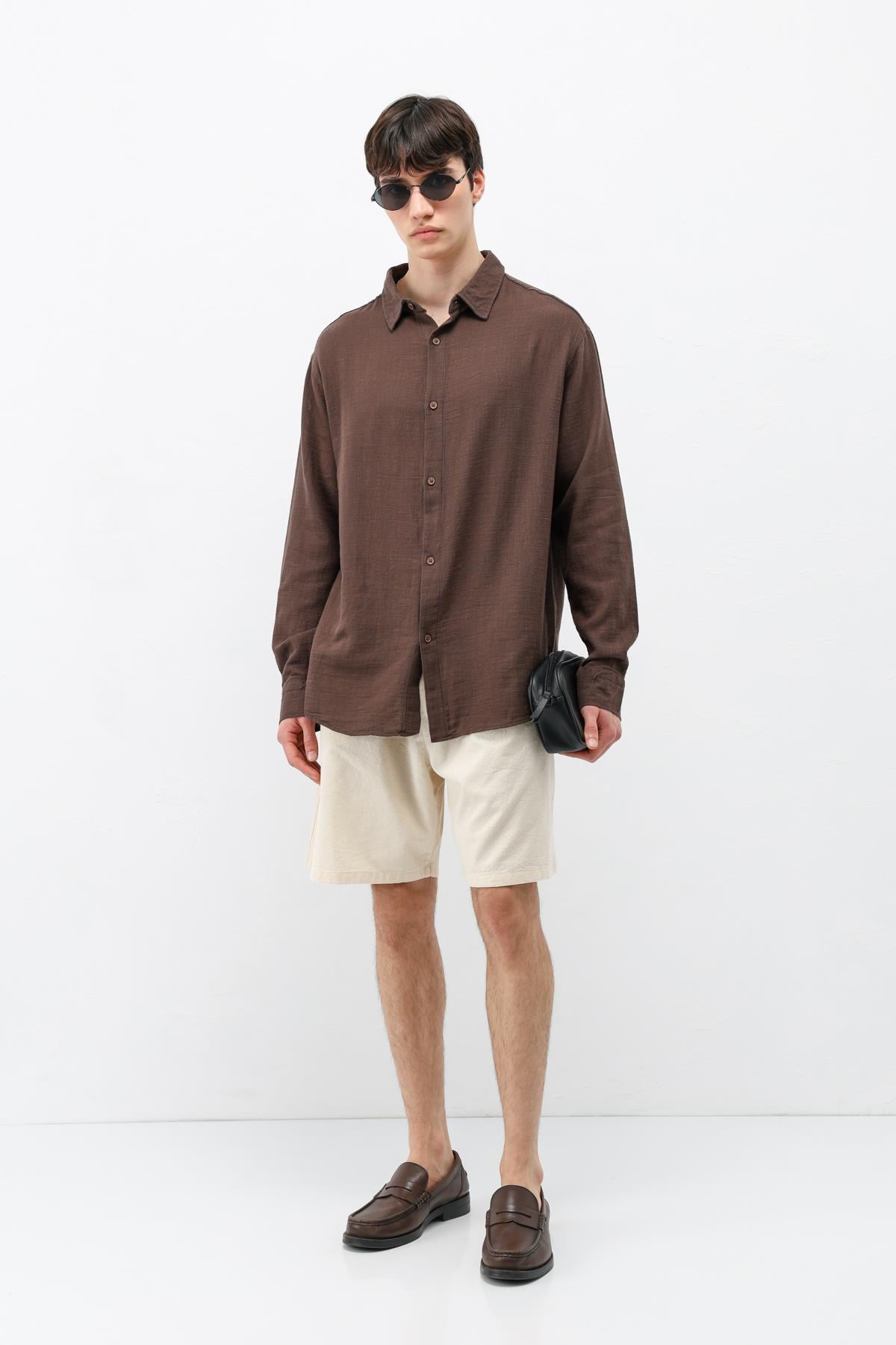 Basic Keten Oversize Gömlek Kahve (V40-19)