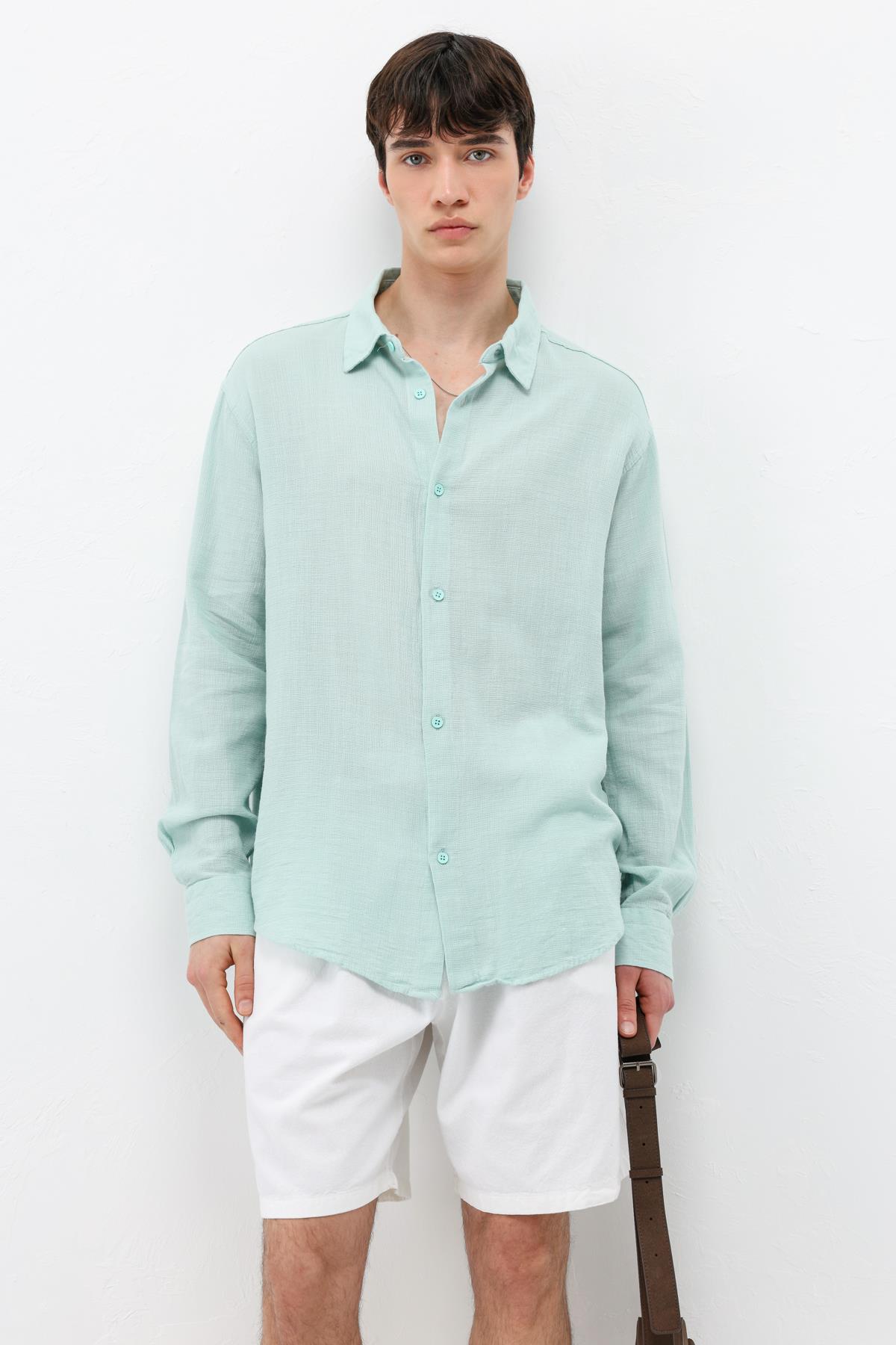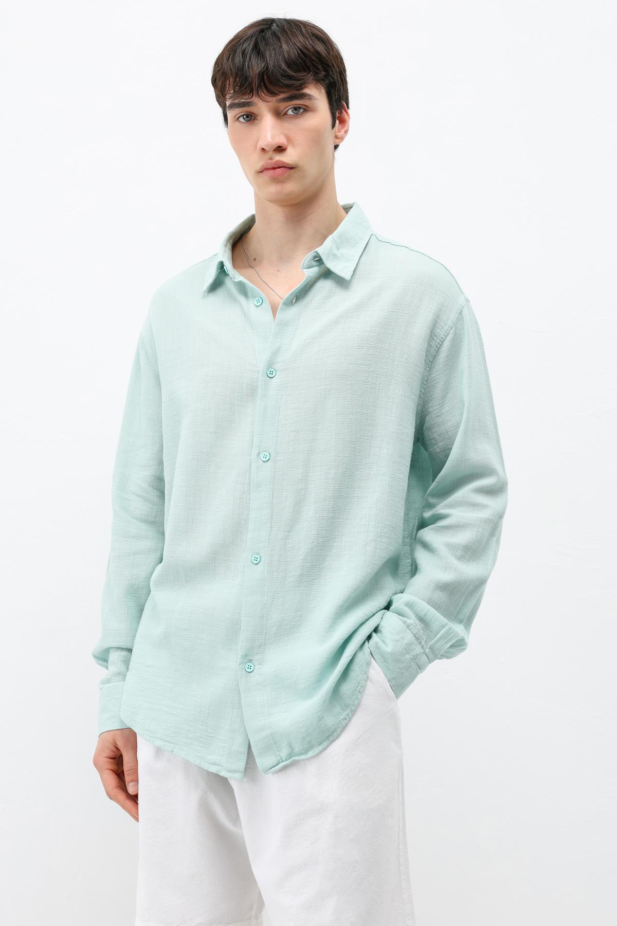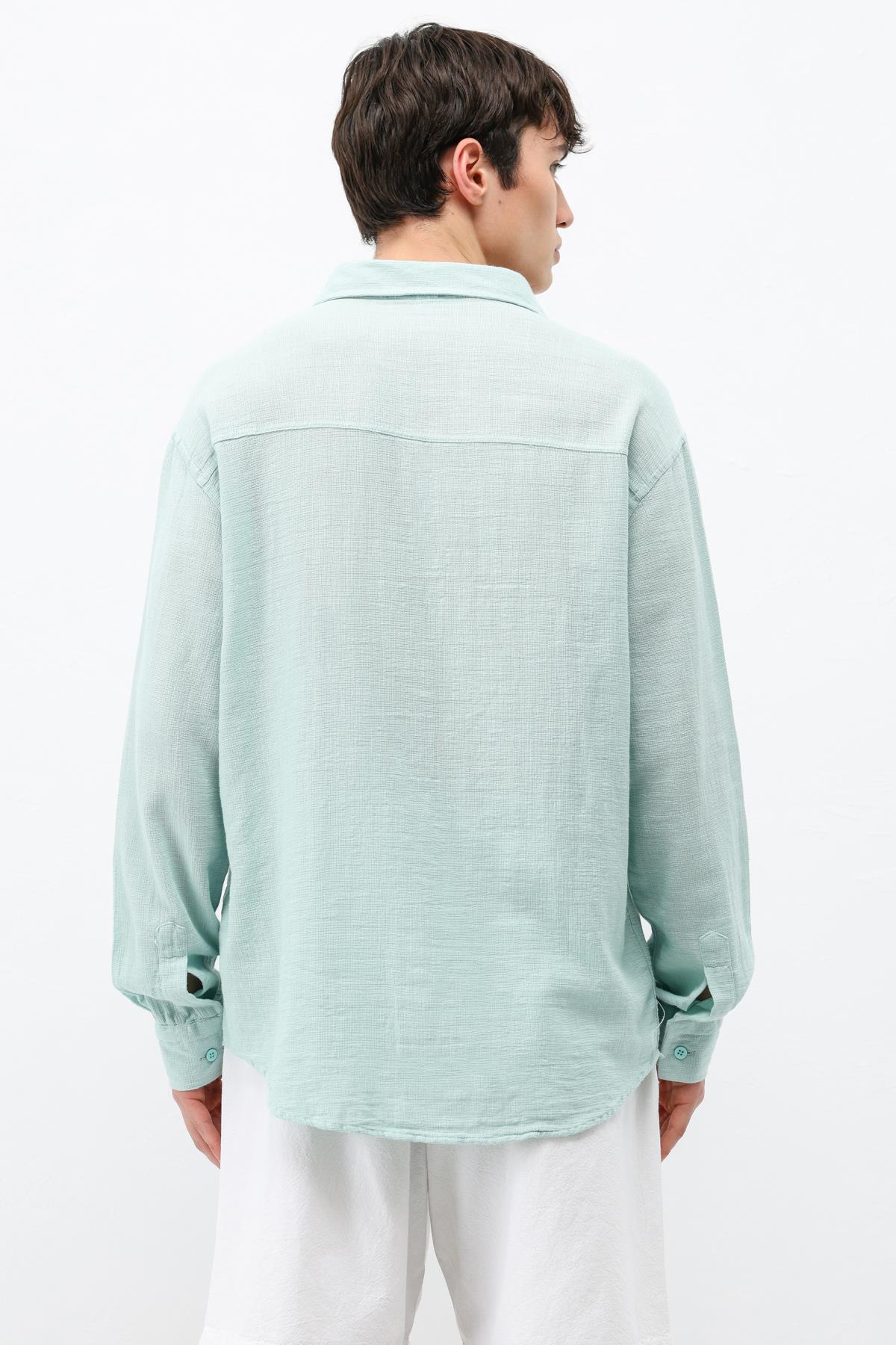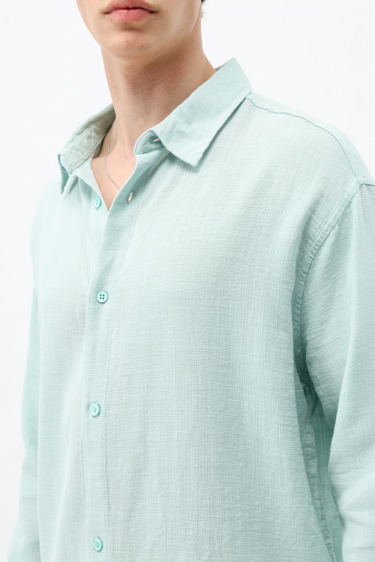 Basic Keten Oversize Gömlek Su Yesılı (V40-19)