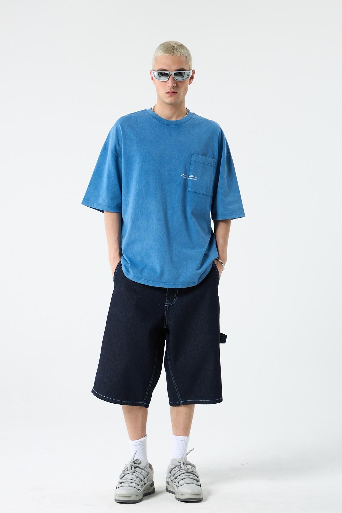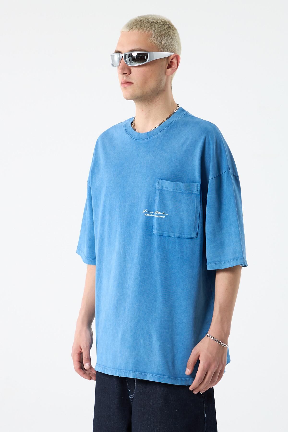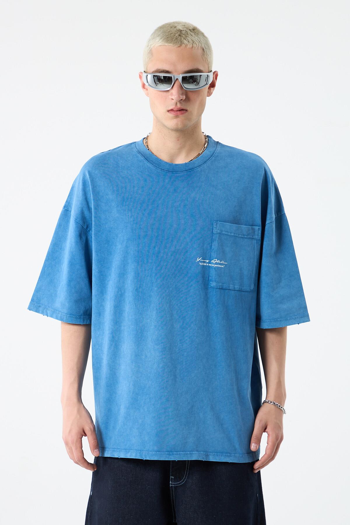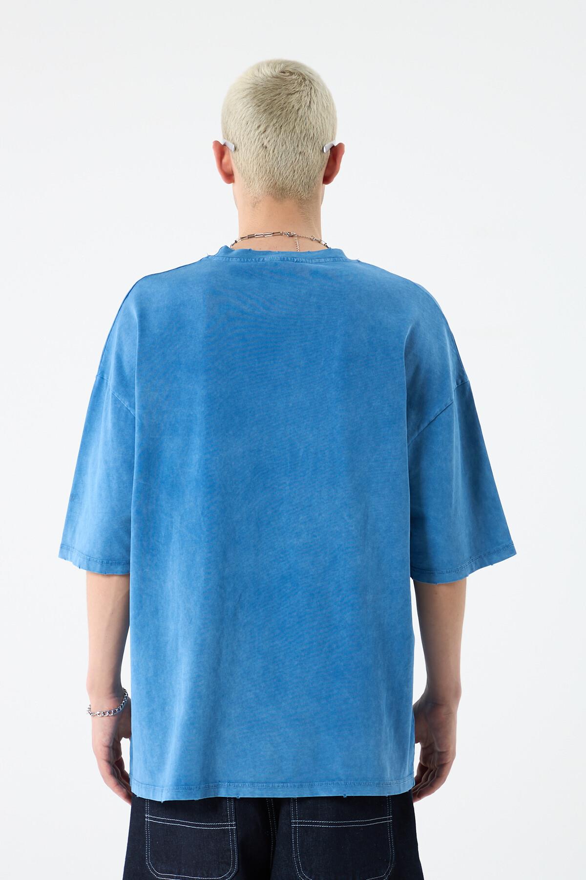Yıkamalı Oversize Tişört İndigo (40-363)